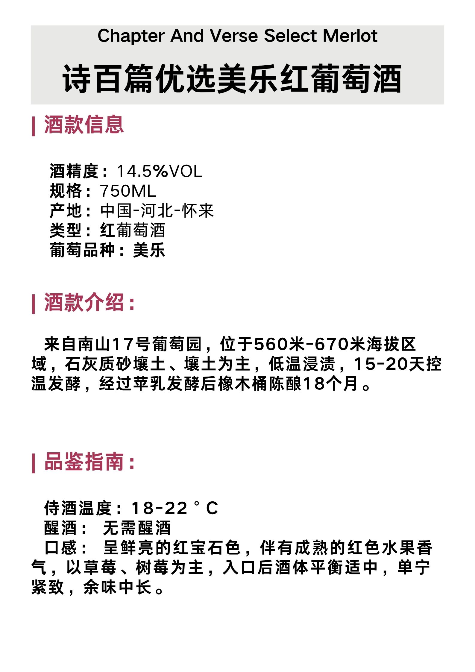 (小瓶装)诗百篇优选美乐红葡萄酒375ml Chapter And Verse Select Merlot 375ml