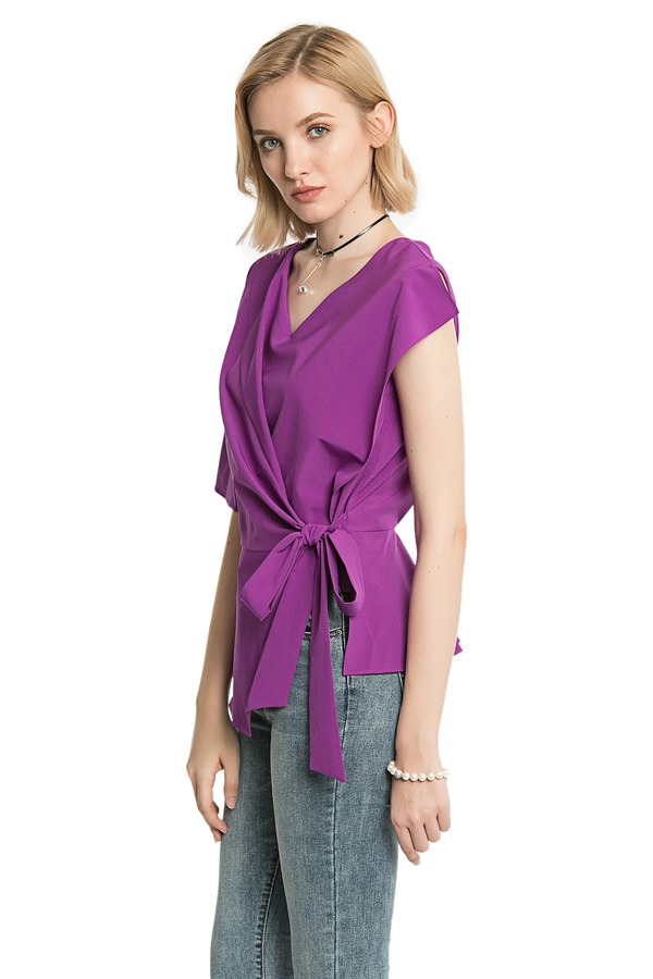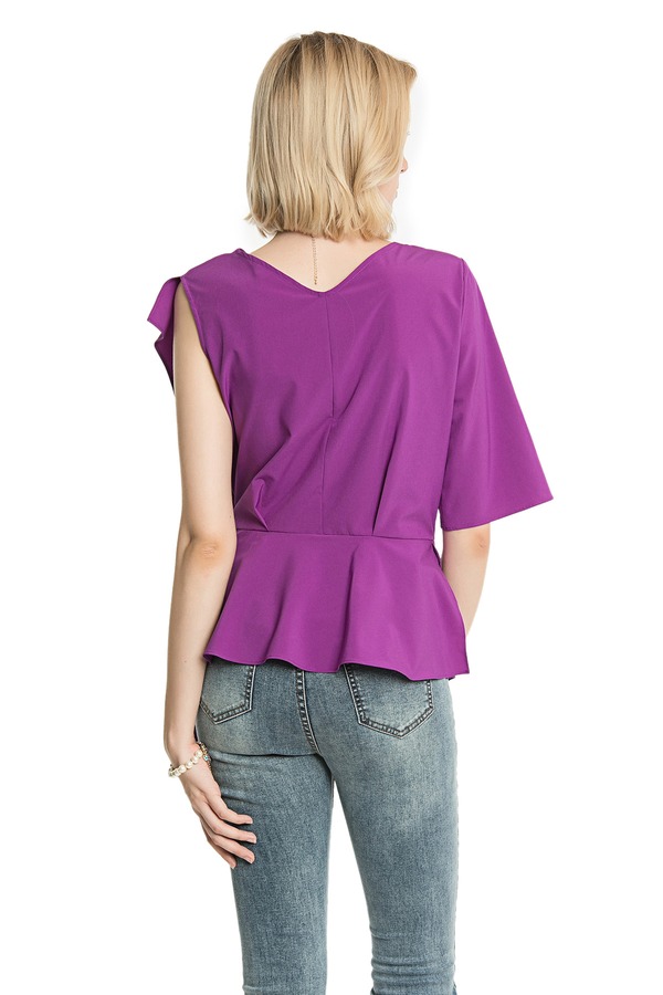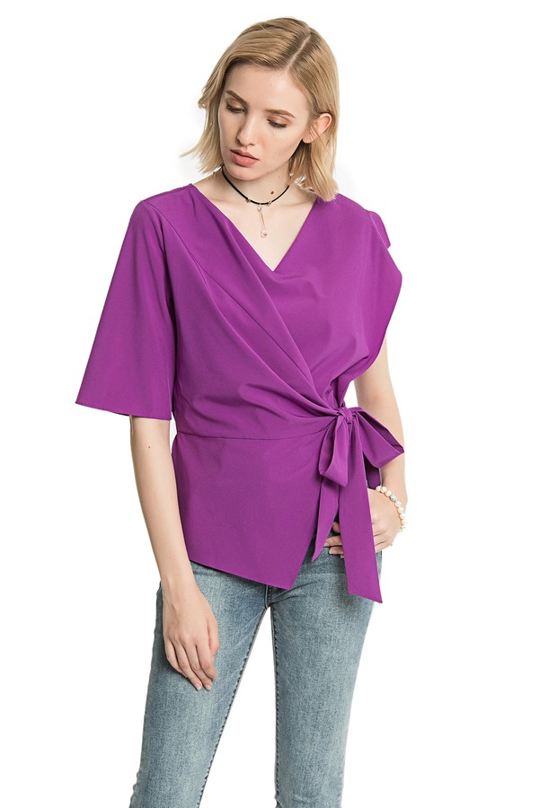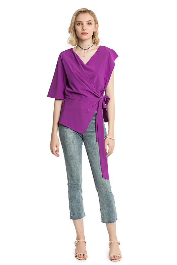 BASIC HOUSE 紫色不对称袖围裹式上衣 2386