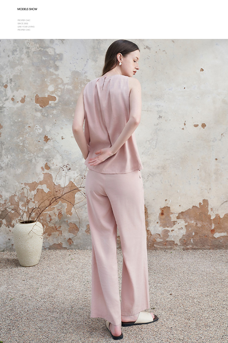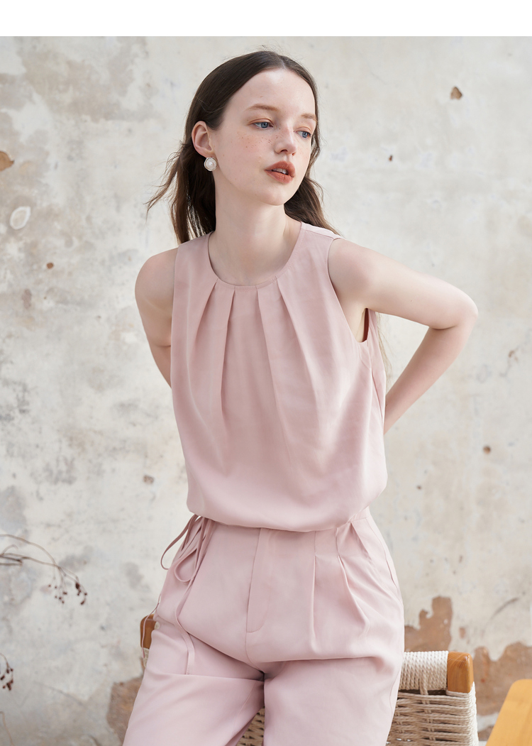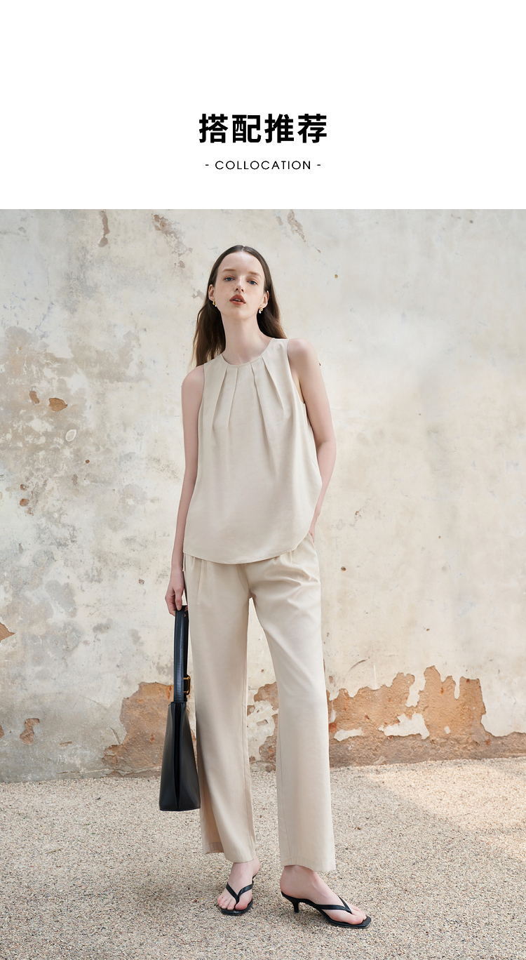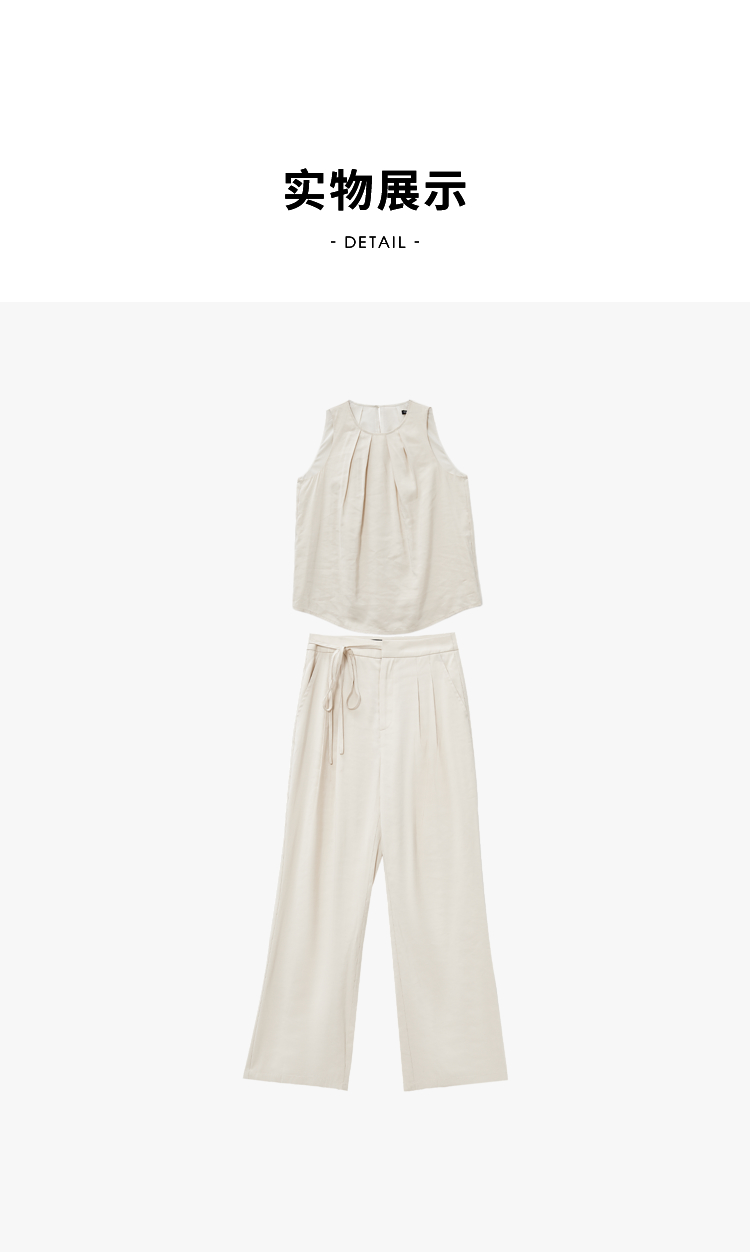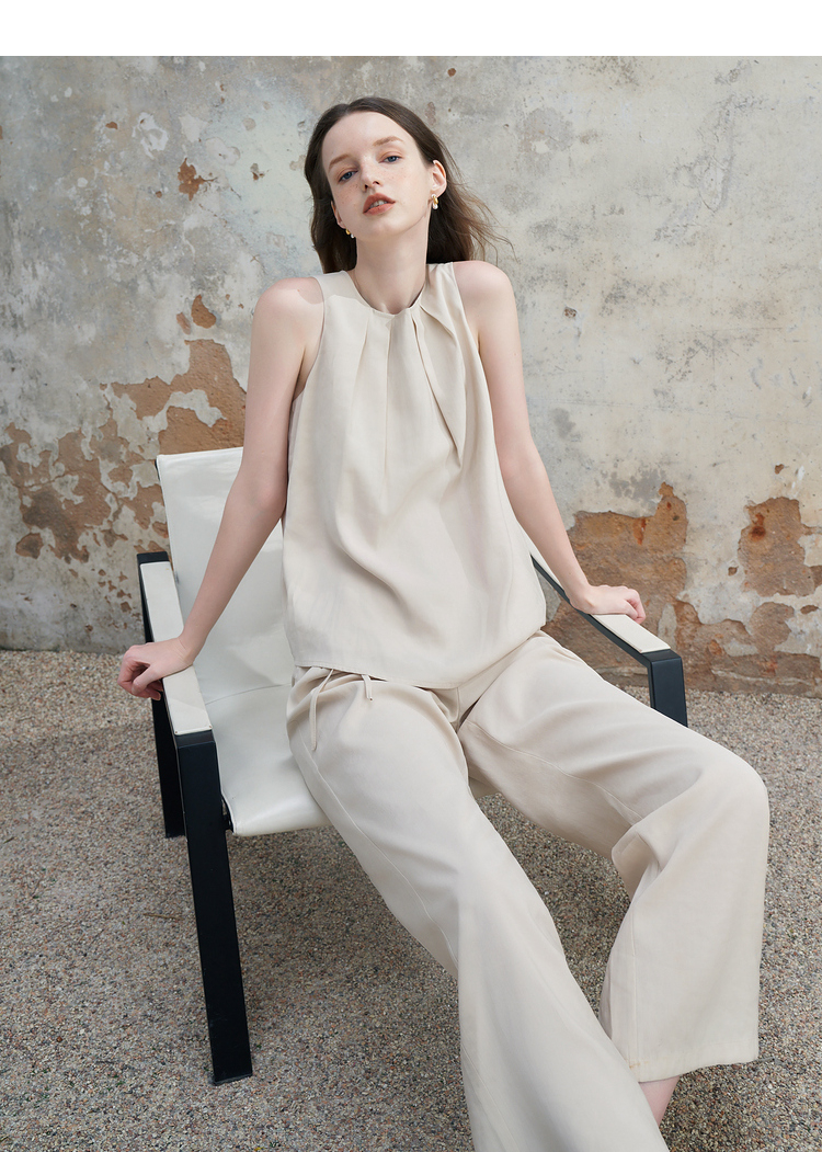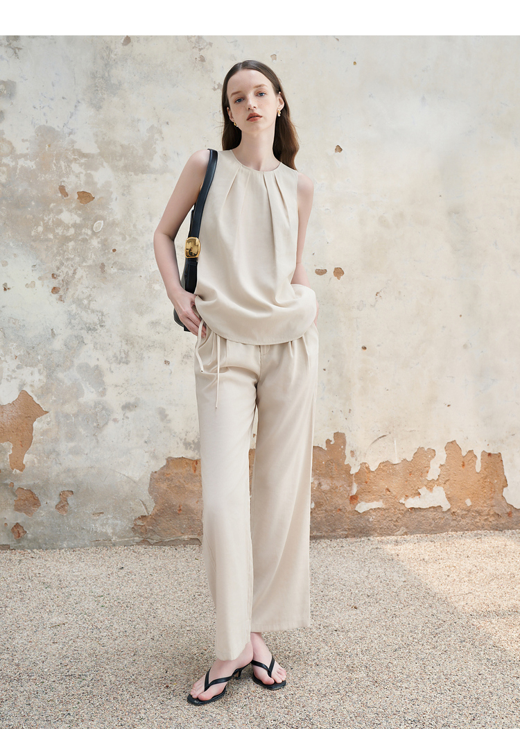 慵懒风随性倒褶简约套装女夏季圆领背心搭阔腿裤两件套V1341046