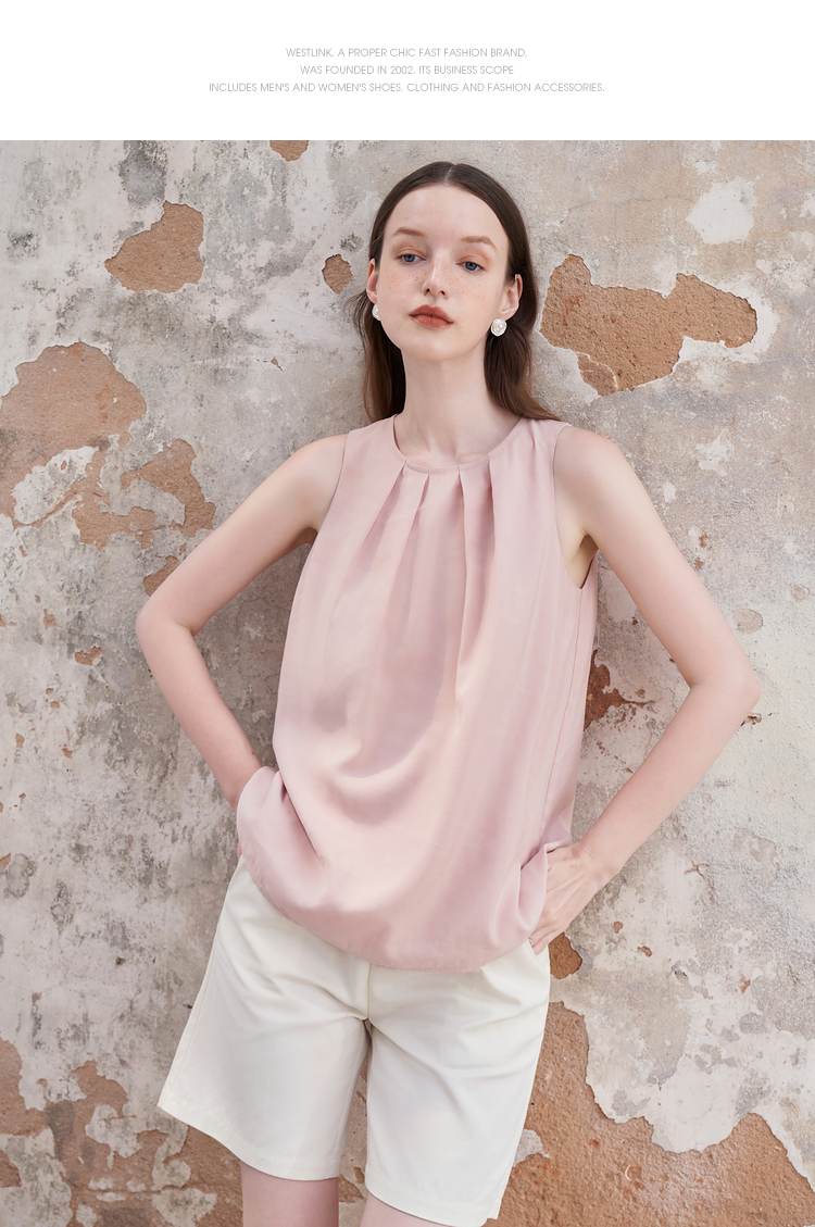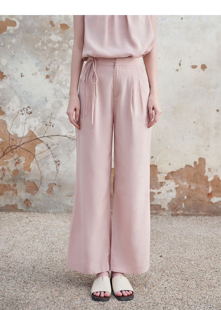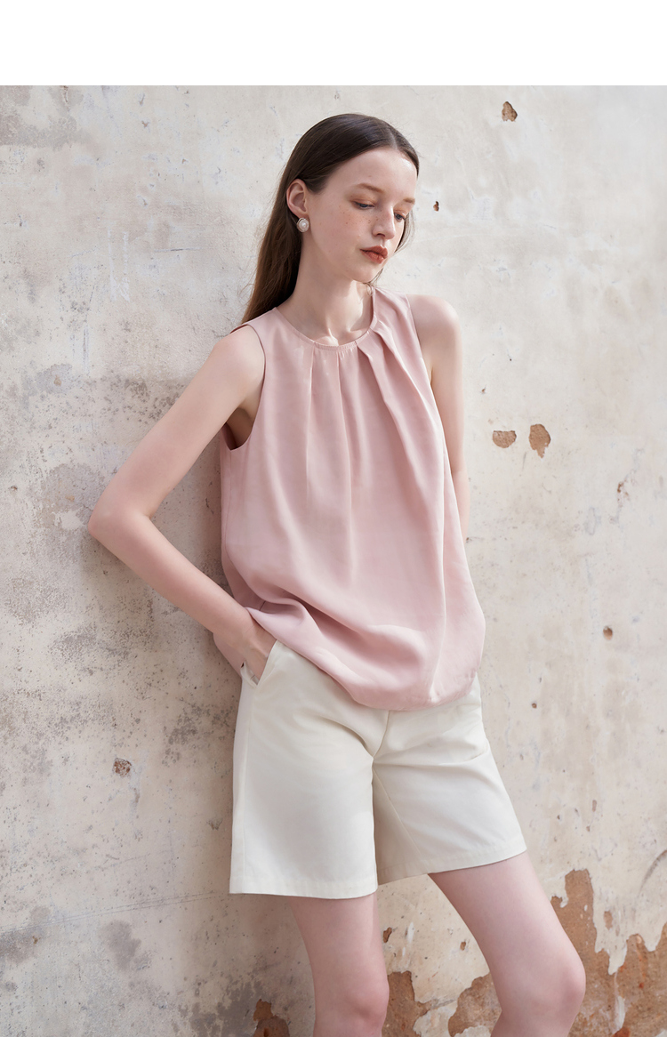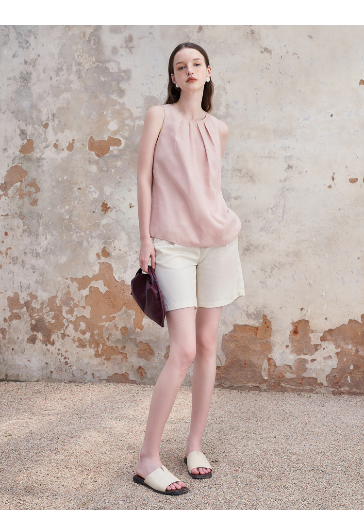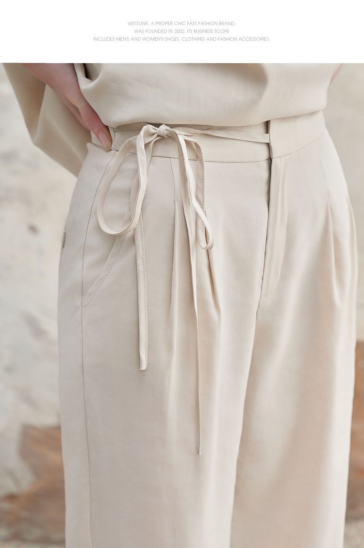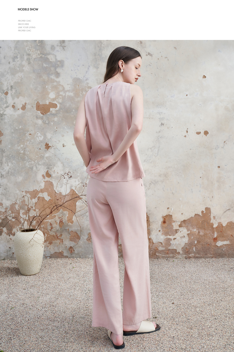 慵懒风随性倒褶简约套装女夏季圆领背心搭阔腿裤两件套V1341046