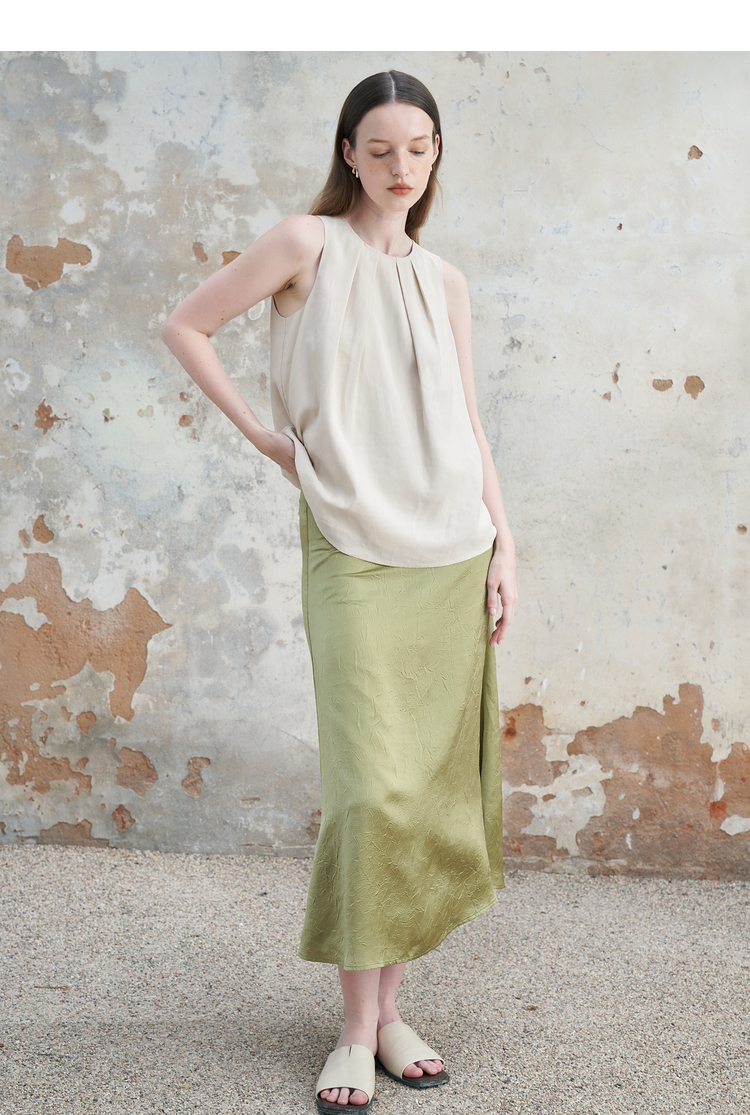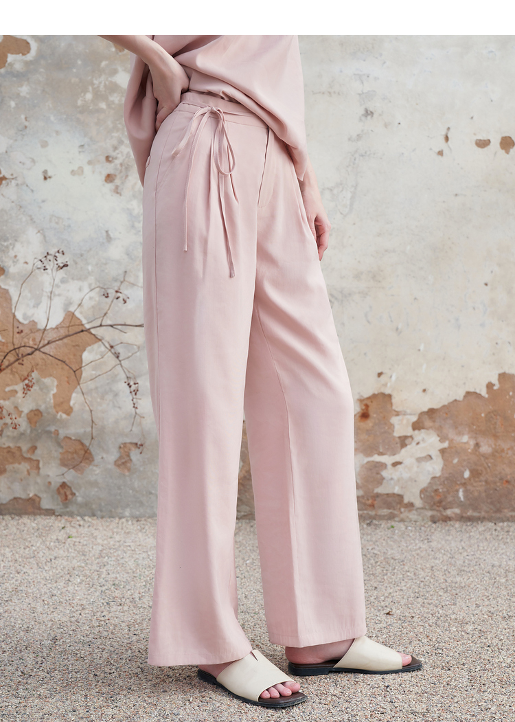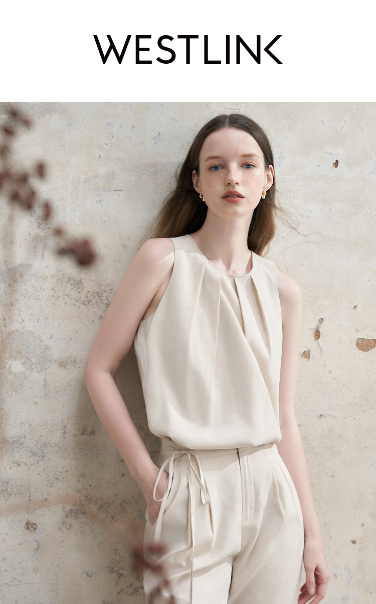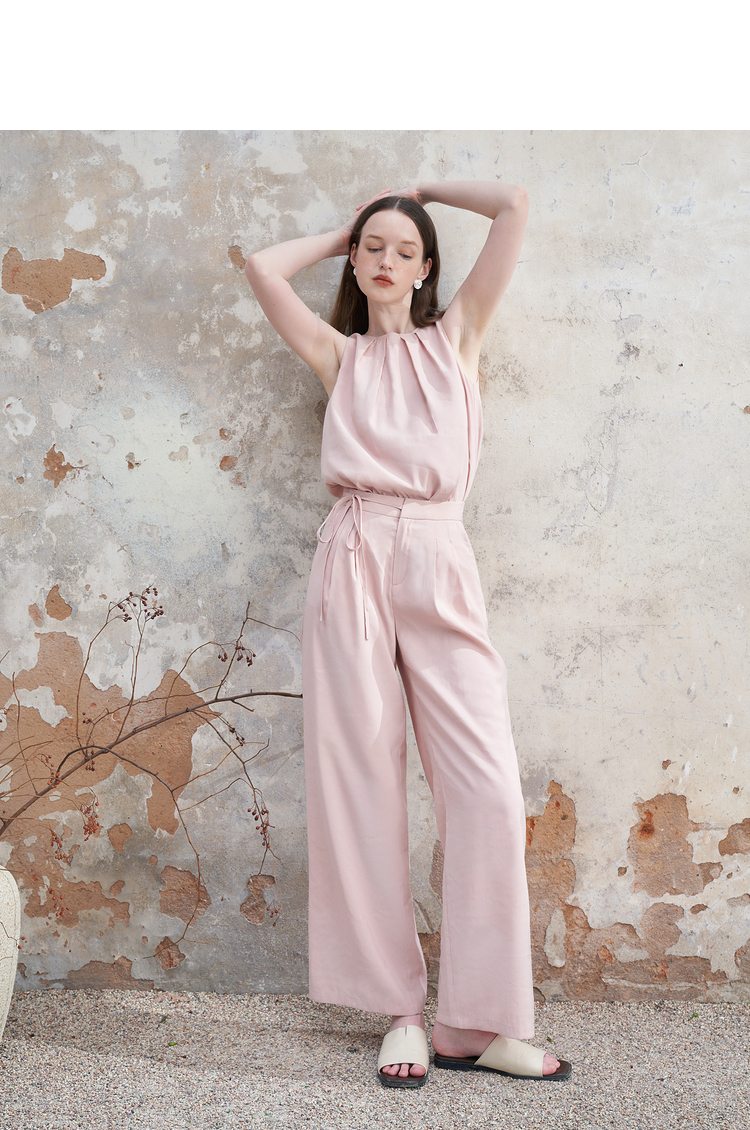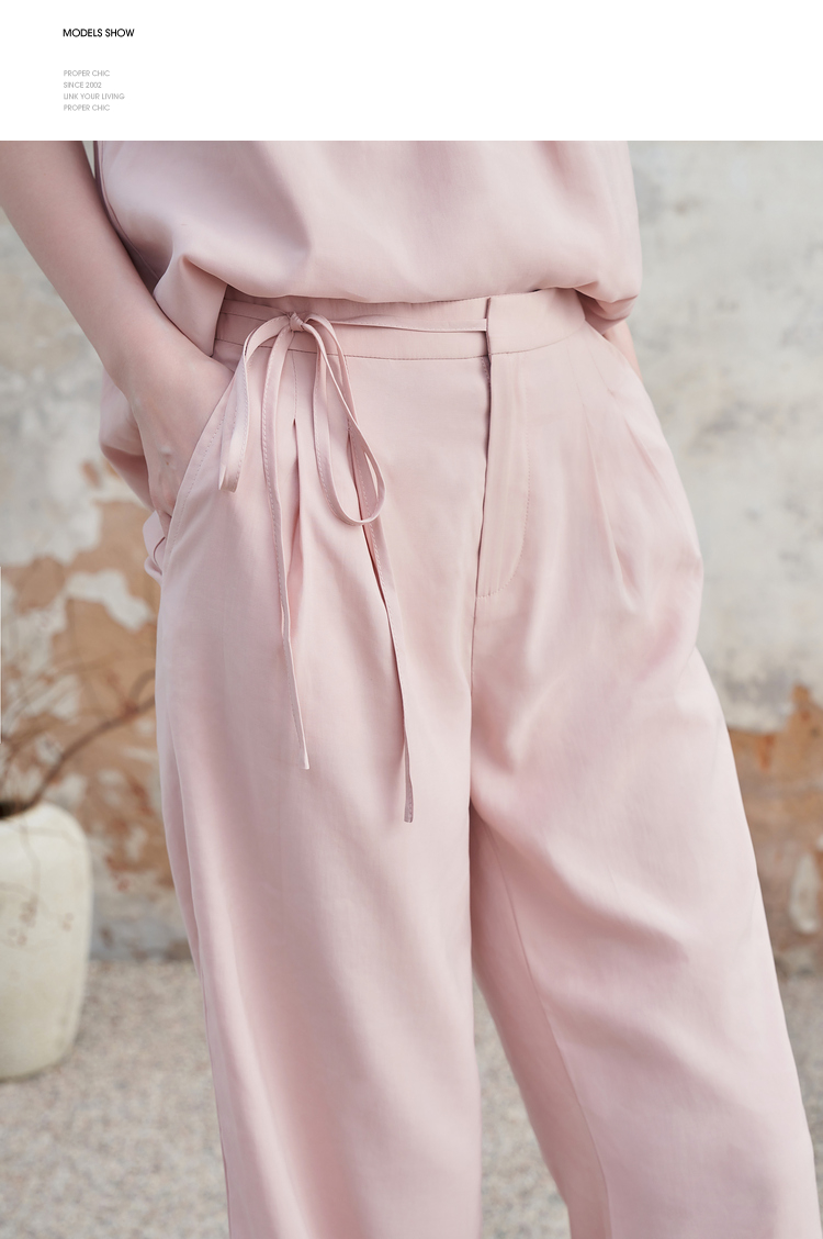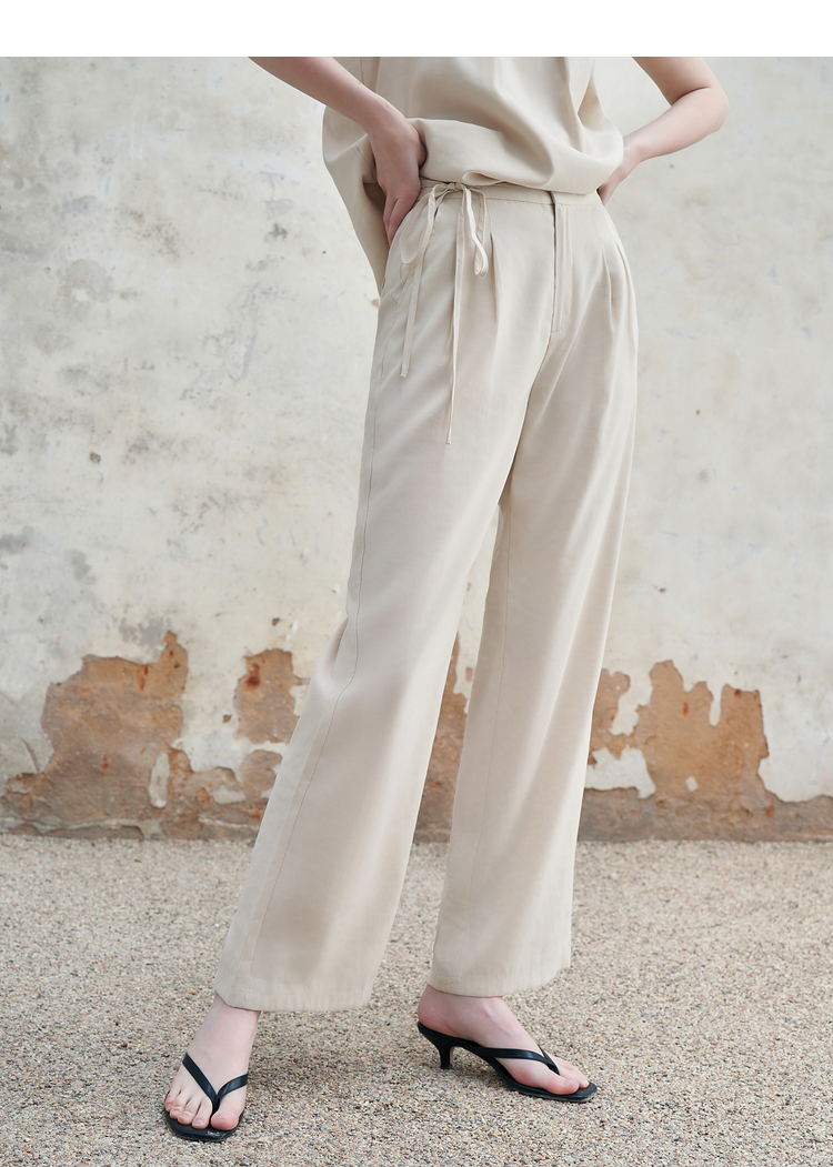 慵懒风随性倒褶简约套装女夏季圆领背心搭阔腿裤两件套V1341046