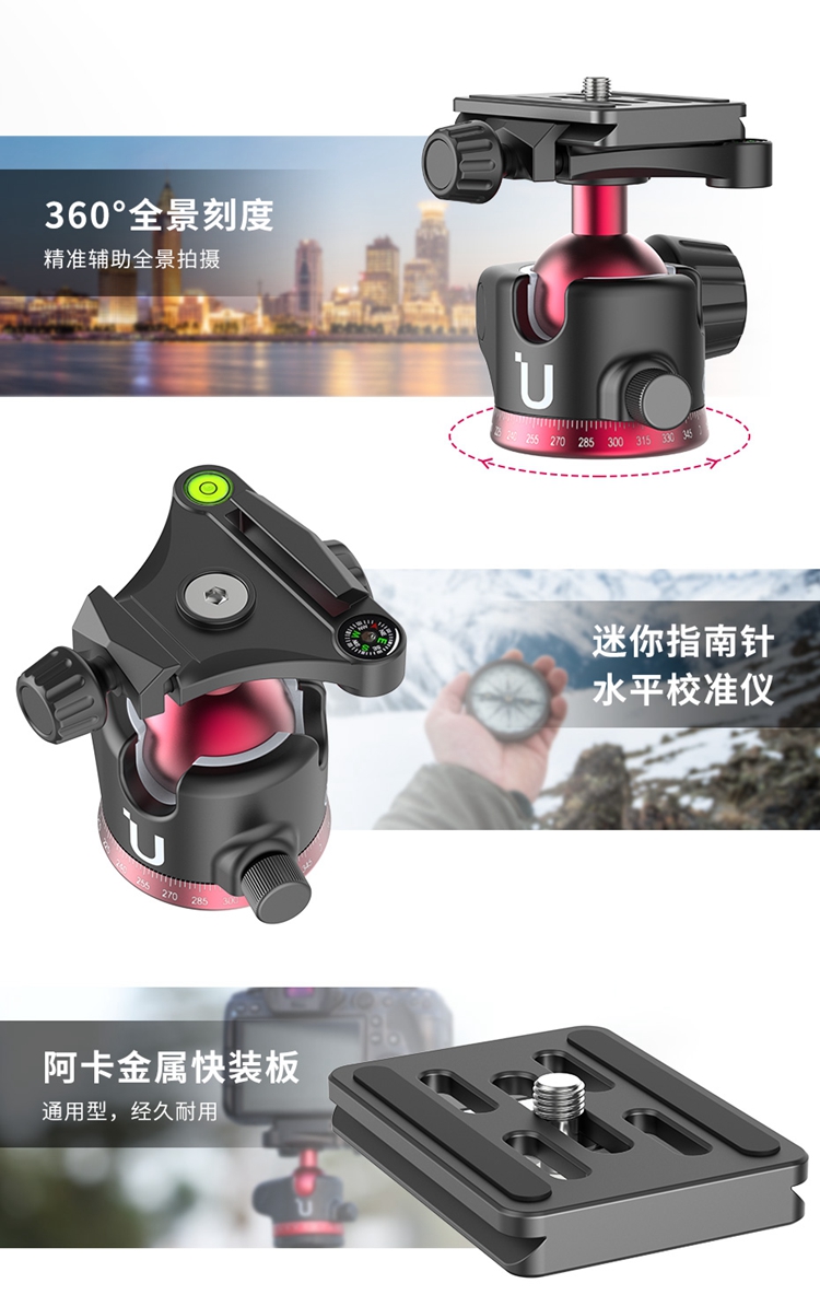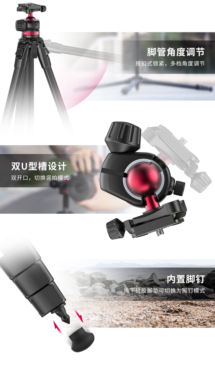 Ulanzi优篮子青葱影金属扳扣球头云台三脚架便携手机微单反相机旅拍通用拍照vlog视频摄影铝合金三角支架
