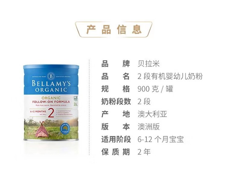 新包装,每罐900g,适合6-12个月宝宝。天然纯正,营养均衡,有机配方,特为刚出生的婴儿生长需要配置必需营养物质,维生素和矿物质。不含转基因原料、抗生素、农药杀虫剂、以及人工合成激素。细心呵护宝宝成长,促进婴儿智力,营养更健康