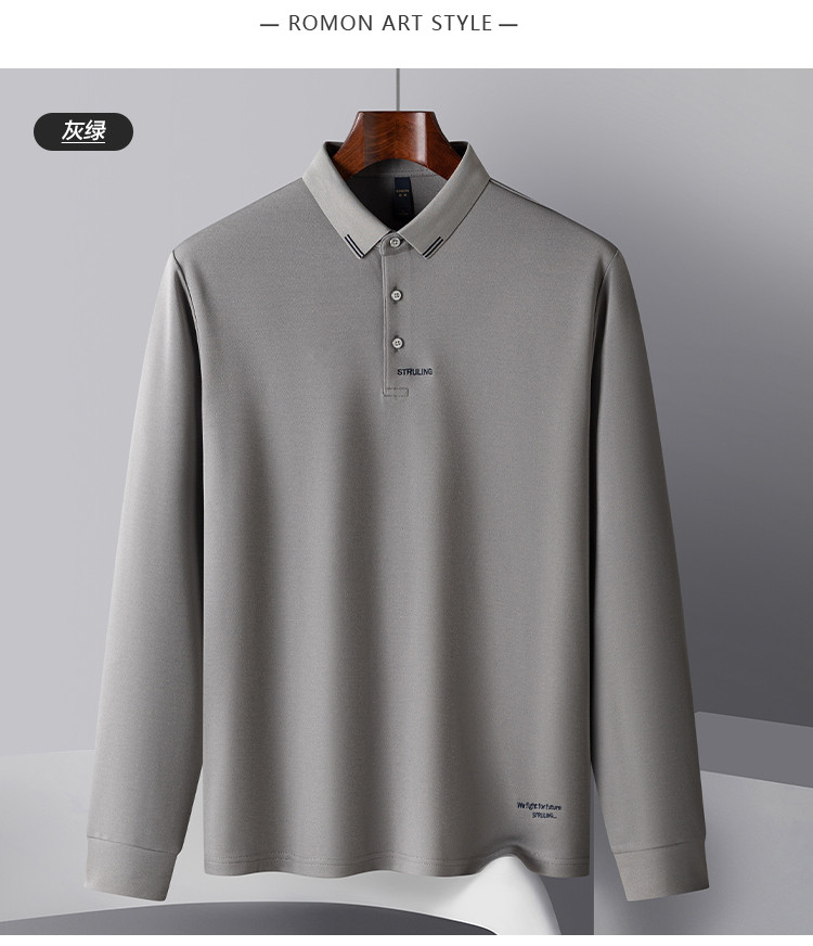 【双面含桑蚕丝】罗蒙春秋男士绣花polo衫男长袖t恤男polo衫男
