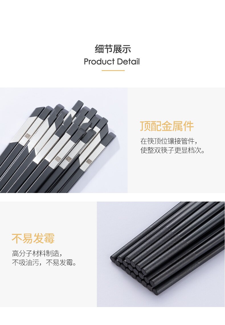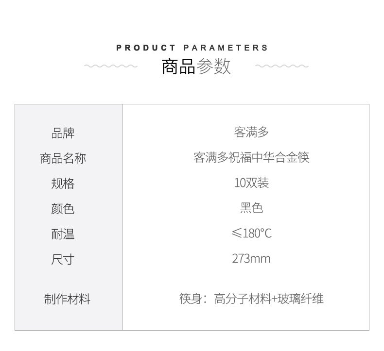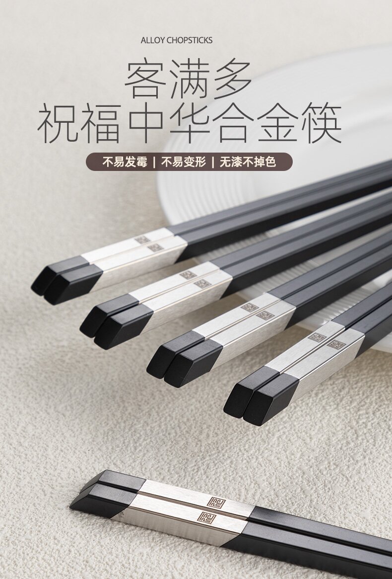 客满多祝福中华合金筷10双装(黑色)