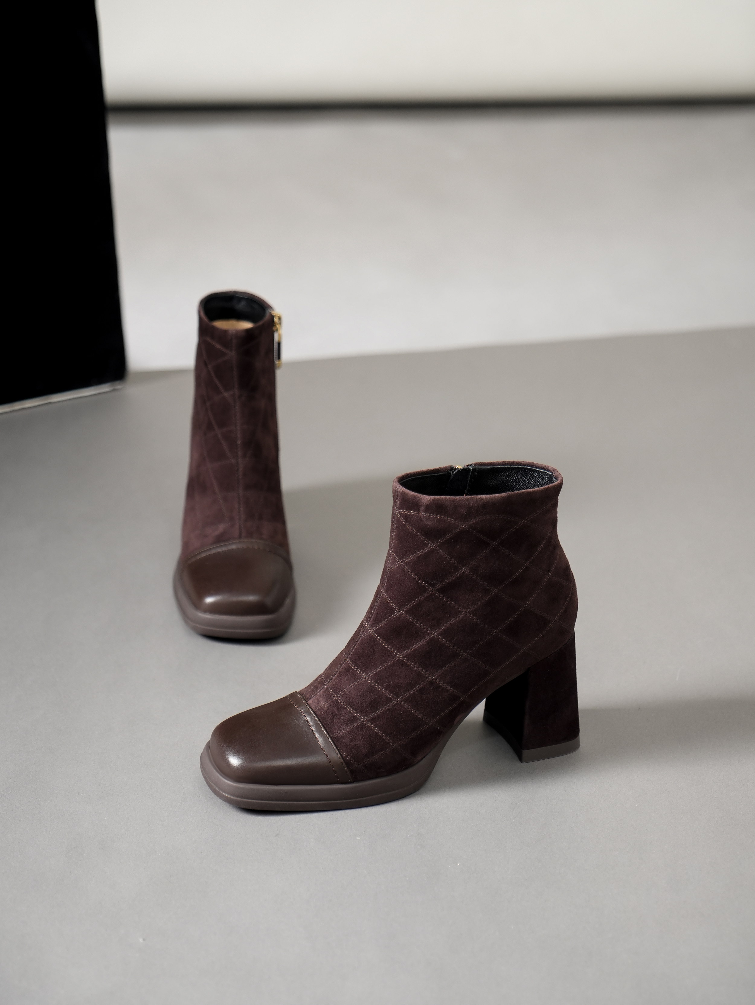 豪麟名鞋奥莱迪嘉女鞋短靴羊反绒面革/胎牛皮革DJYYO42WN203咖啡色 原价2660元