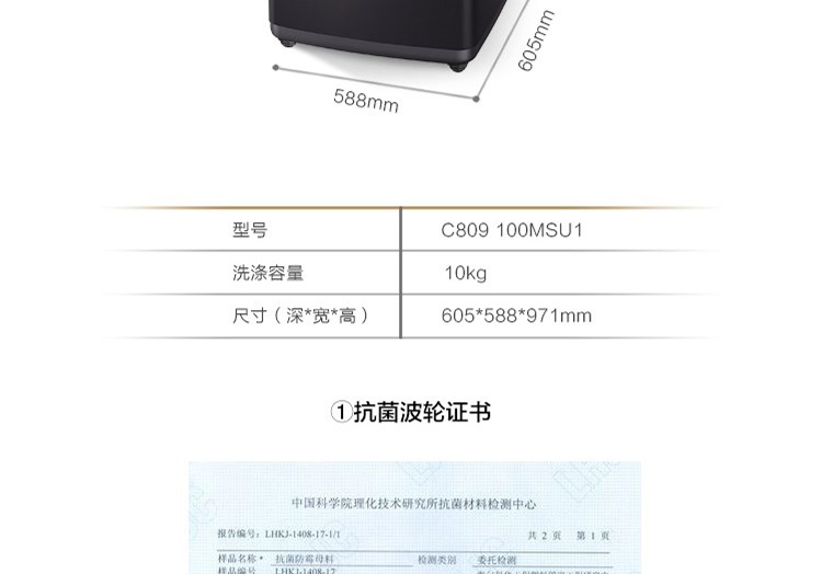 卡萨帝10公斤 波轮洗衣机 免清洗双动力 晶钻紫C809 100MSU1