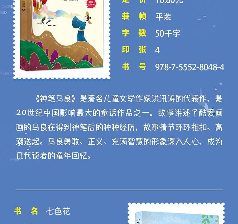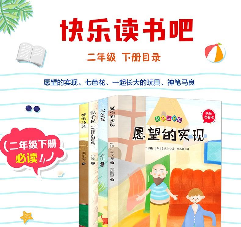 2年|快乐读书吧 二年级下册 愿望的实现_七色花_一起长大的玩具_神笔马良套装共4册 彩色注音版 小学生课外阅读书籍