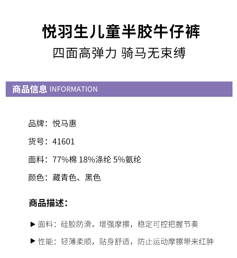 悦羽生夏季儿童半硅胶高弹牛仔马裤-41601