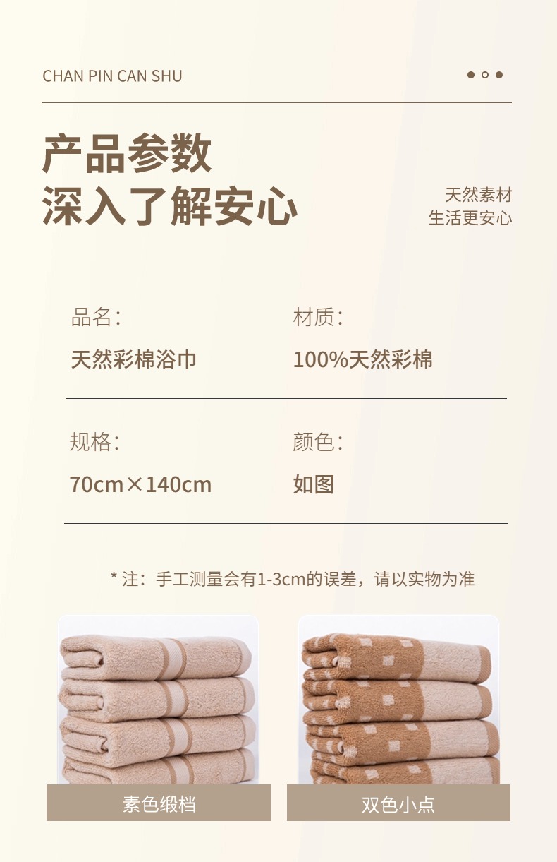 【新疆彩棉】 素色/圆点浴巾&卫浴四件套 | 天然无污染 越洗越柔软 吸水不掉毛