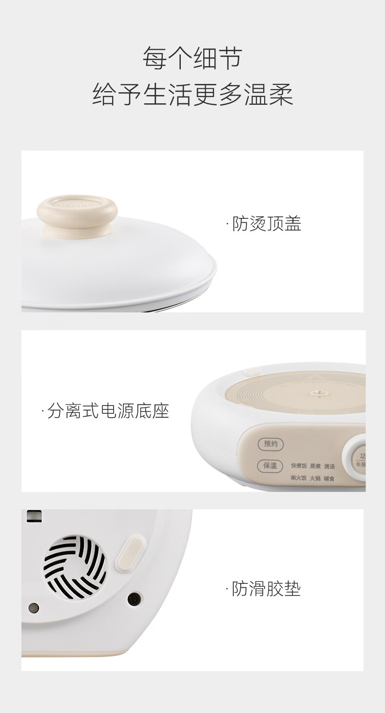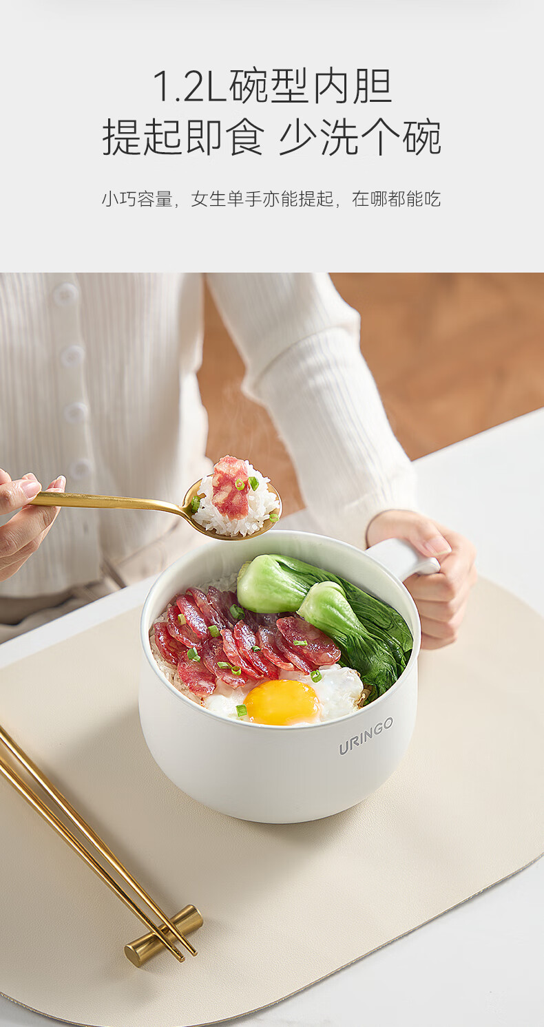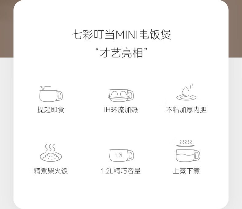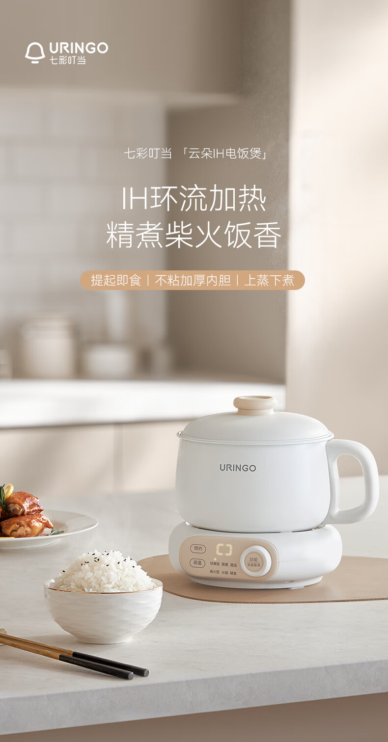 七彩叮当电饭煲电饭锅1.2L电压力锅米汤蒸笼1-2人智能加热煮饭家用多功能一体全自动小蒸饭锅QC-FB07 【蒸笼款】 1.2L 珍珠白