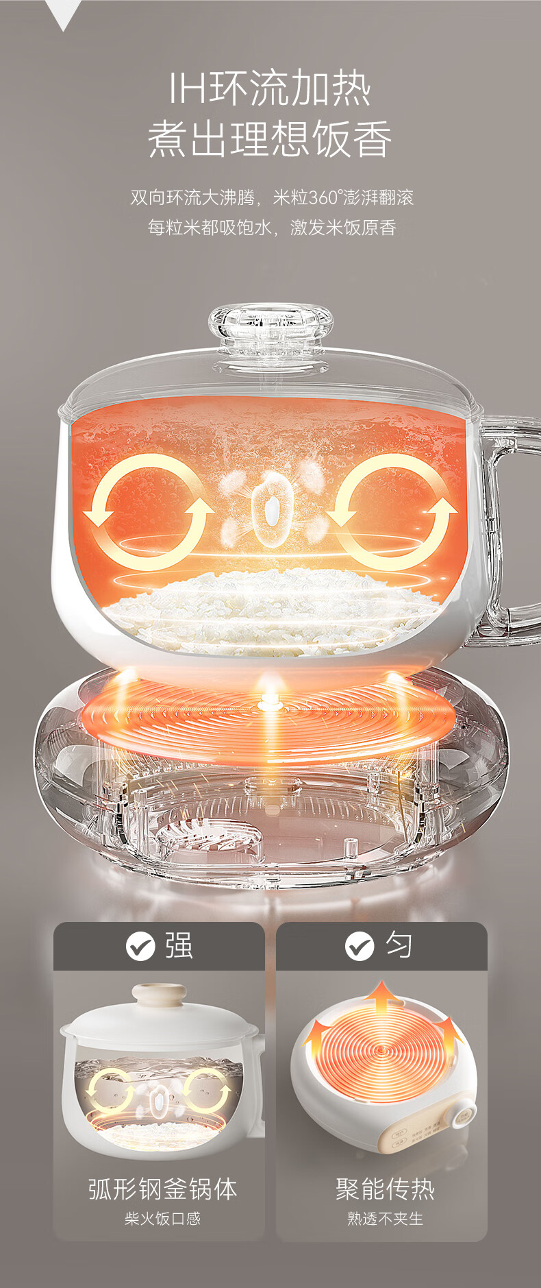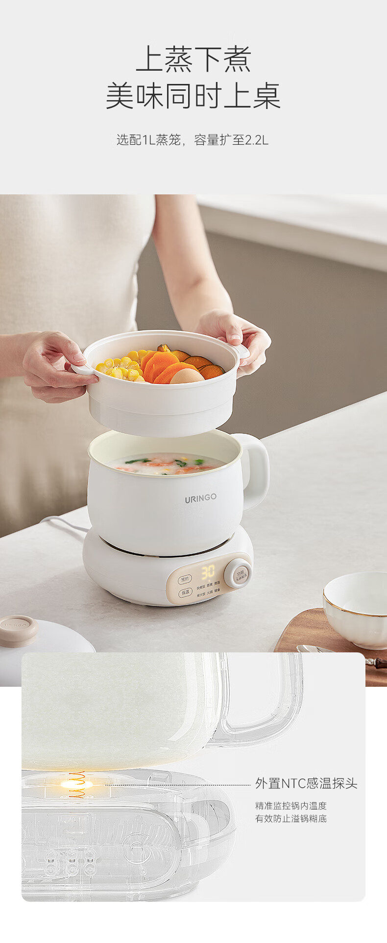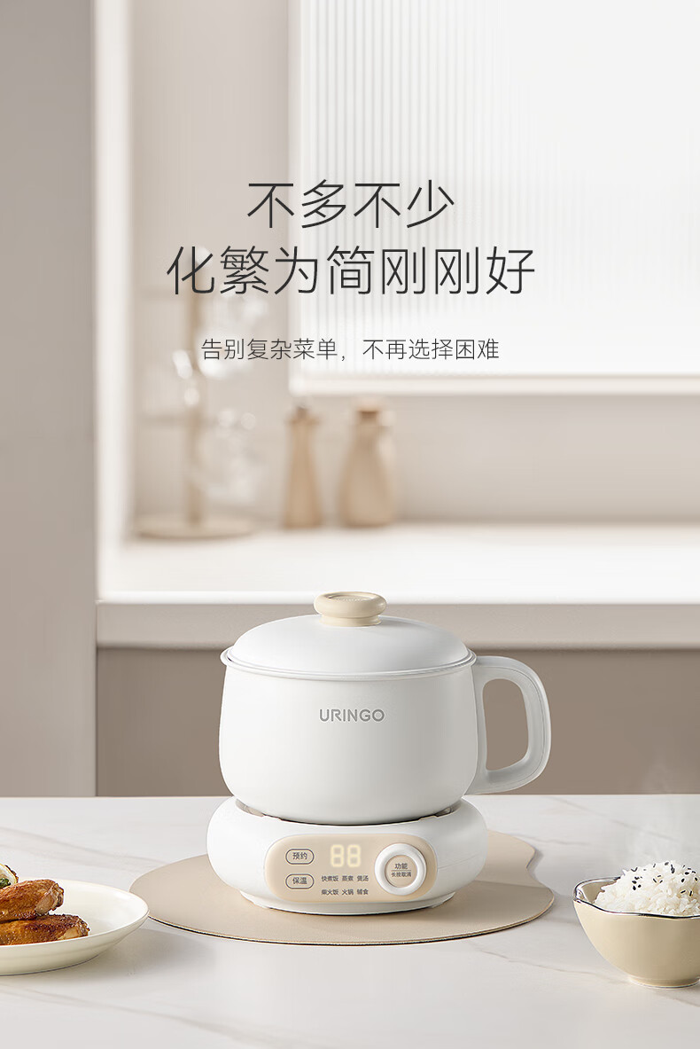 七彩叮当电饭煲电饭锅1.2L电压力锅米汤蒸笼1-2人智能加热煮饭家用多功能一体全自动小蒸饭锅QC-FB07 【蒸笼款】 1.2L 珍珠白