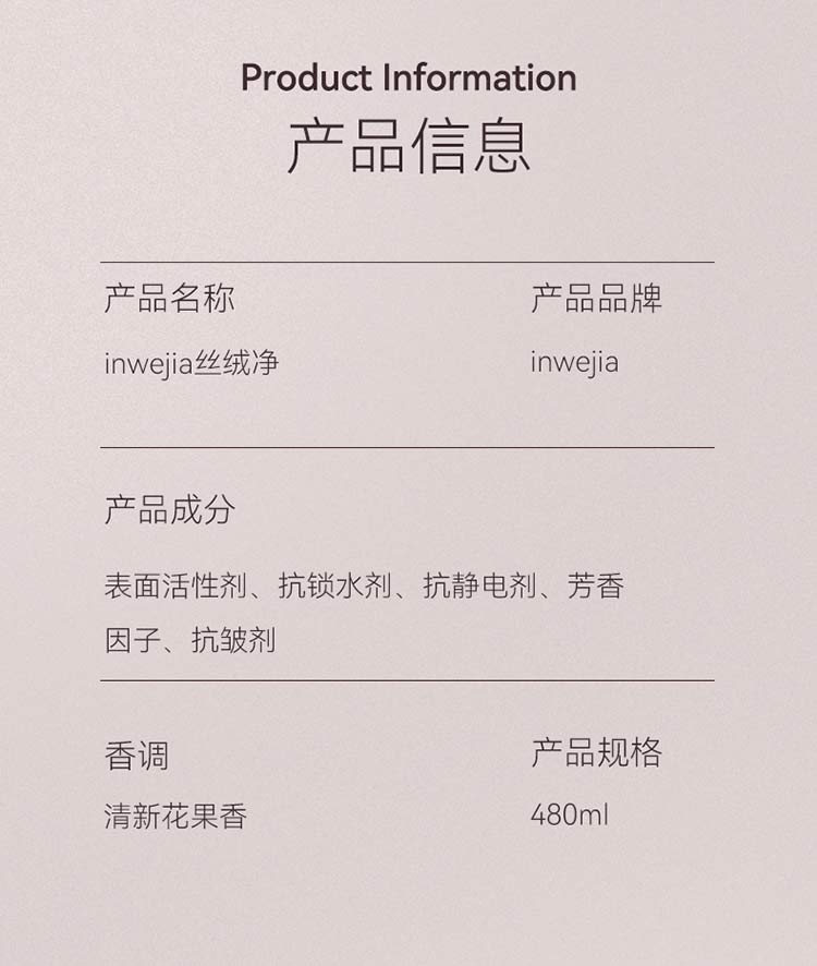 inwejia 洗衣丝绒净 480ml/瓶 羽绒羊绒真丝洗衣液 为高端衣物而生 洗完蓬松柔软 深层去污垢 洁净如新衣 配方温和