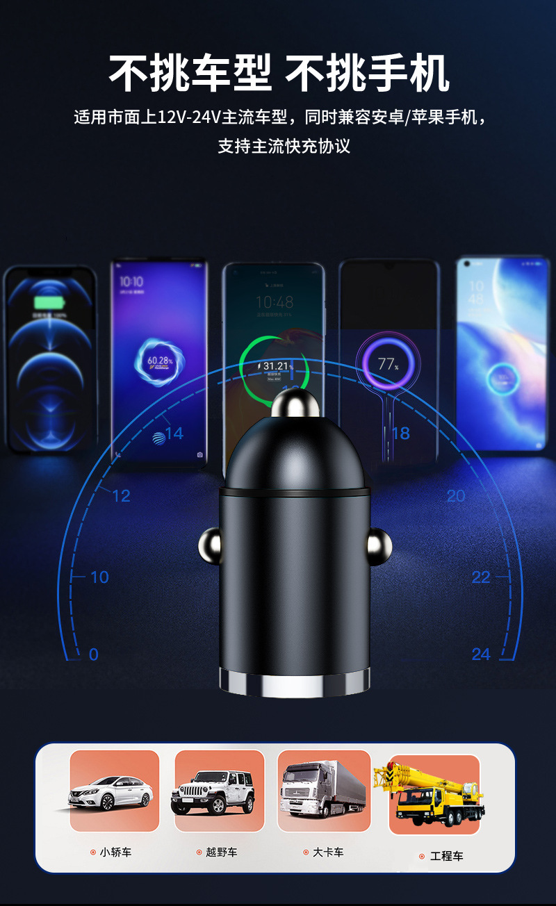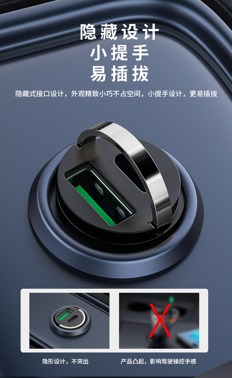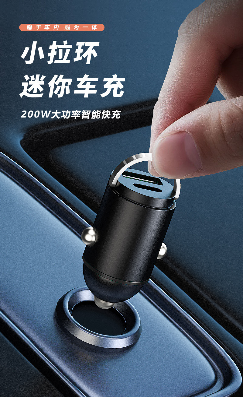 热卖中!春节不打烊【小拉环!迷你车载充电器】100W超级快充头迷你隐形车充汽车点烟器一拖二转换插头。ry