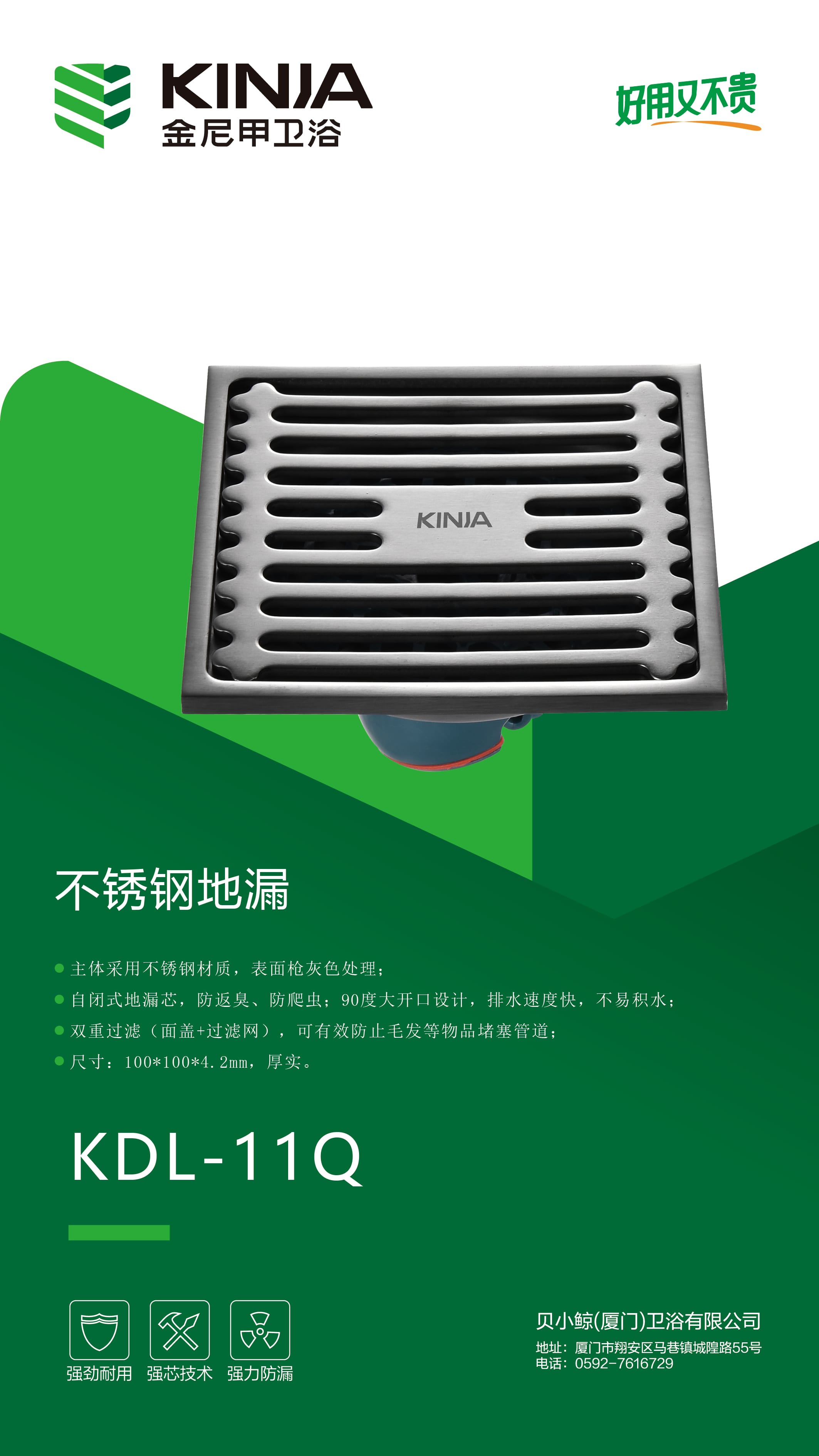 地漏/KDL-11Q/SUS201枪灰色(4.2mm)/方形盖