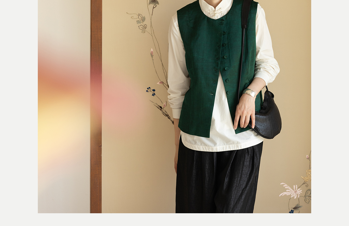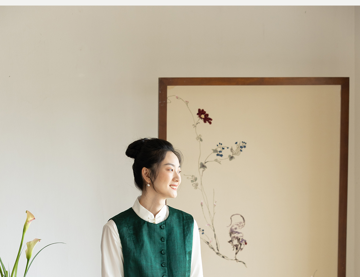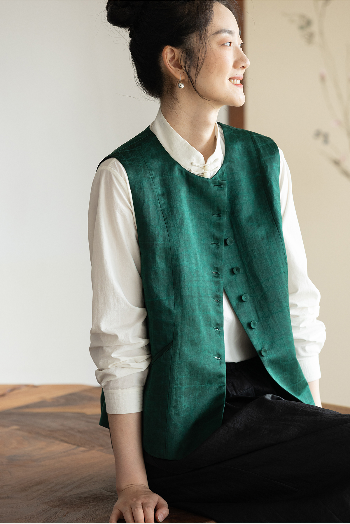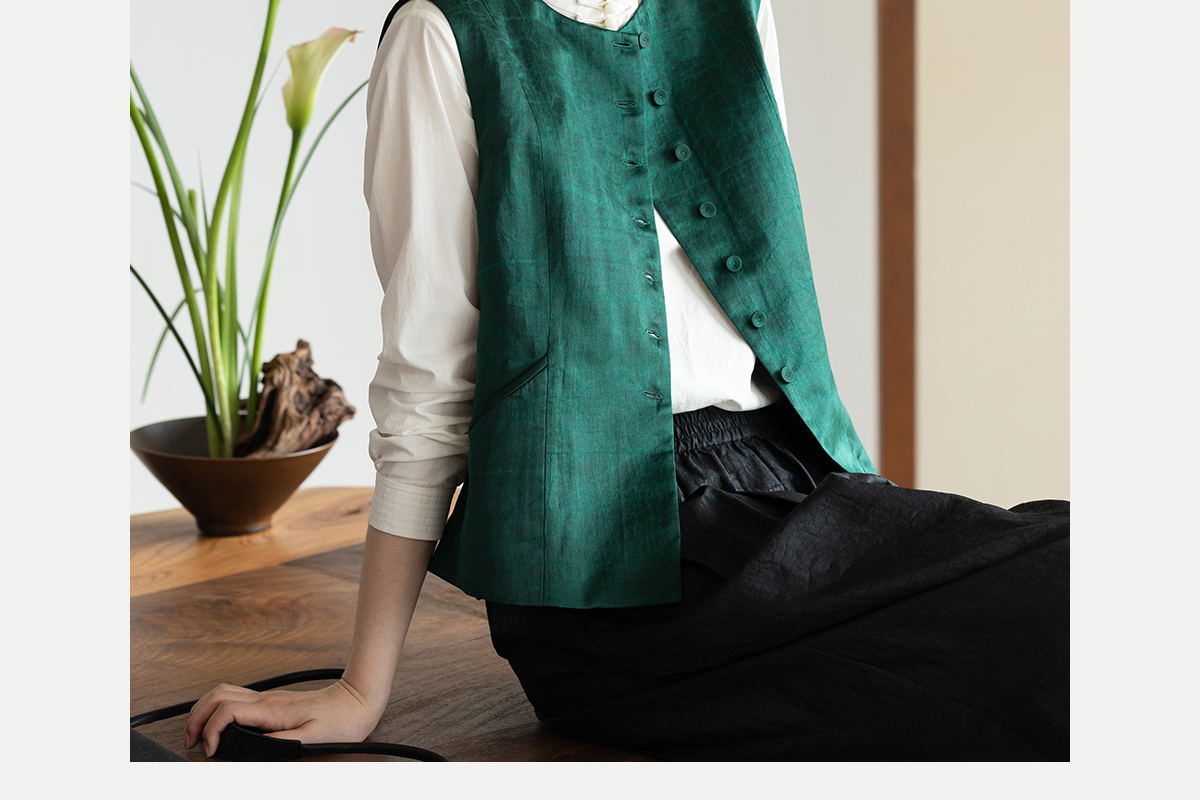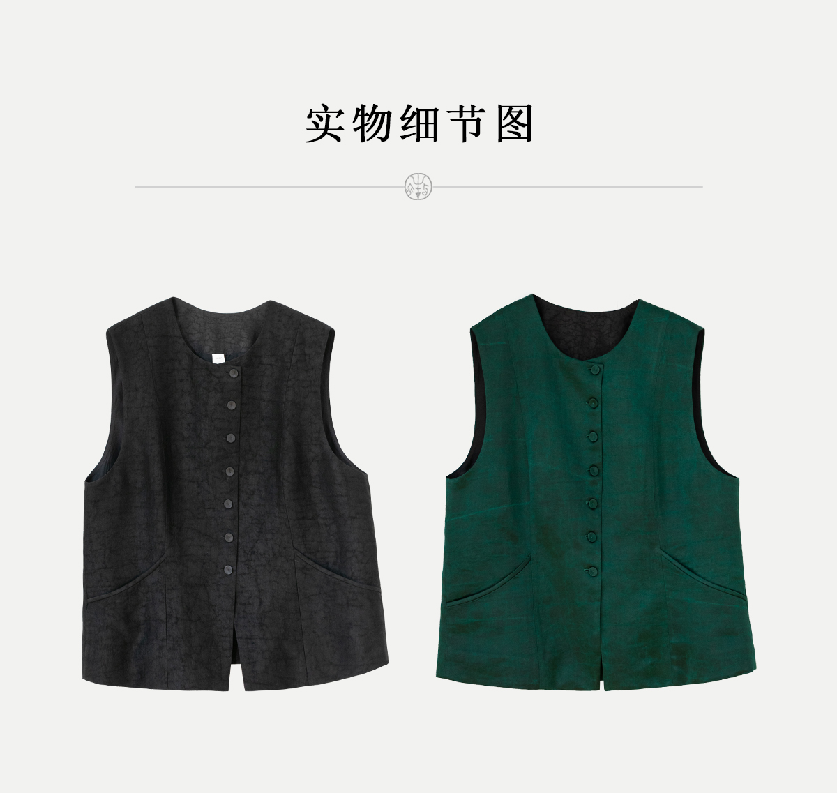 牧衣游原创 重磅26姆米香云纱龟裂纹绿染马夹复古中式开衫 喻然