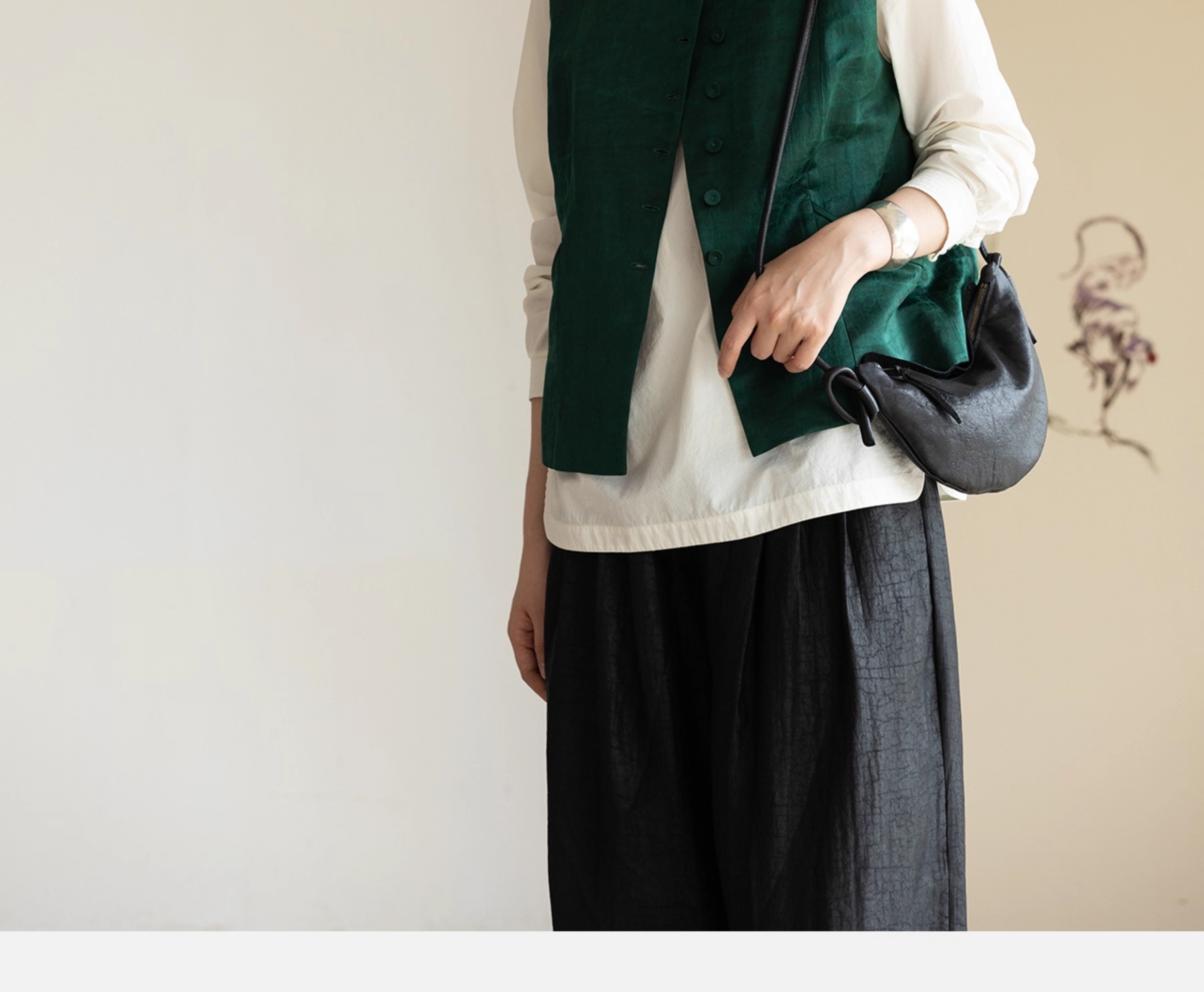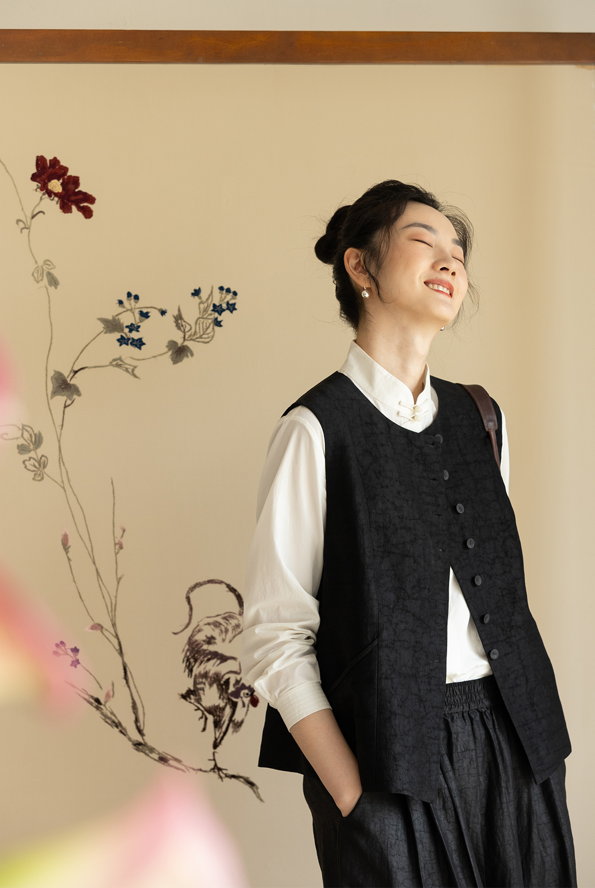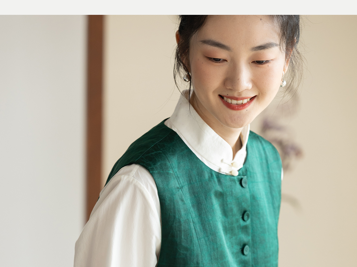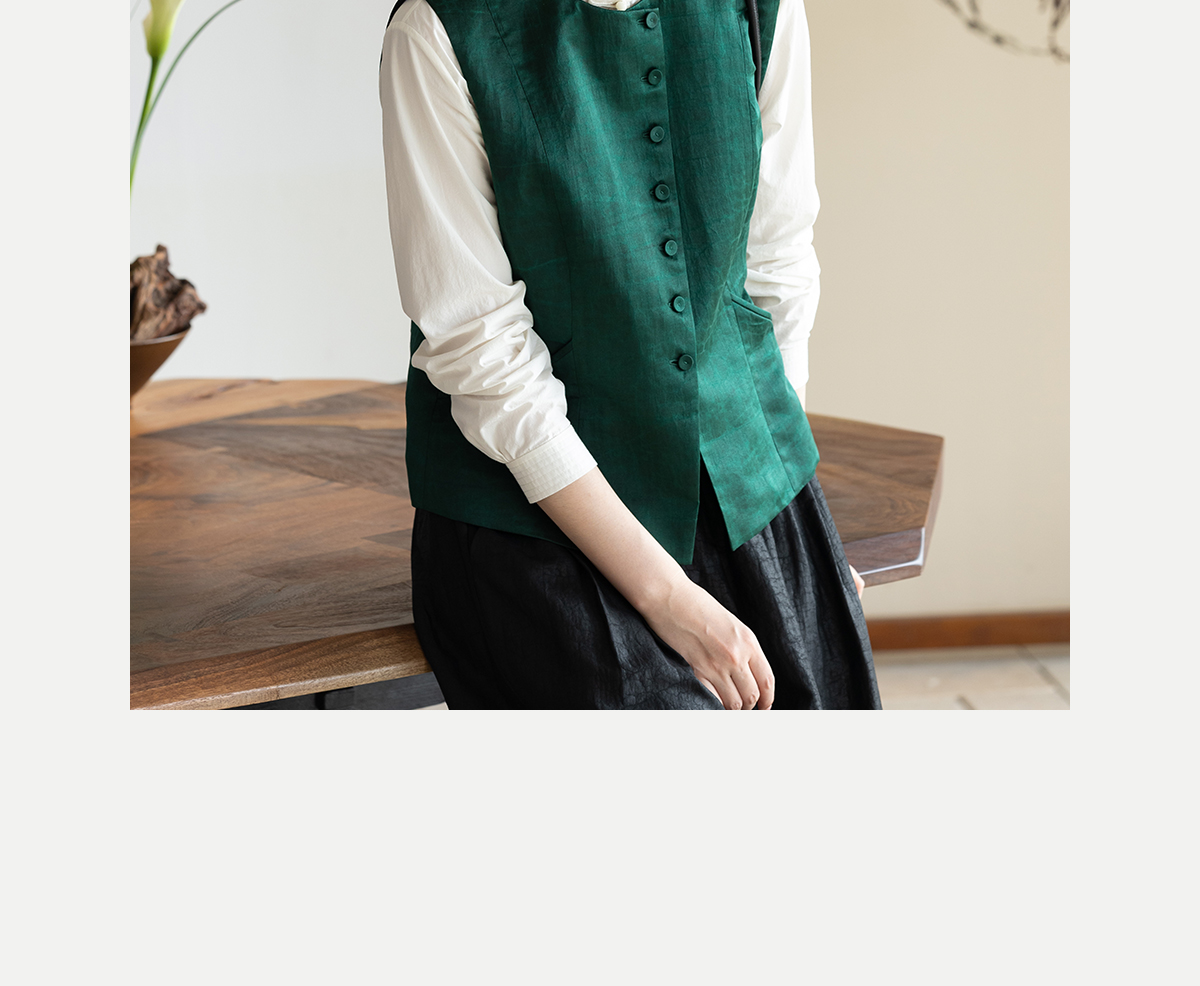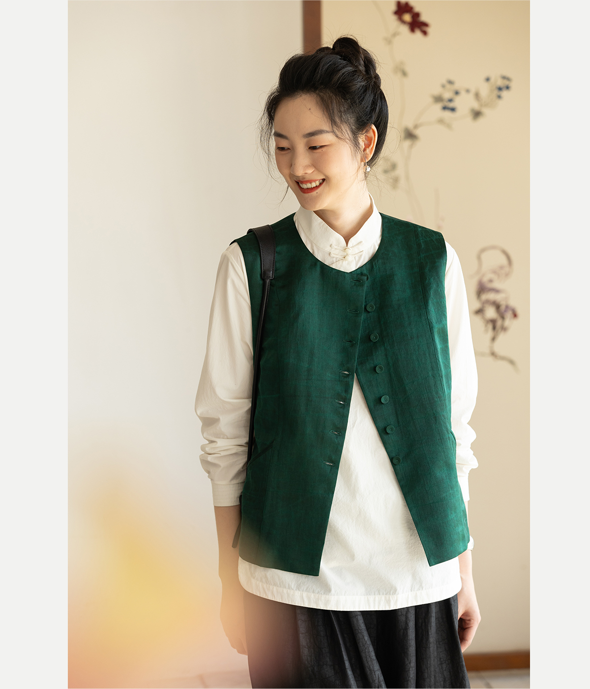 牧衣游原创 重磅26姆米香云纱龟裂纹绿染马夹复古中式开衫 喻然