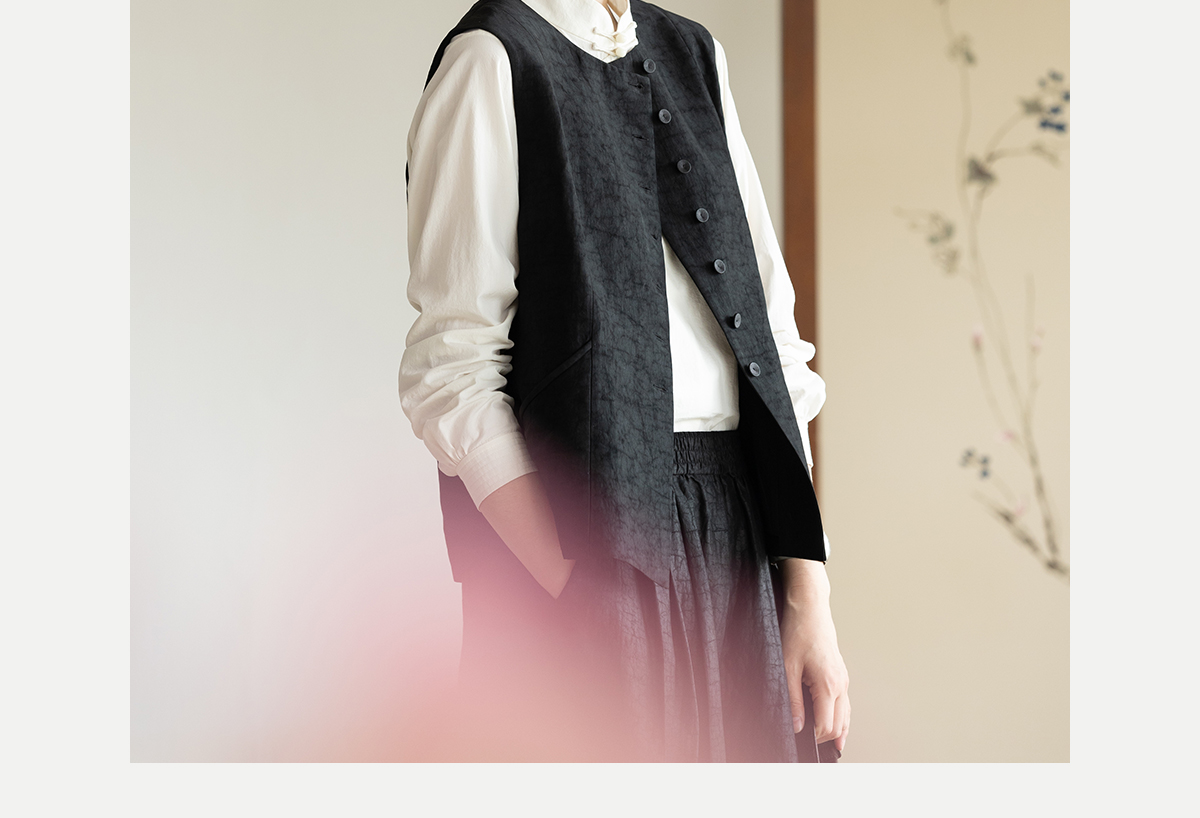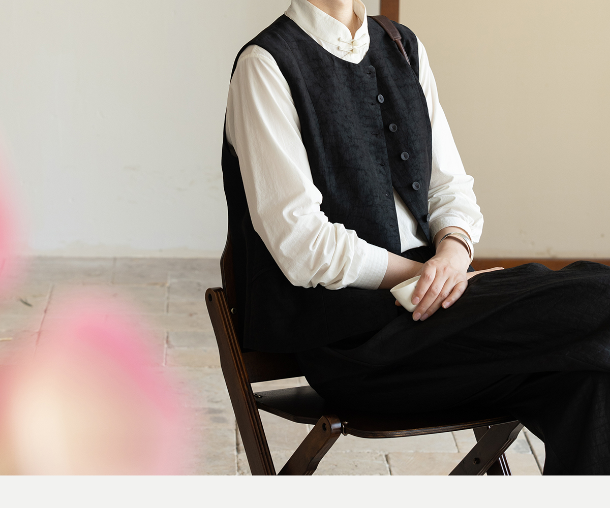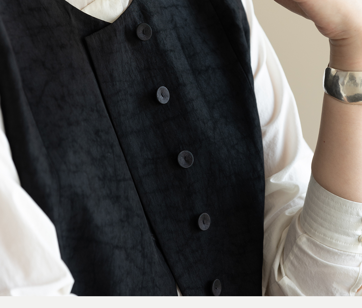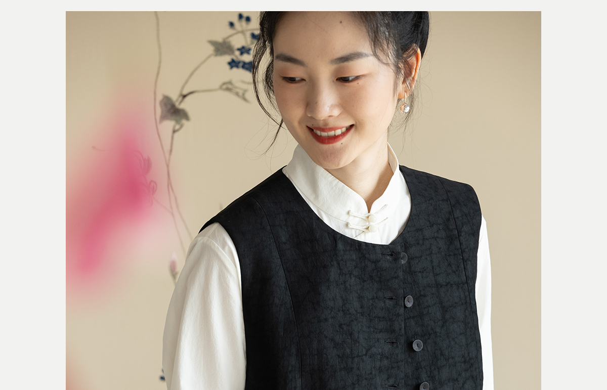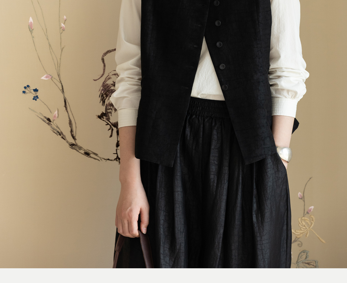 牧衣游原创 重磅26姆米香云纱龟裂纹绿染马夹复古中式开衫 喻然
