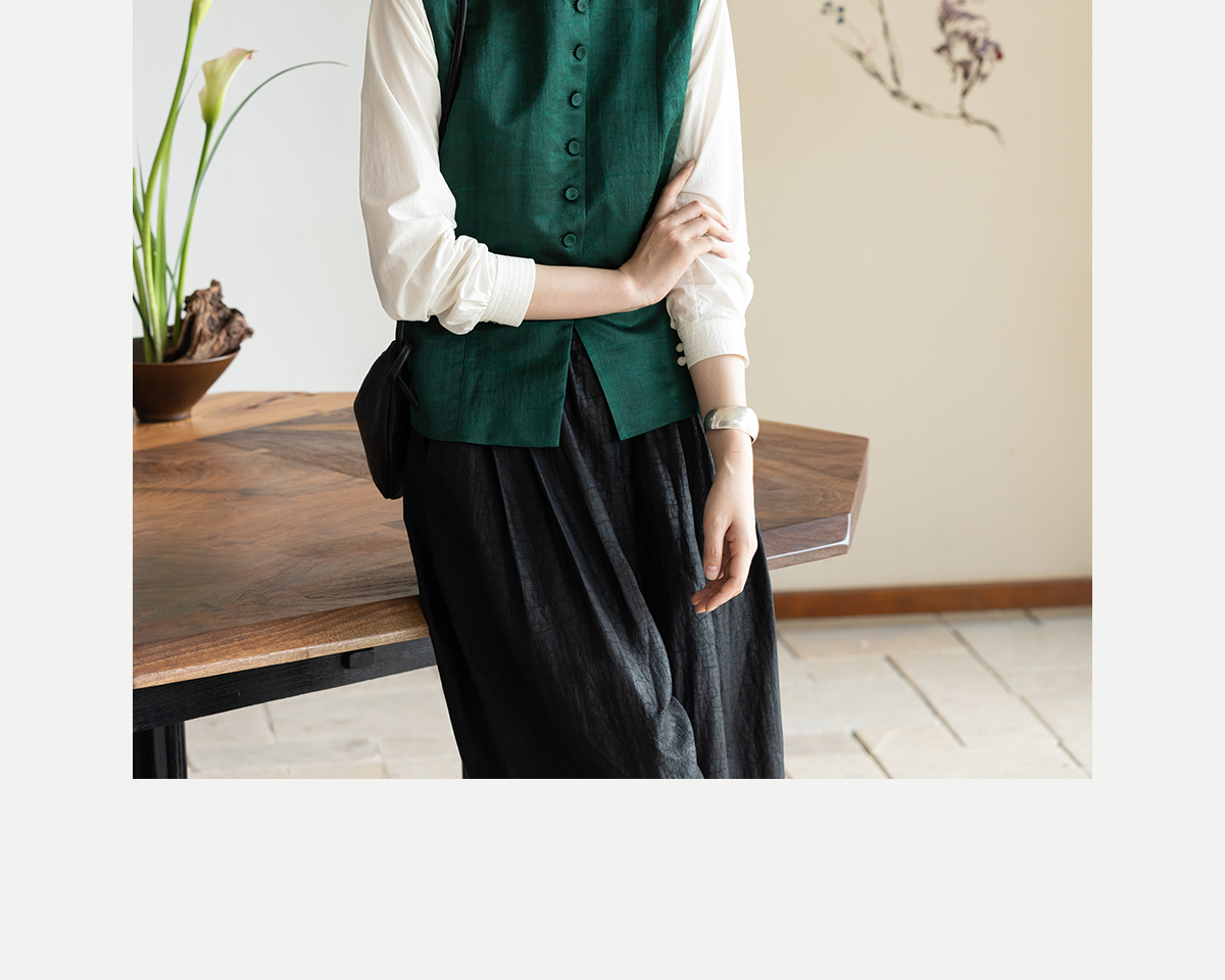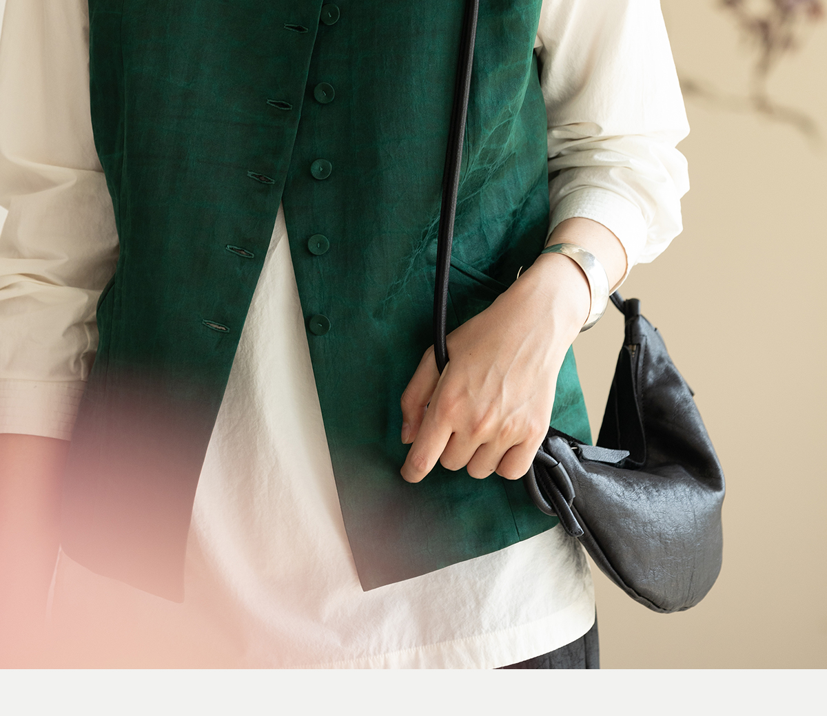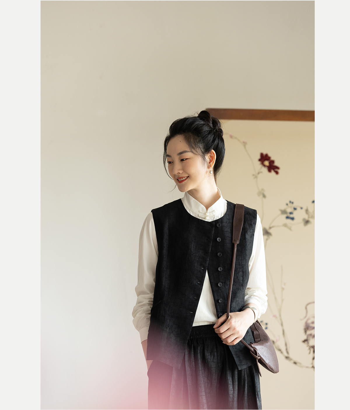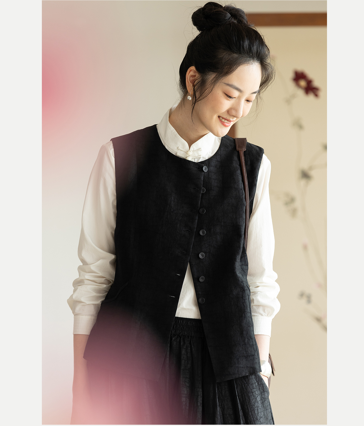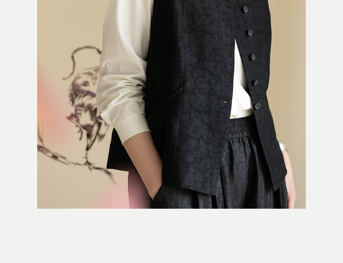 牧衣游原创 重磅26姆米香云纱龟裂纹绿染马夹复古中式开衫 喻然