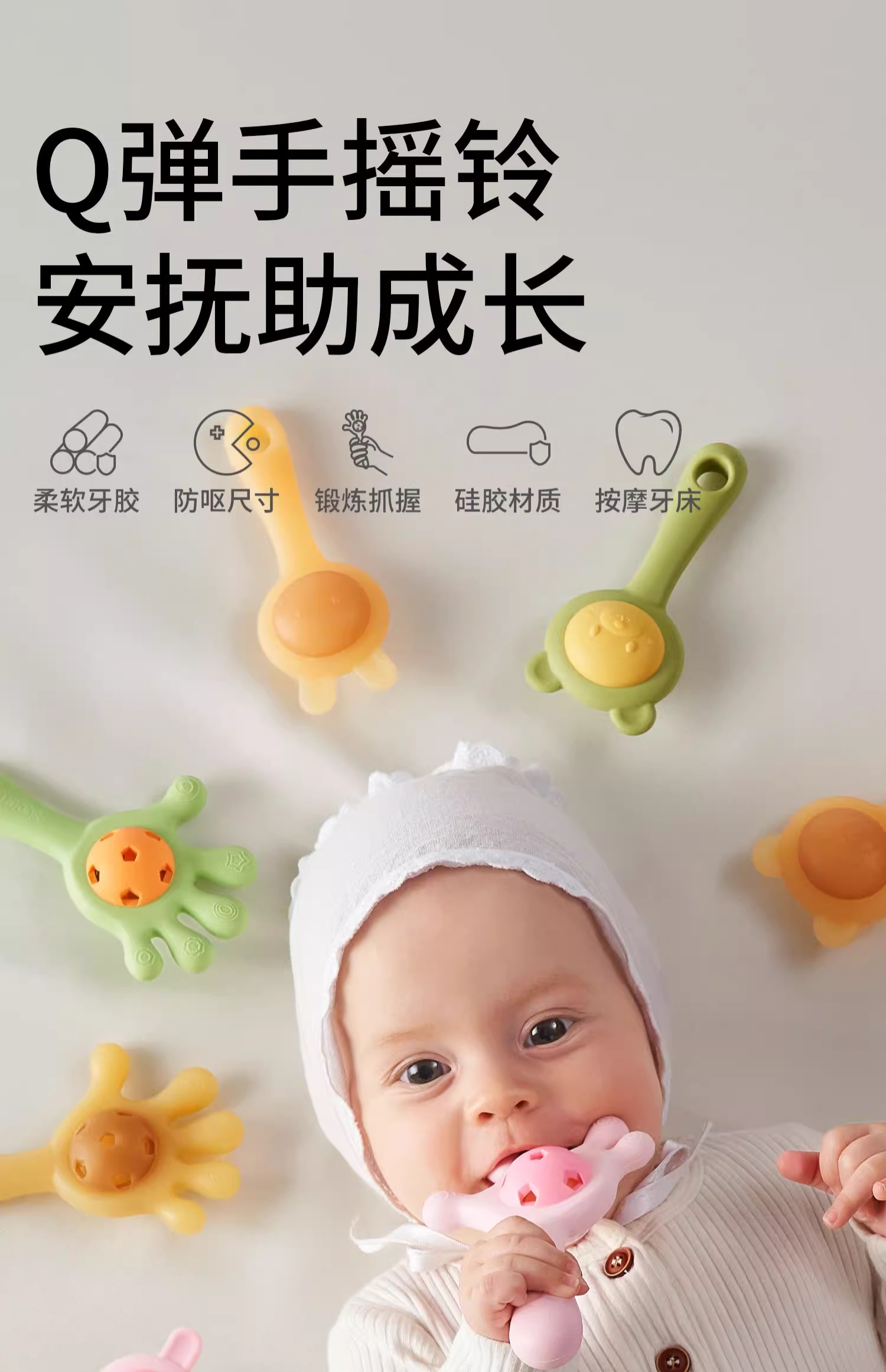 科巢手摇铃婴儿玩具0到3个月一1岁新生幼宝宝6以上12早教益智牙胶
