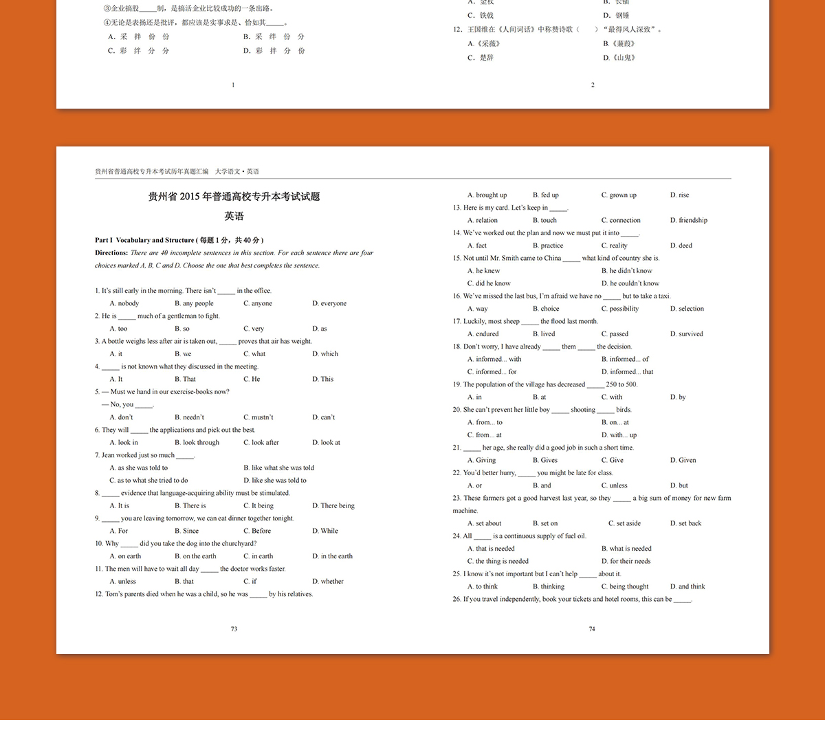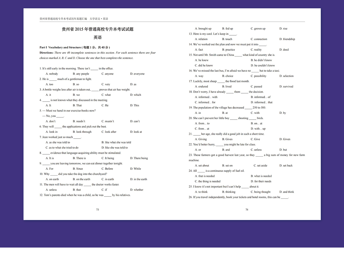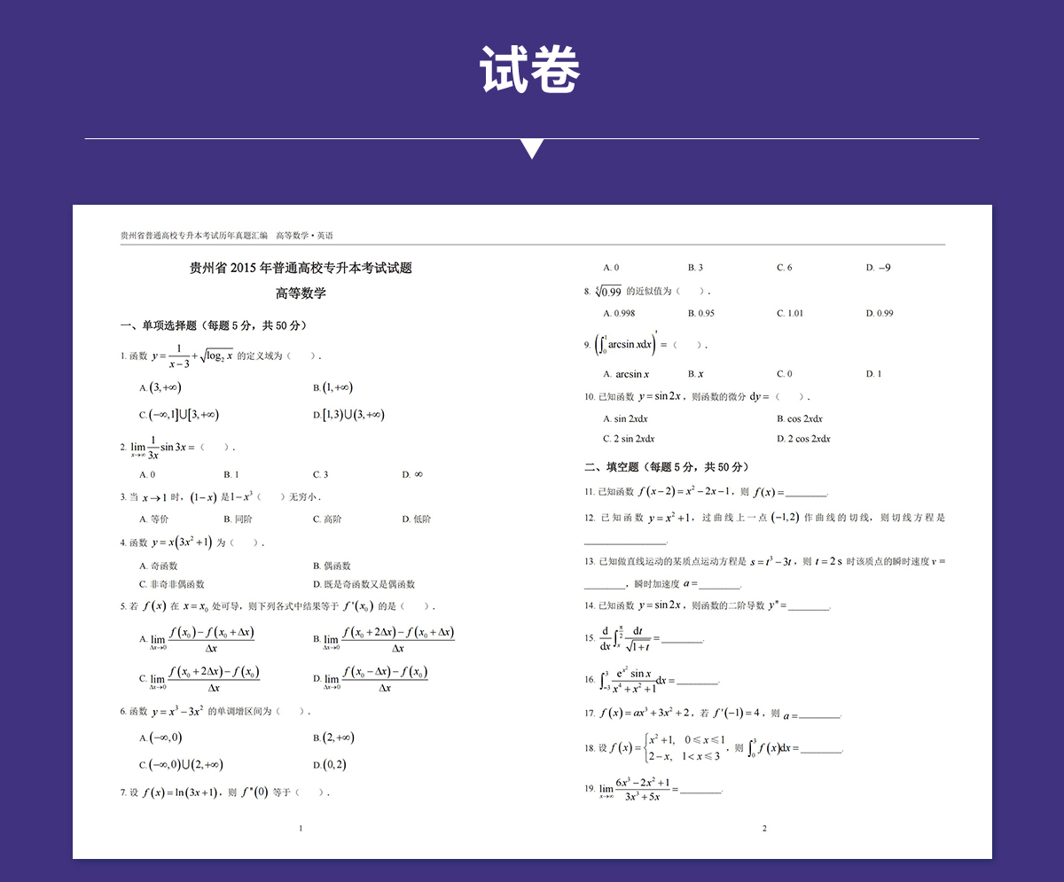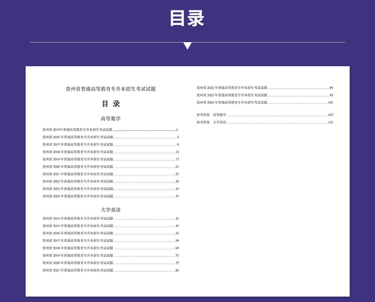 贵州专升本真题试卷近10年(2015-2025)