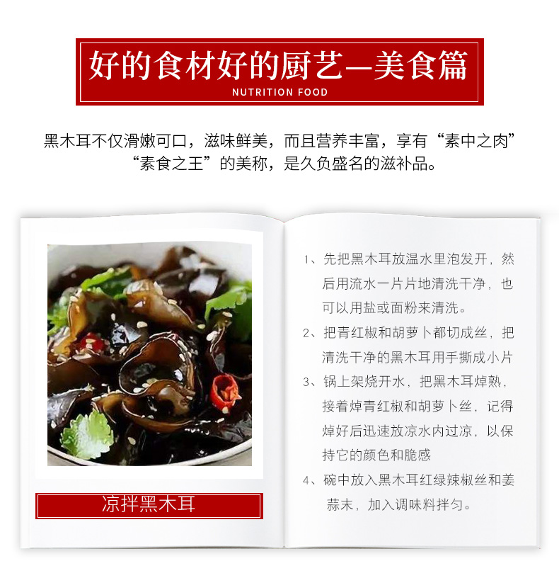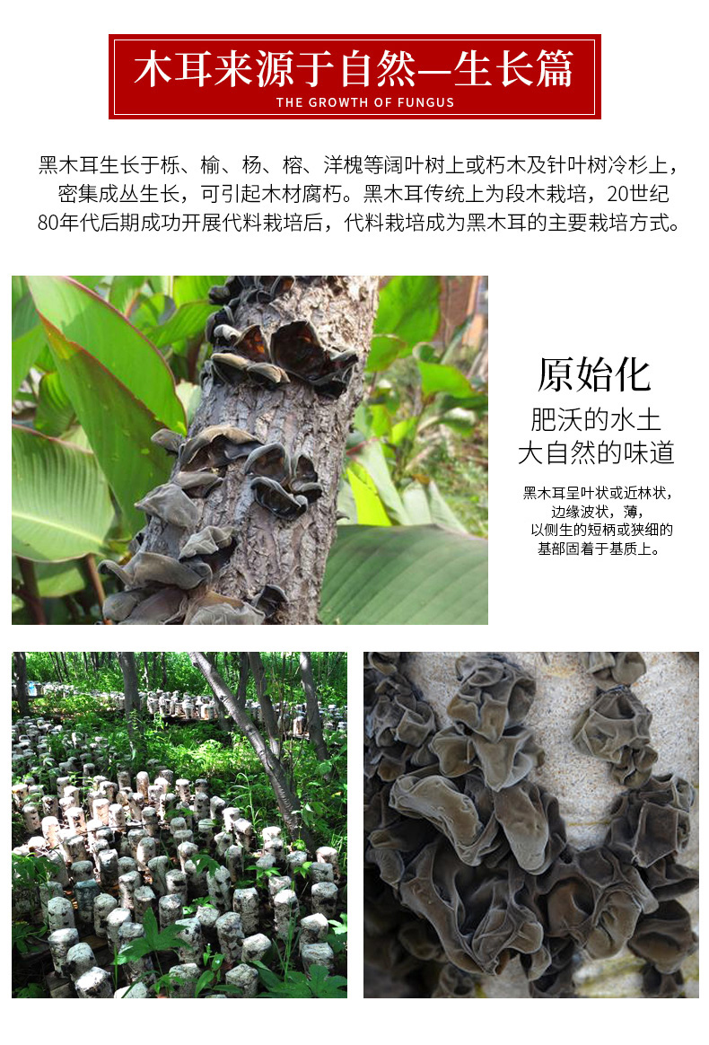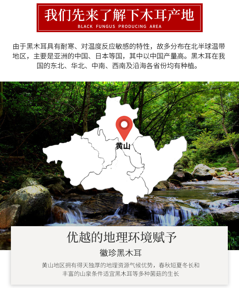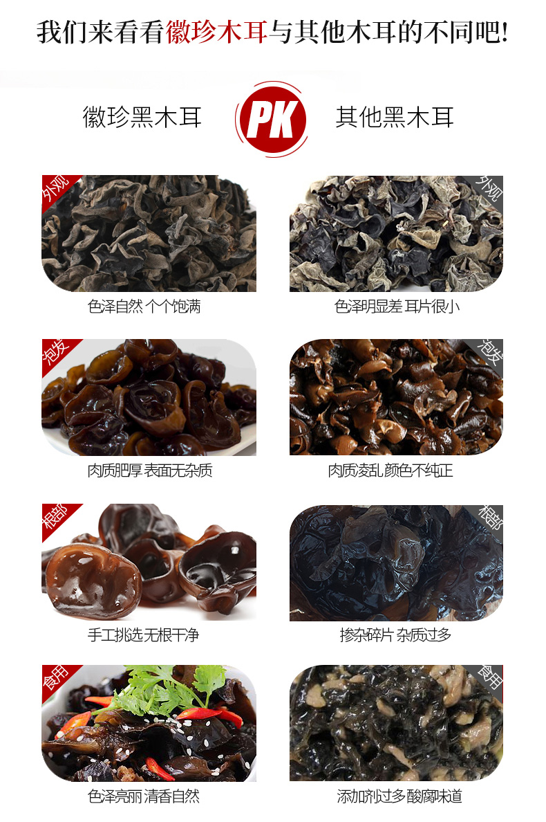 黄山黑木耳土特产不增重不加糖无根乌黑肉厚朵型完整泡发不碎250g