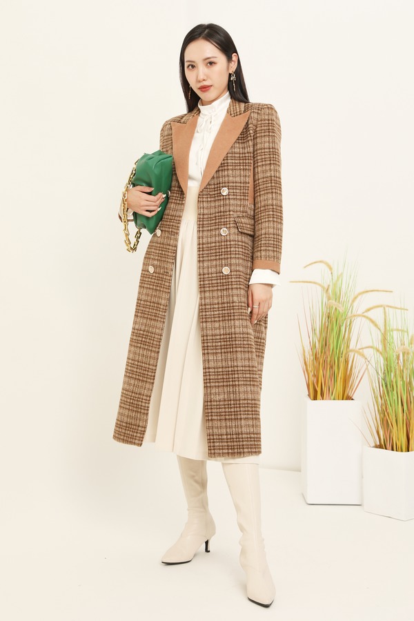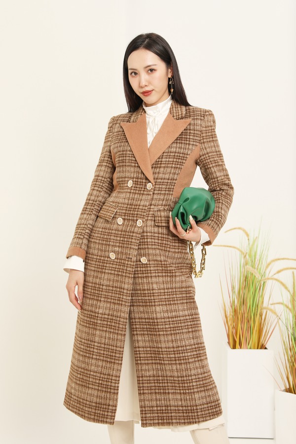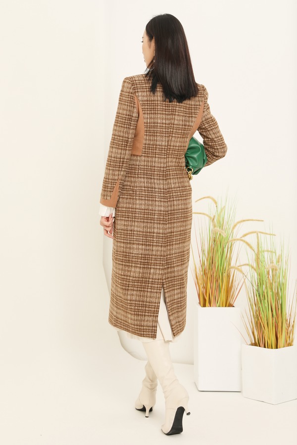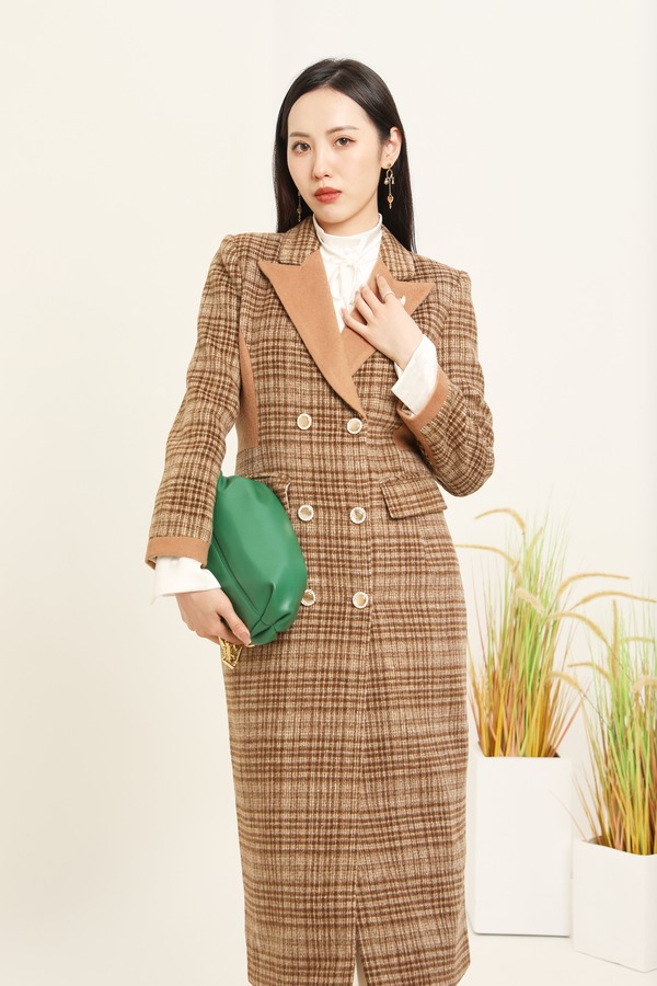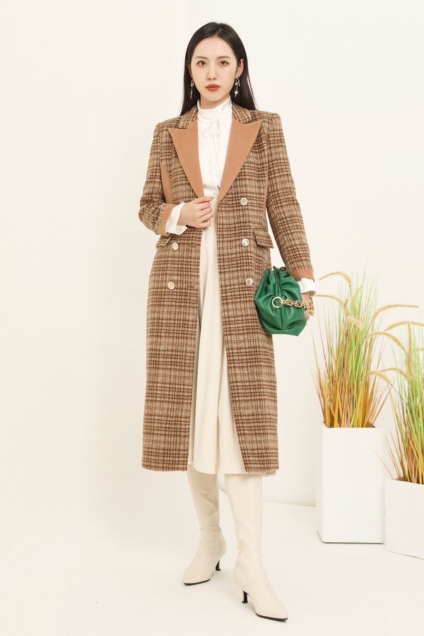 ESTELLICA 修身格纹双排扣毛呢西装外套 14784