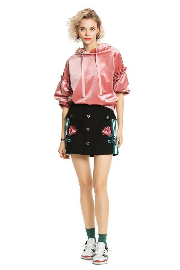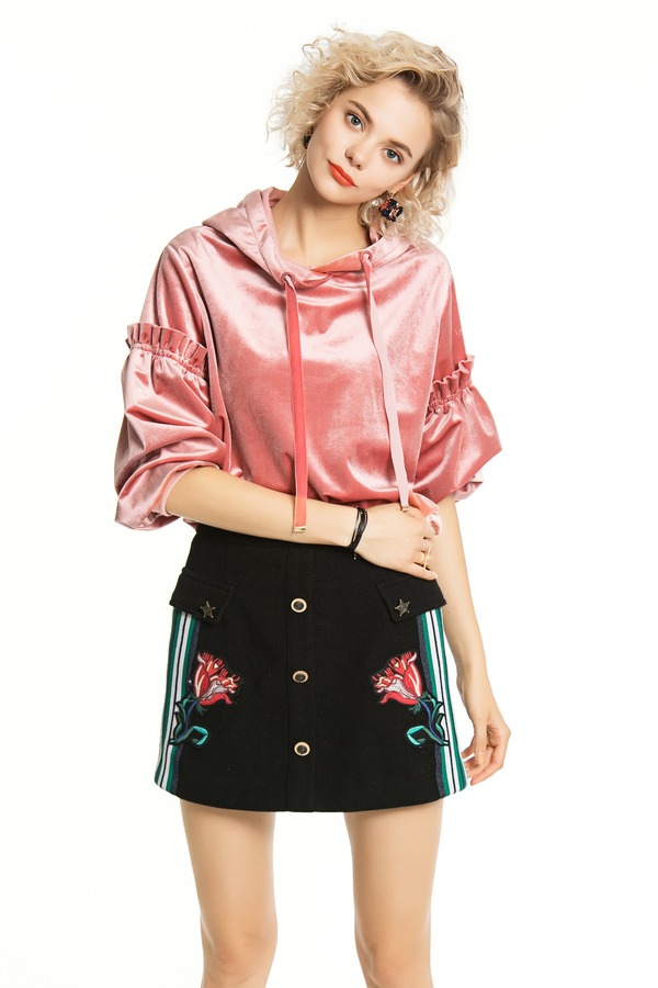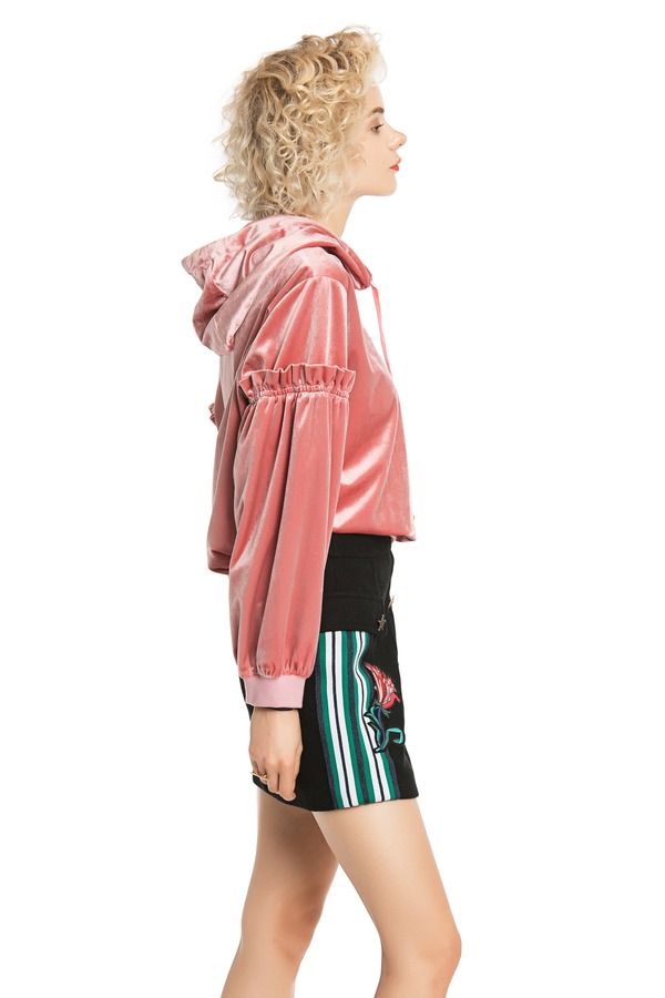 SUMMER & SAGE 灯笼袖连帽丝绒卫衣 4551