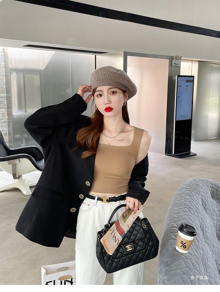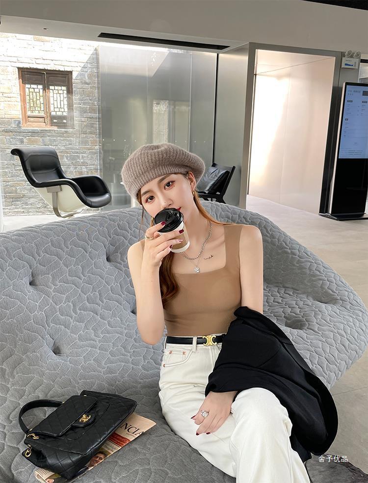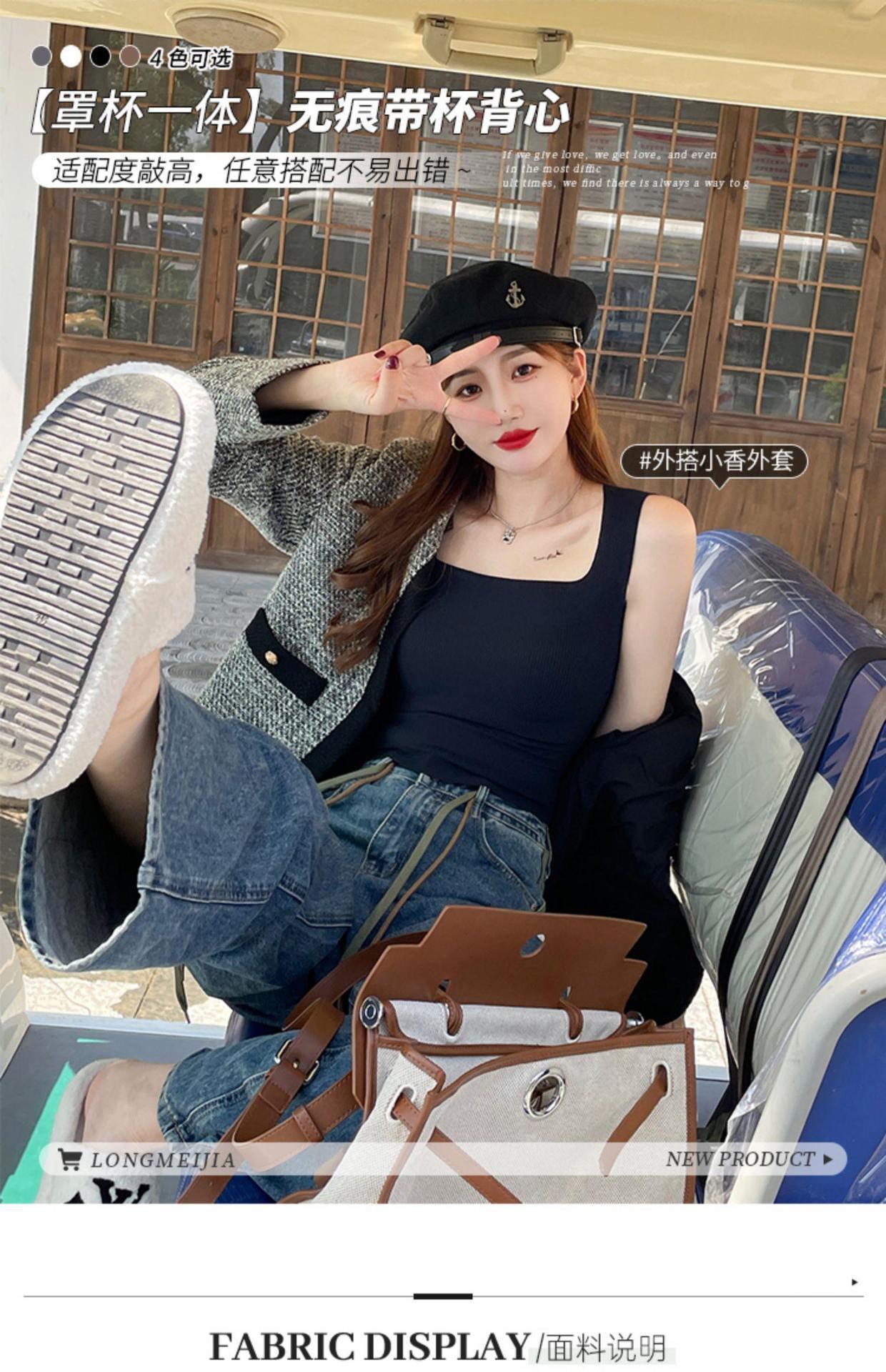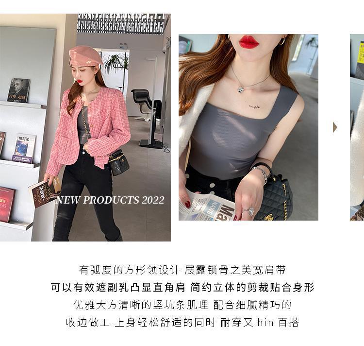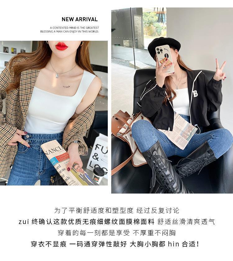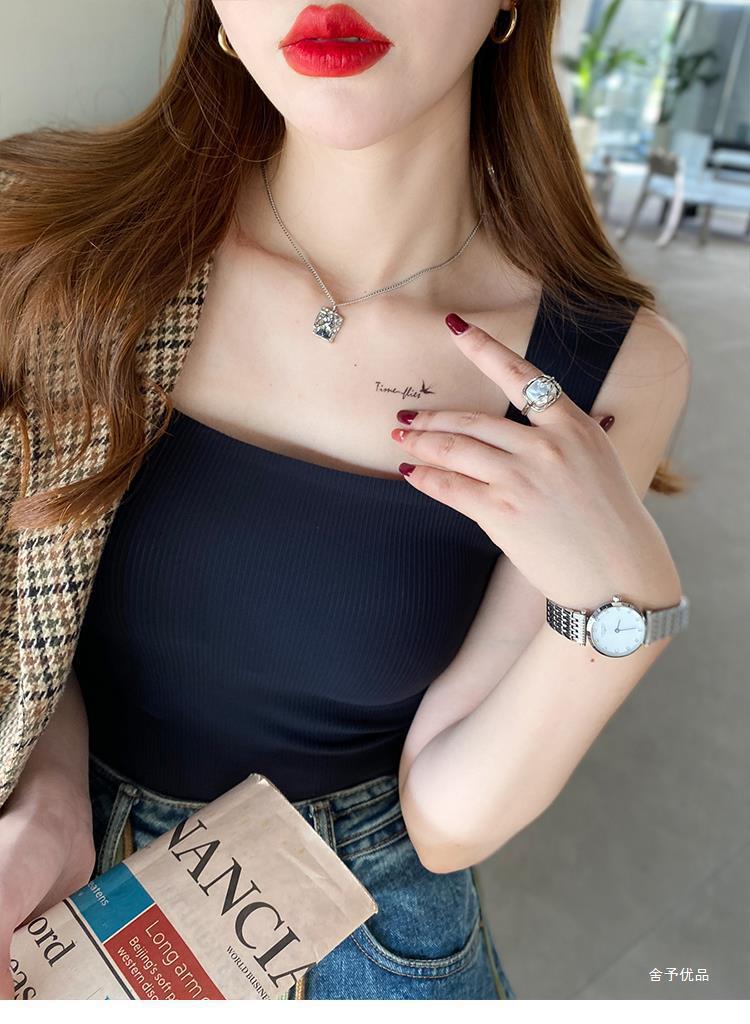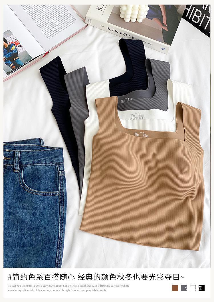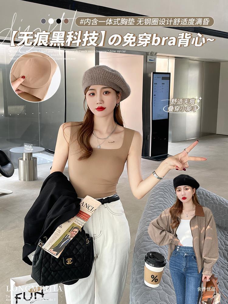 【显瘦百搭!U型美背螺纹背心】自带胸垫防走光新款吊带,内搭外穿防走光背心!无袖薄款上衣打底修身吊带背心内搭带胸垫美背外穿文胸一体内衣无袖上衣