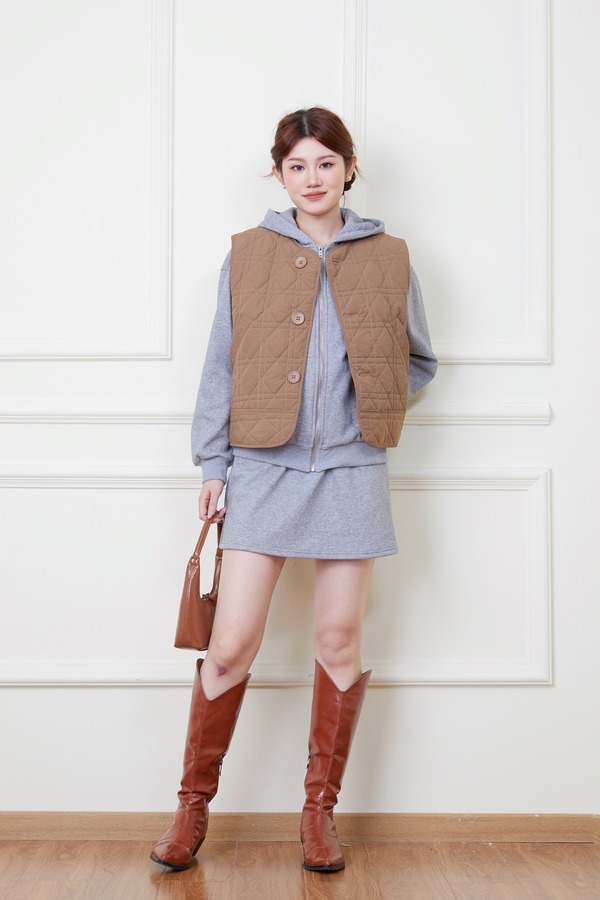 LNNNS 棕色菱格纹绗棉棉服马甲外套 19235