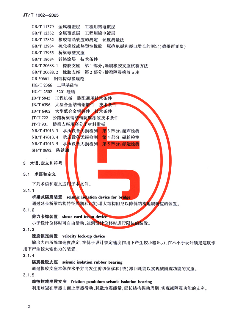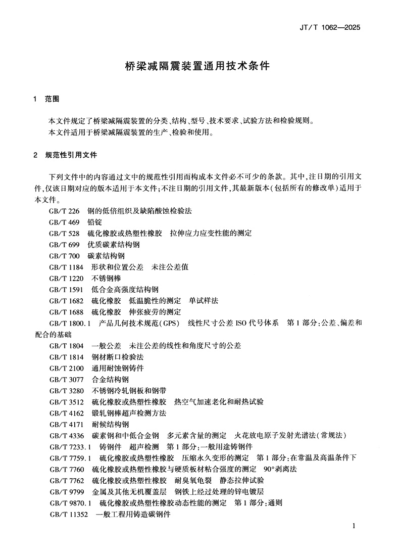 书名:桥梁减隔震装置通用技术条件(JT/T 1062—2025)