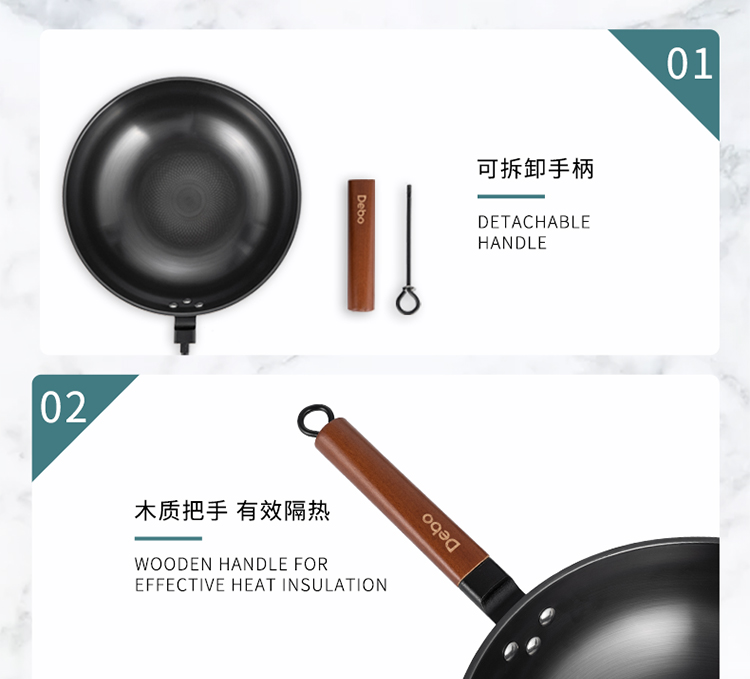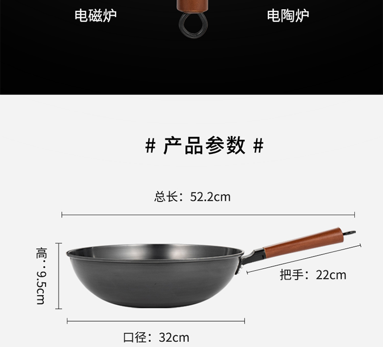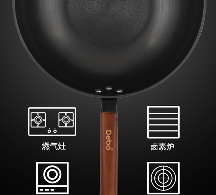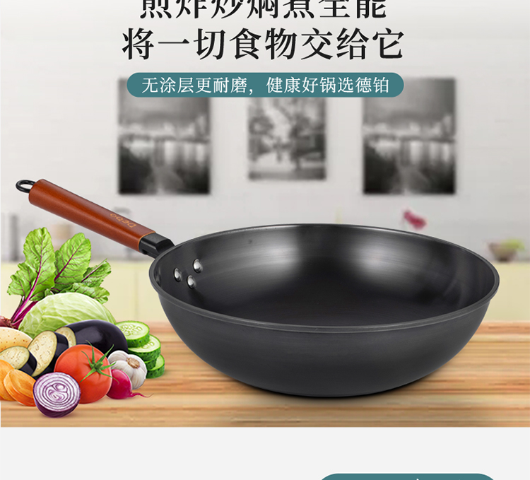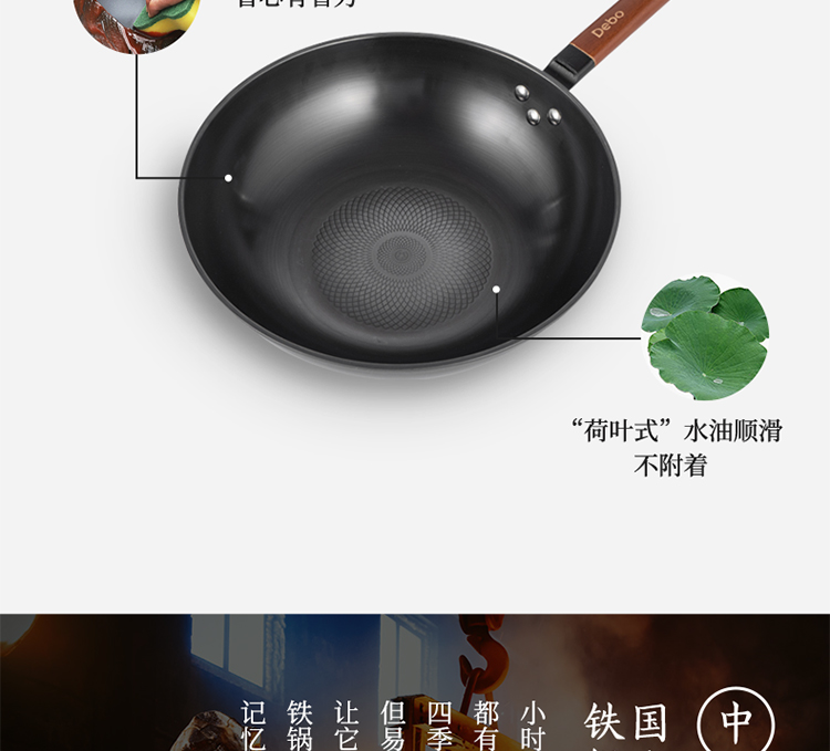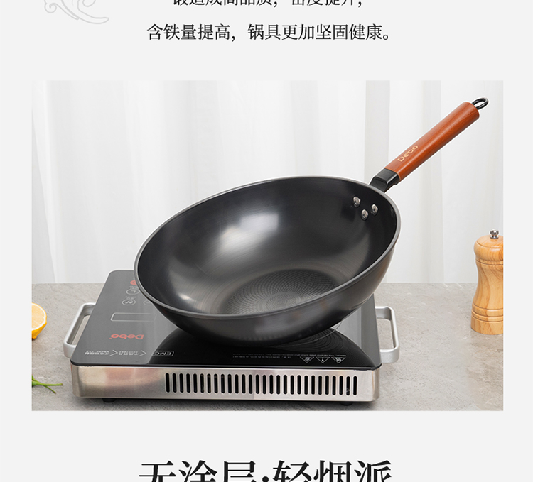 Debo德铂艾娜炒锅家用精铁无涂层氮化防锈炒菜锅电磁炉燃气灶通用