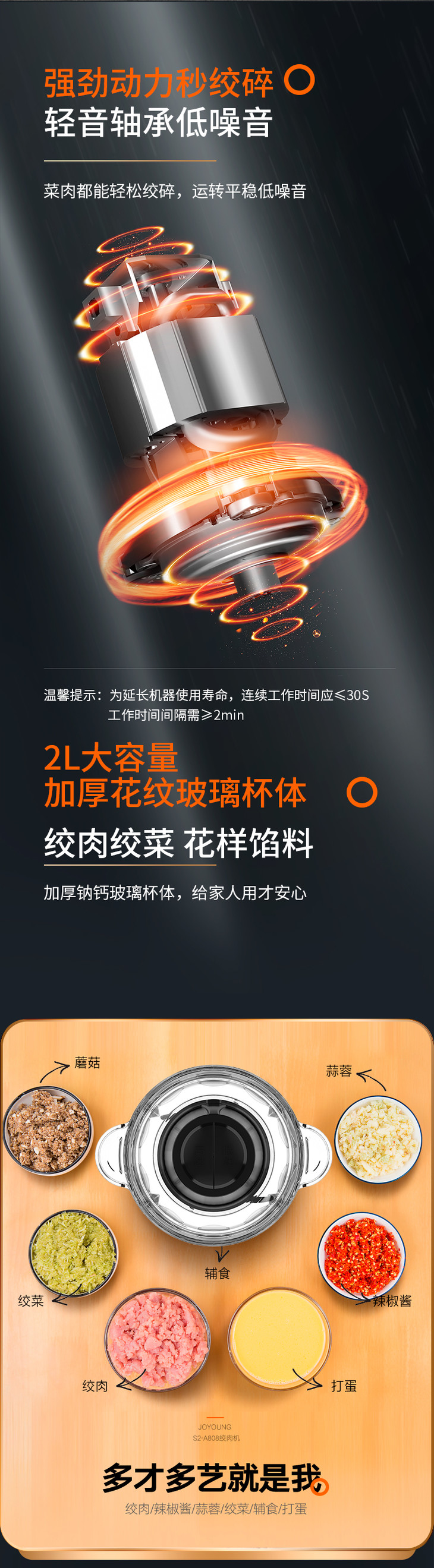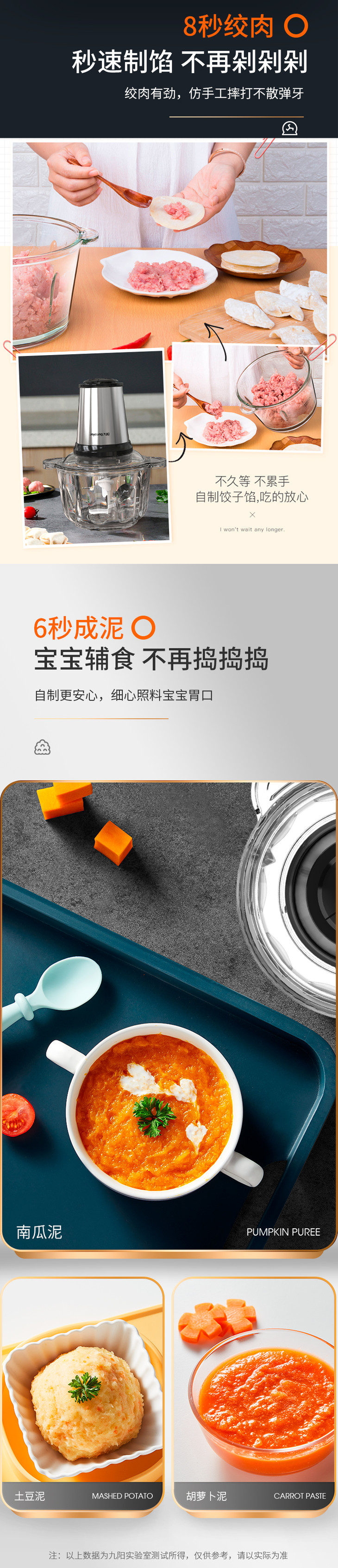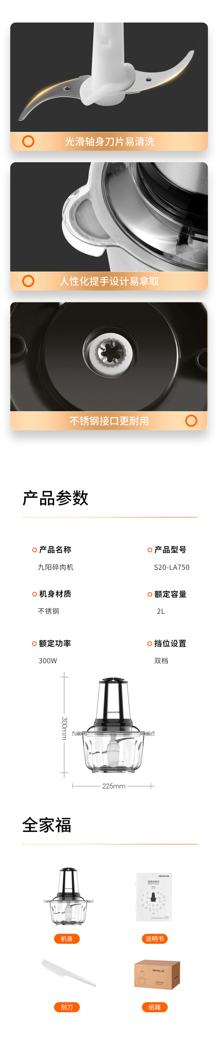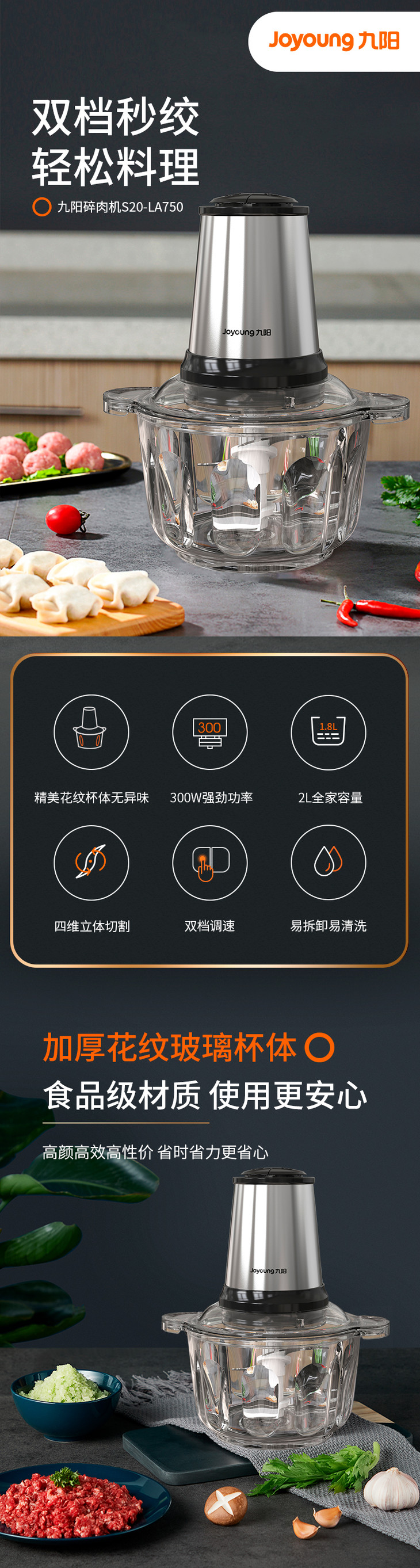 九阳S20-LA750 绞肉机家用电动多功能不锈钢小型碎肉料理搅拌机饺子馅辅食机
