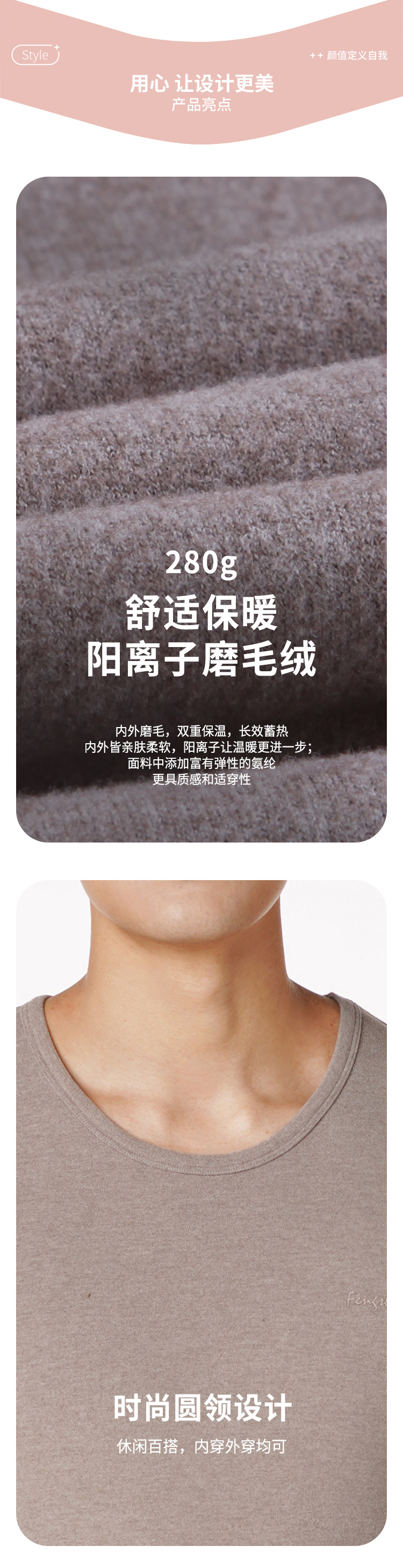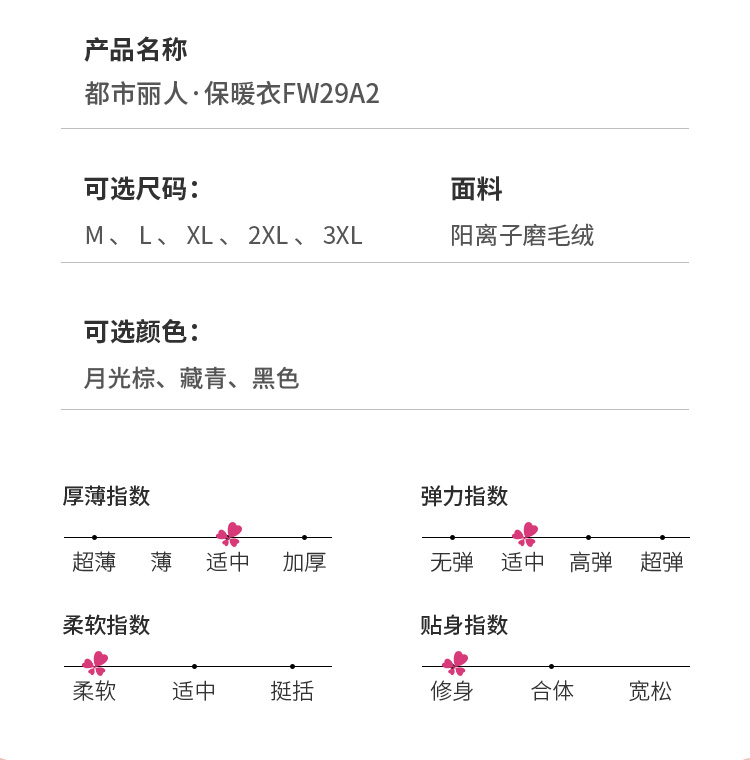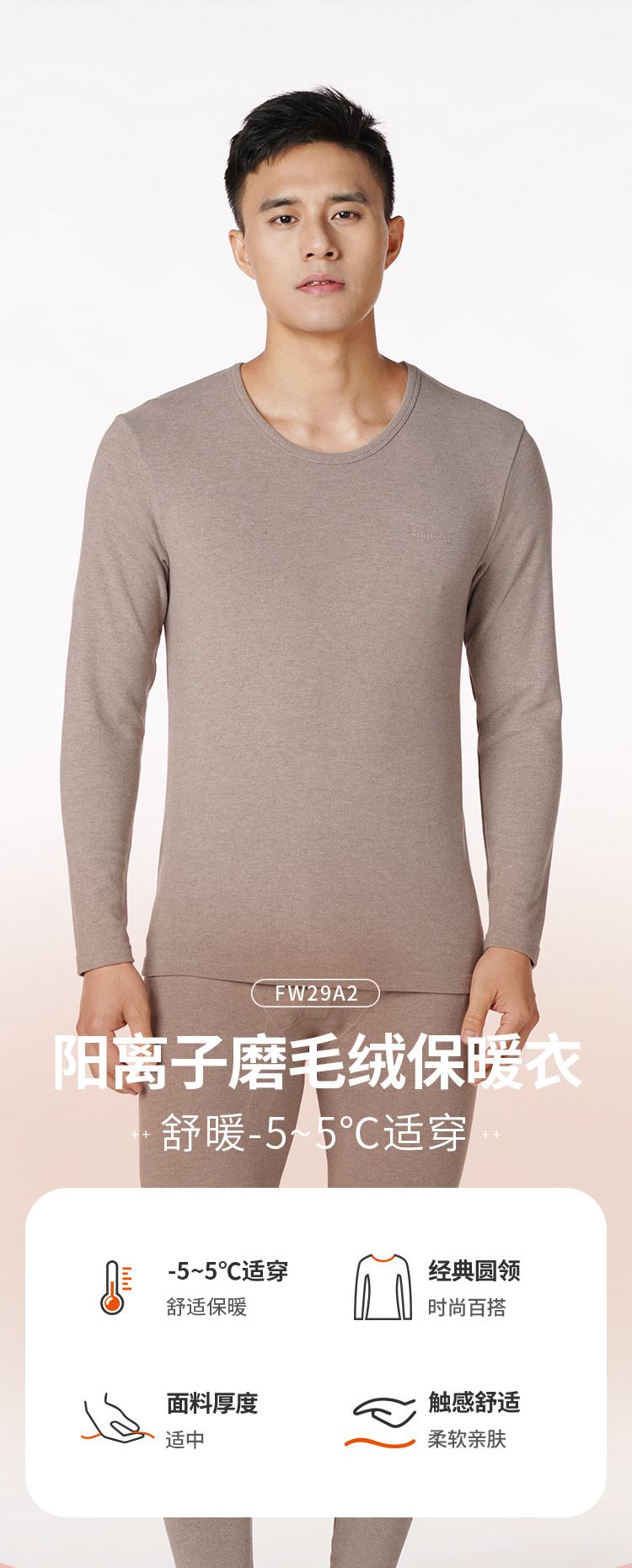 都市丽人都市锋尚舒暖负5度至5度男士特殊面料套装阳离子磨毛绒中套装保暖衣FW29A2
