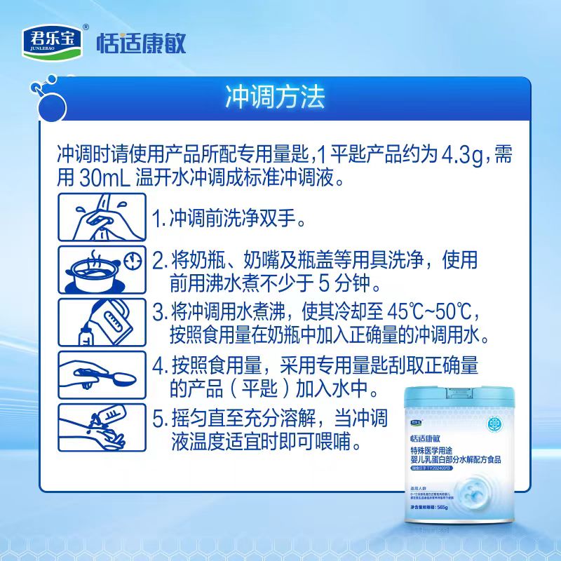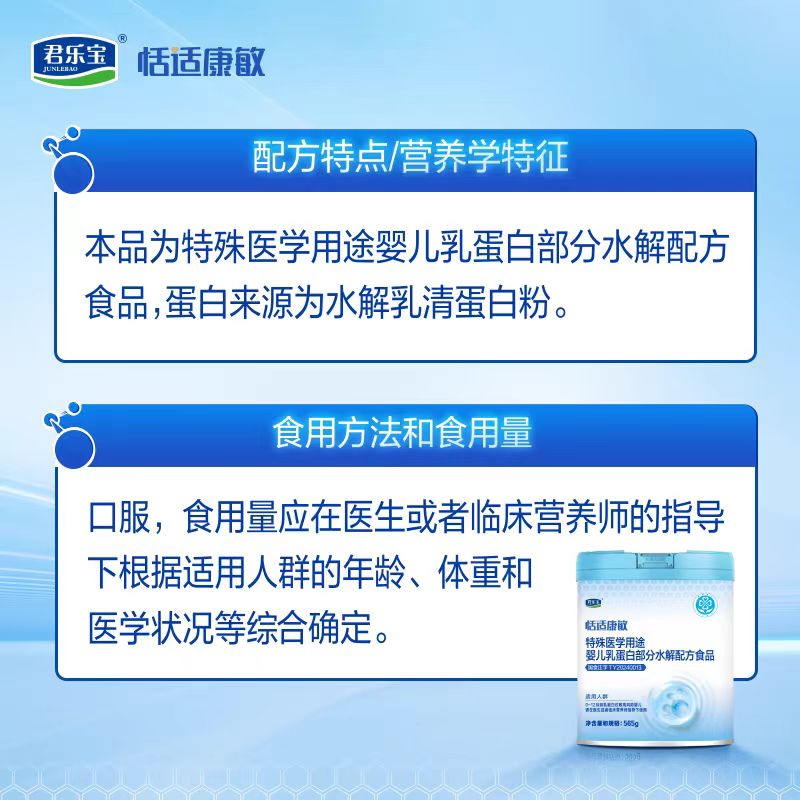君乐宝恬适康敏特殊医学用途部分水解无乳糖配方奶粉 (0-12个月 ) 规格 565g