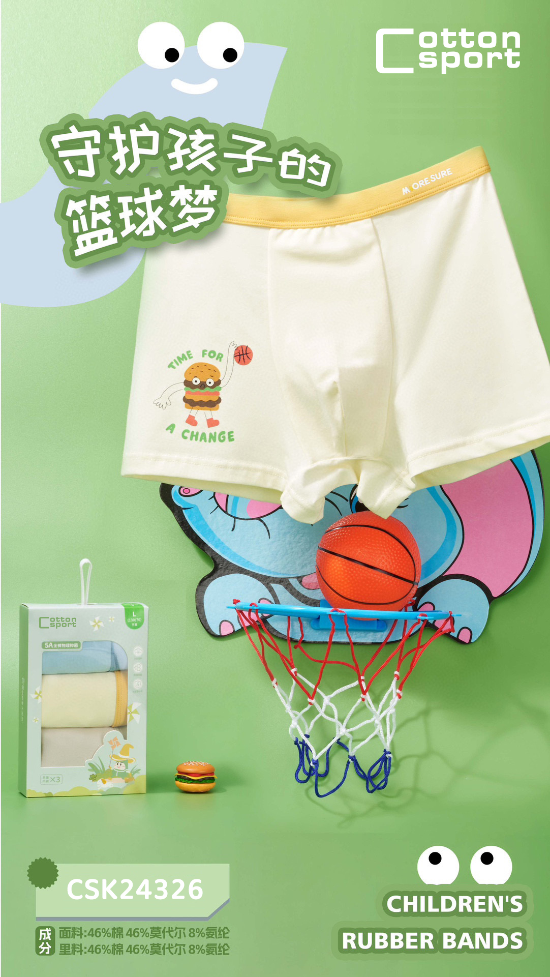 【3条】男童棉莫内裤混色平角底裤男内裤【CSK24326】