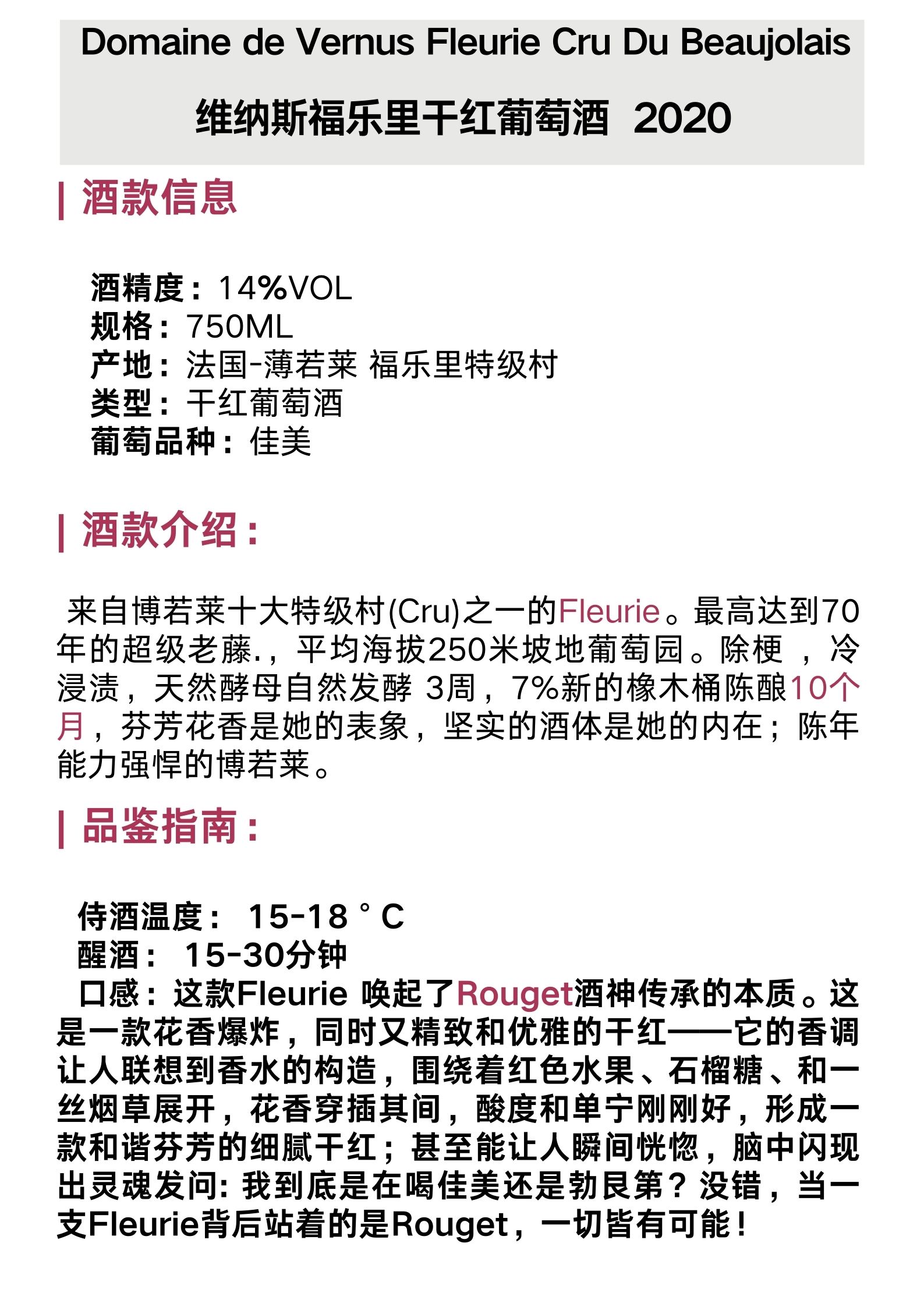 维纳斯福乐里干红葡萄酒 Domaine de Vernus Fleurie Cru Du Beaujolais