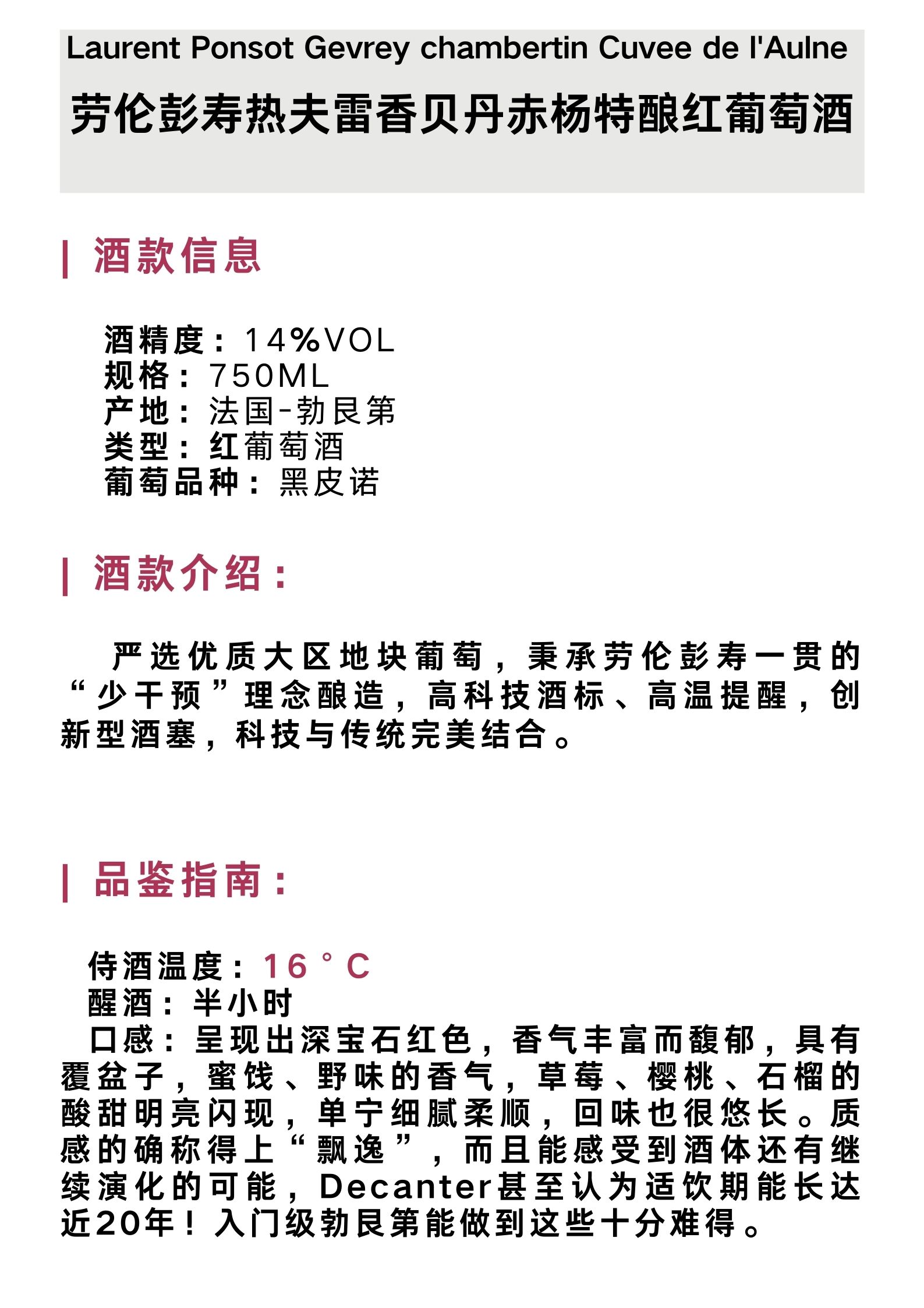 劳伦彭寿勃艮第白杨特酿红 Laurent Ponsot Bourgogne Rouge Cuvee des Peupliers