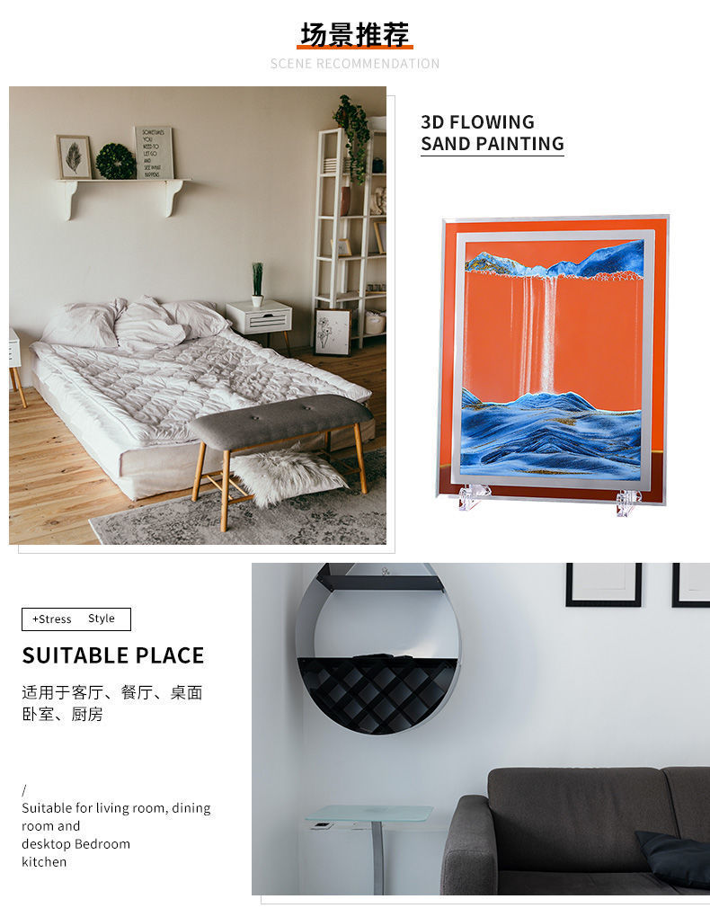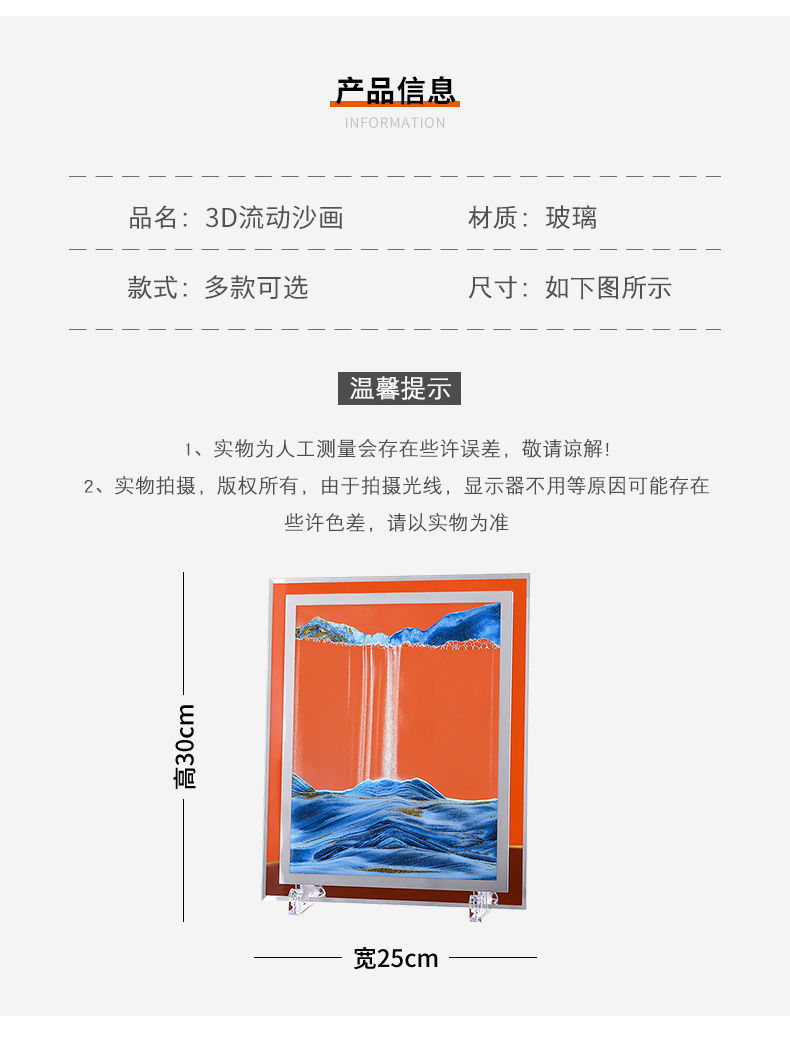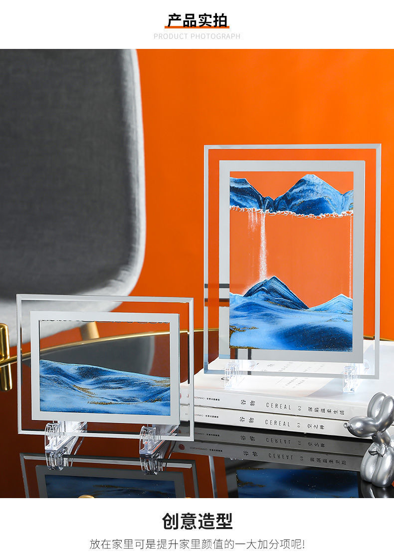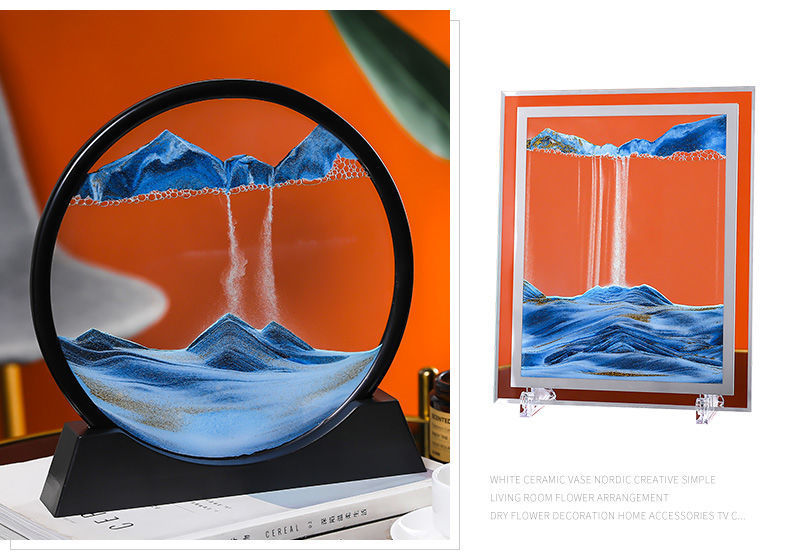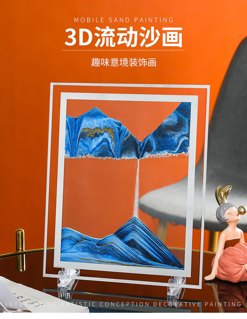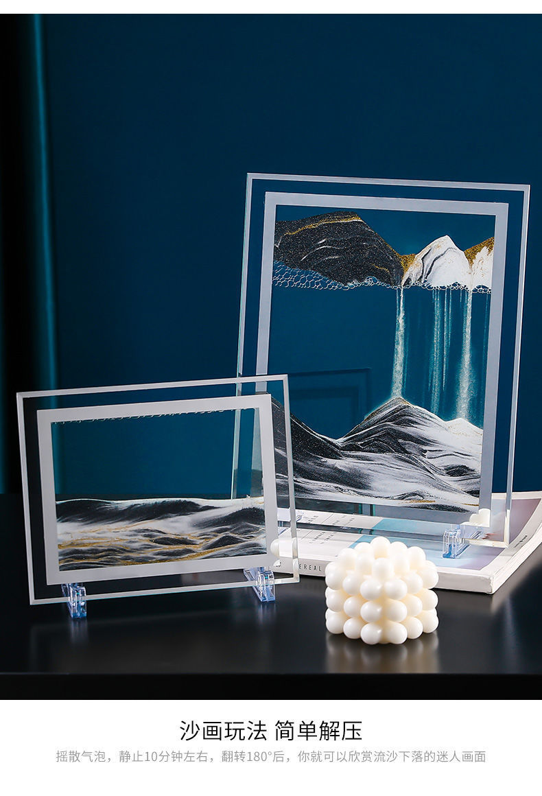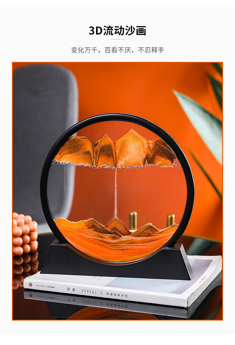 轻奢3D流沙画摆件创意礼品生日解压解闷艺术沙漏家居饰品圆形山水