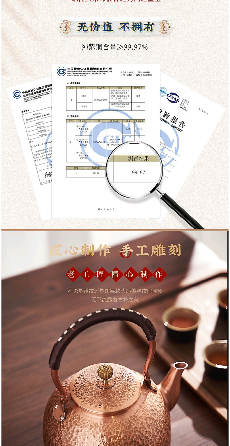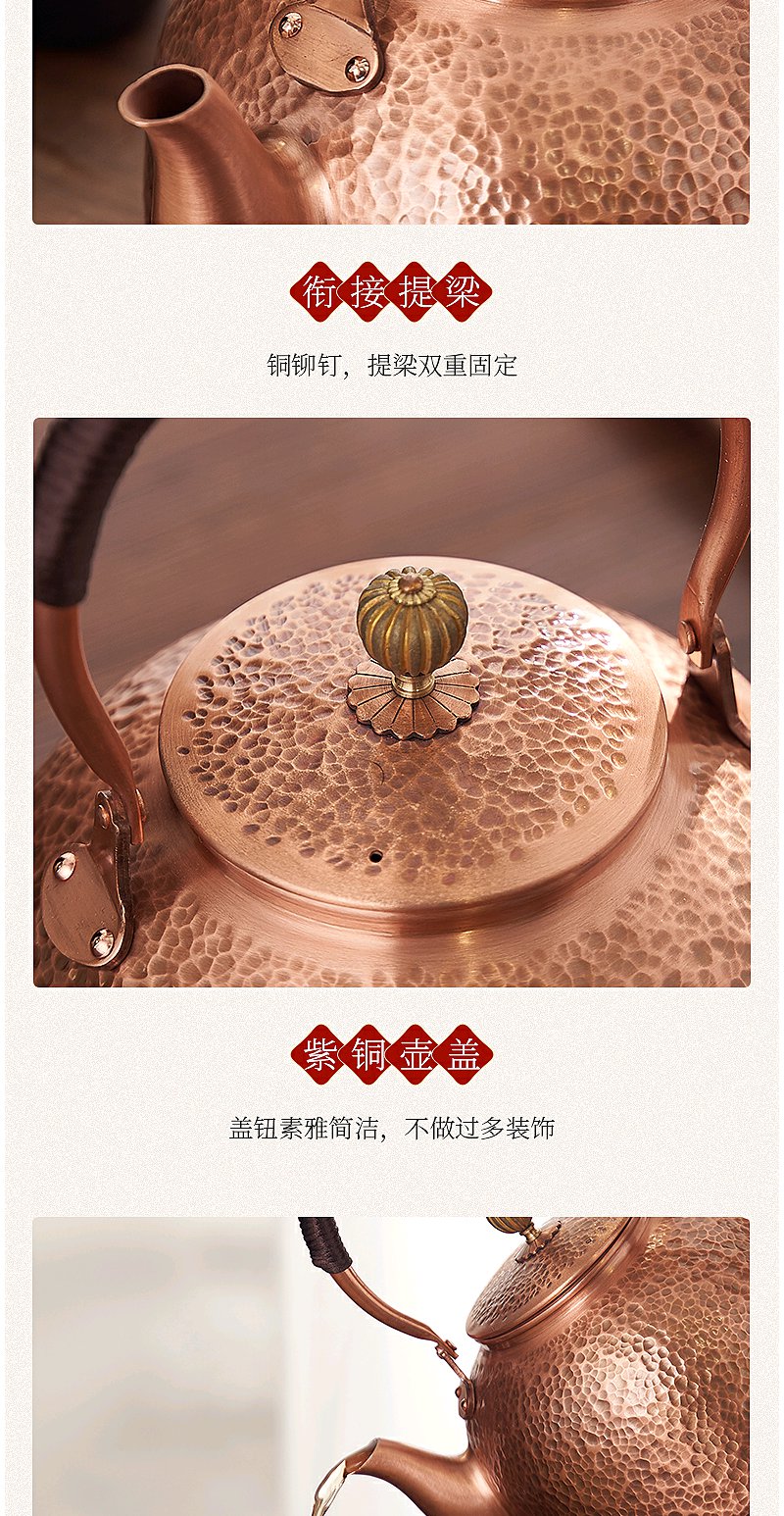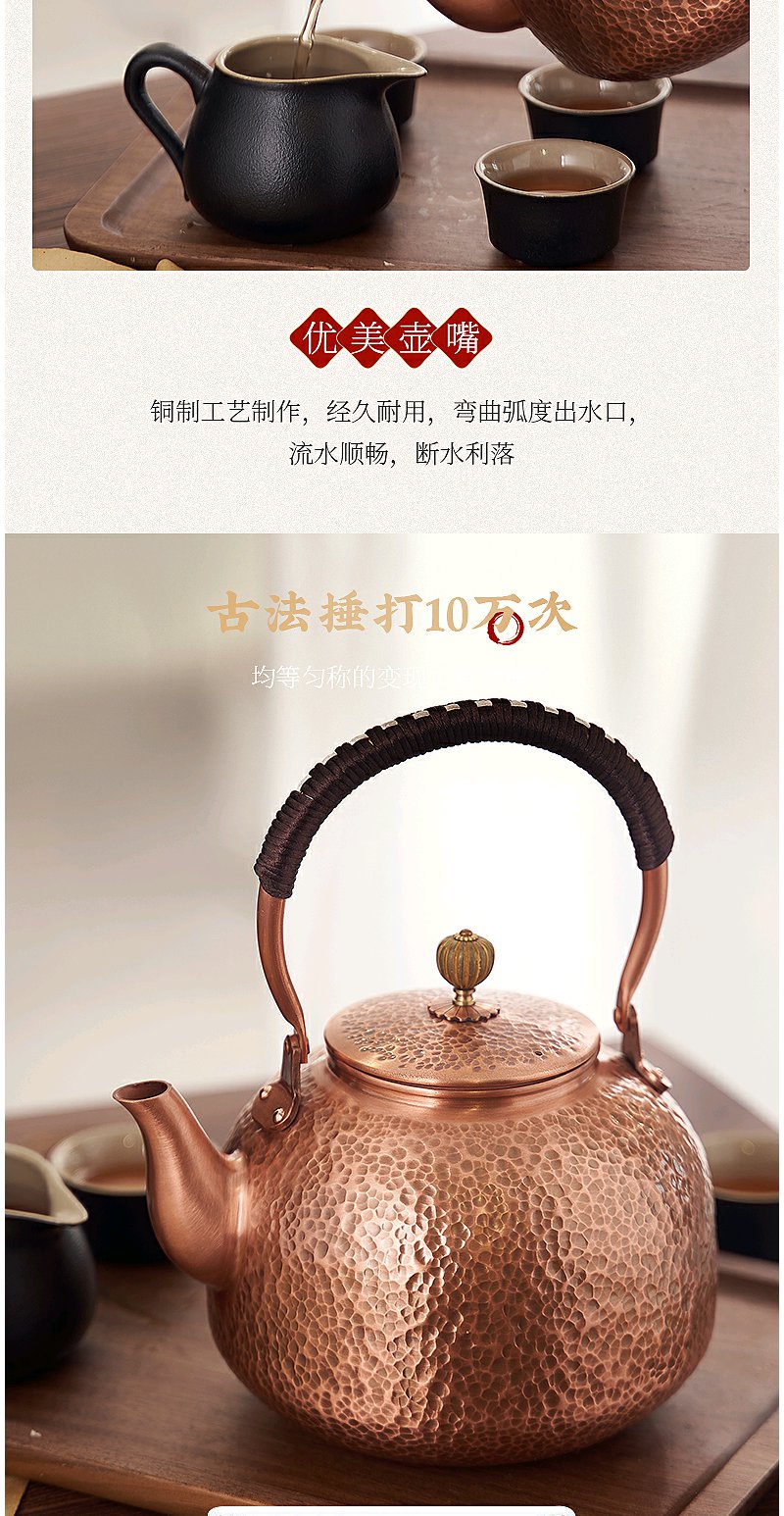 朱府铜艺 大号纯铜壶烧水壶紫铜手工泡茶壶单壶煮茶器茶具
