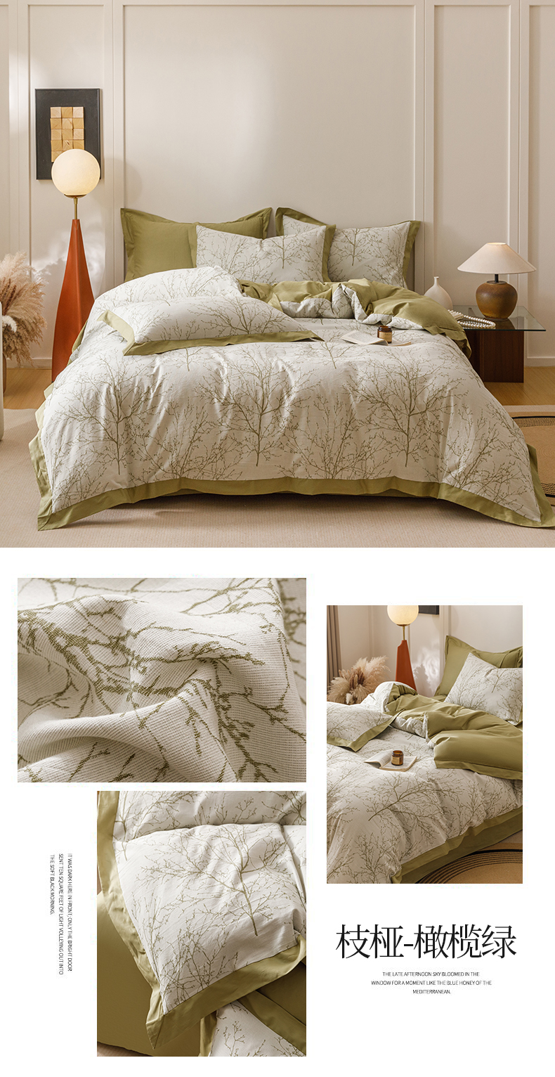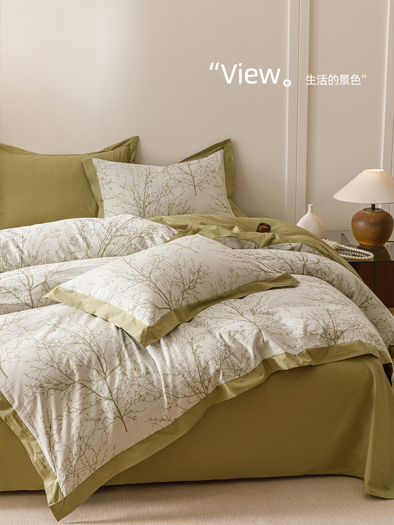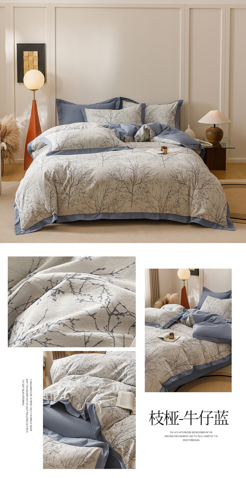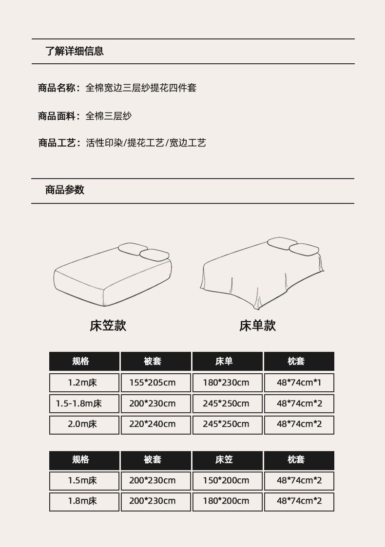 自然醒宽边三层纱提花四件套100全棉1.5米被套床单三件套床笠床品JY