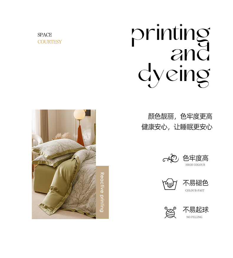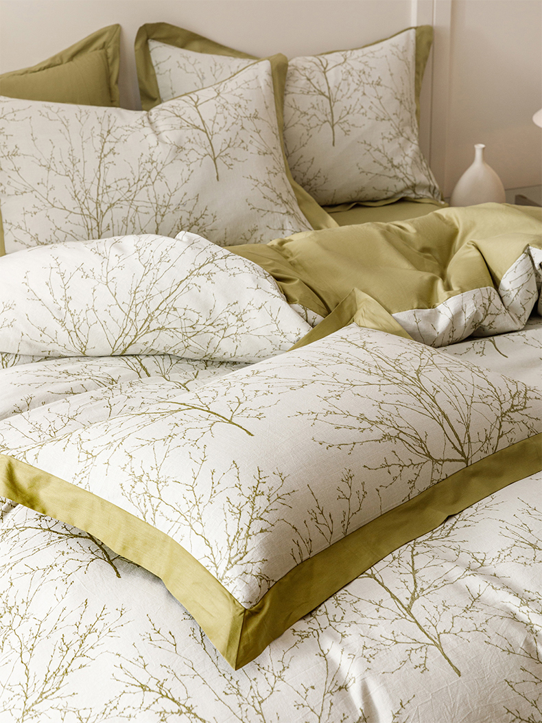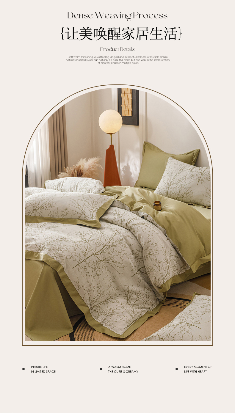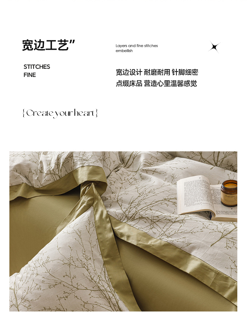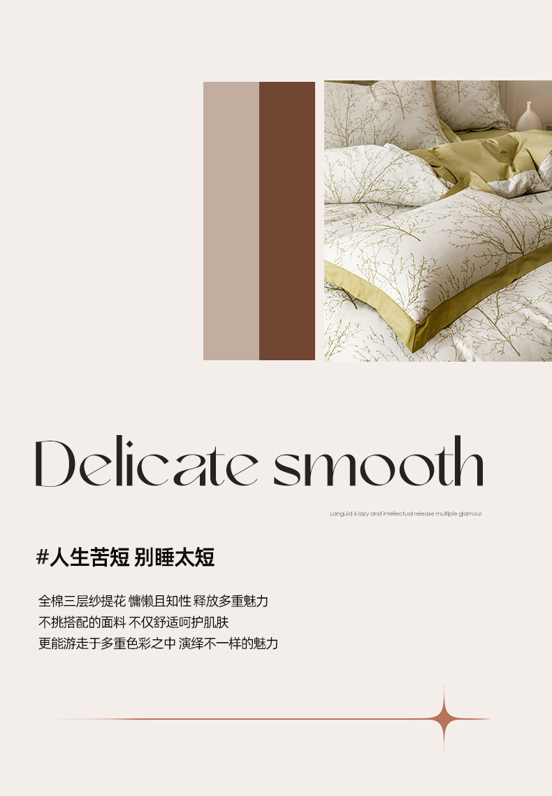 自然醒宽边三层纱提花四件套100全棉1.5米被套床单三件套床笠床品JY