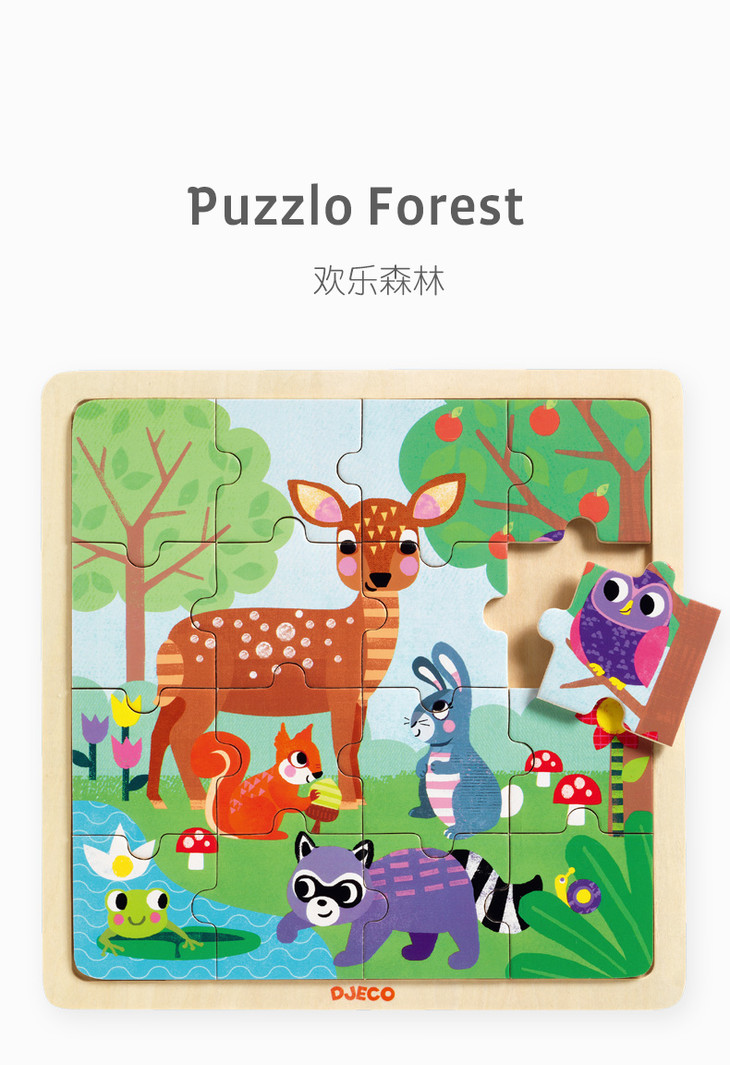 djeco幼儿15片动物木质大块拼图嵌入式拼板儿童益智智力玩具2-3岁