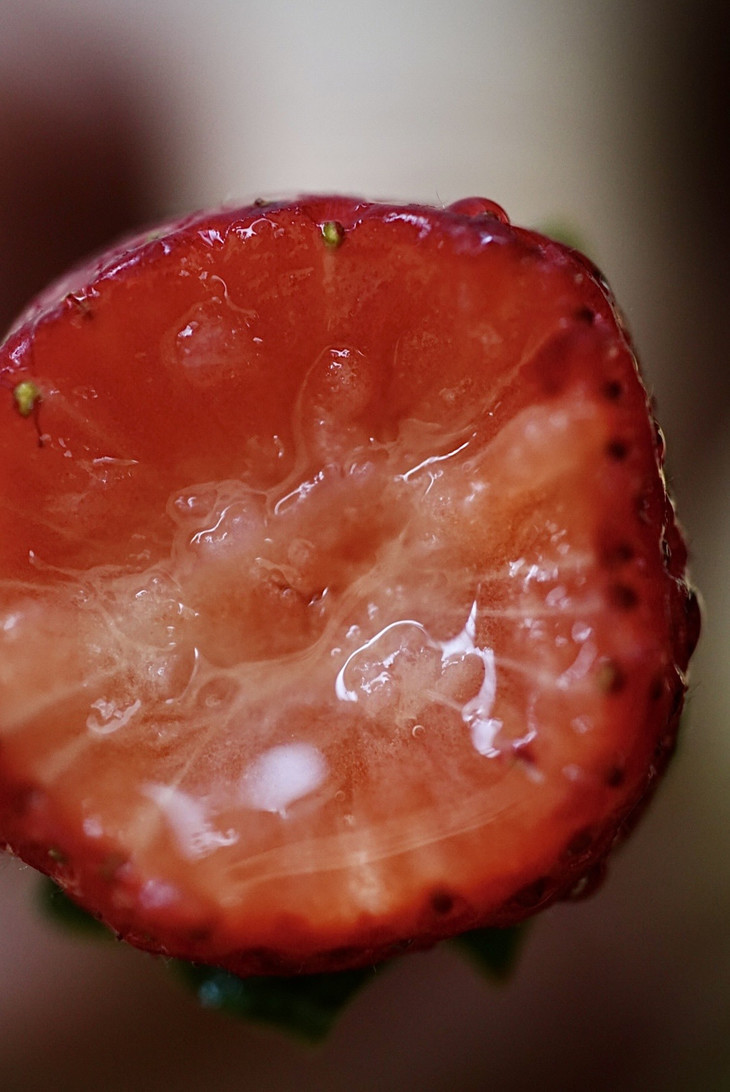 草莓的果香和甜味都发挥到极致,汁水超级多。甜度也足够高