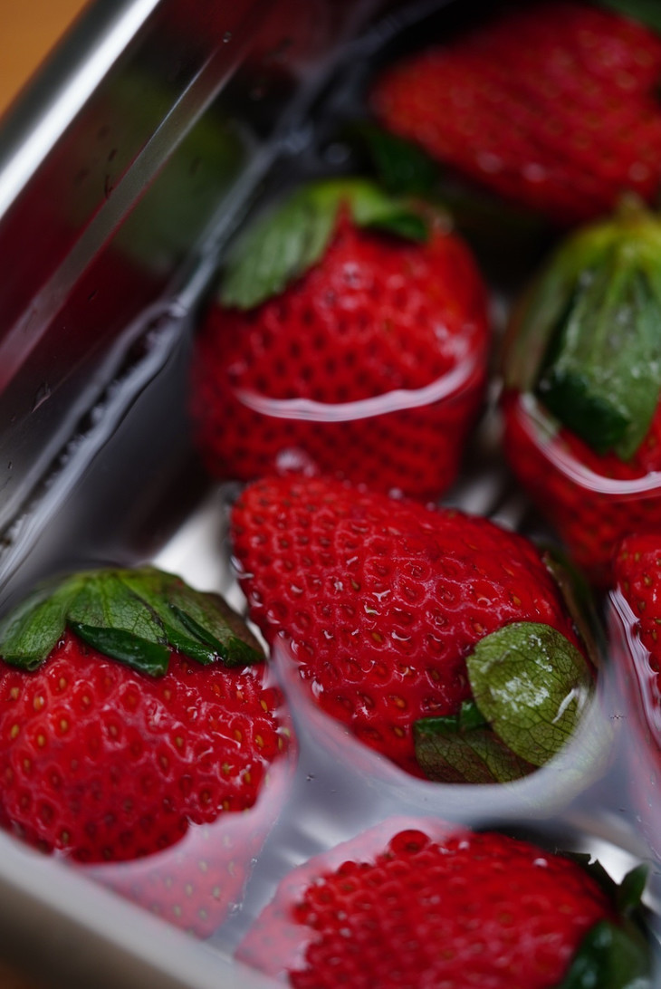 打开包装就能闻到浓烈的草莓香味。果香味太纯了,外表就像布灵布灵闪着光