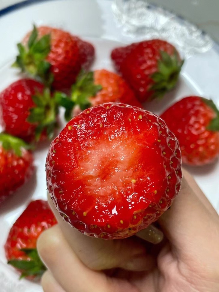 还未入口,就能闻到浓郁的草莓果香,咬一口果肉软嫩、细腻无丝,果汁都在舌尖慢慢蔓延