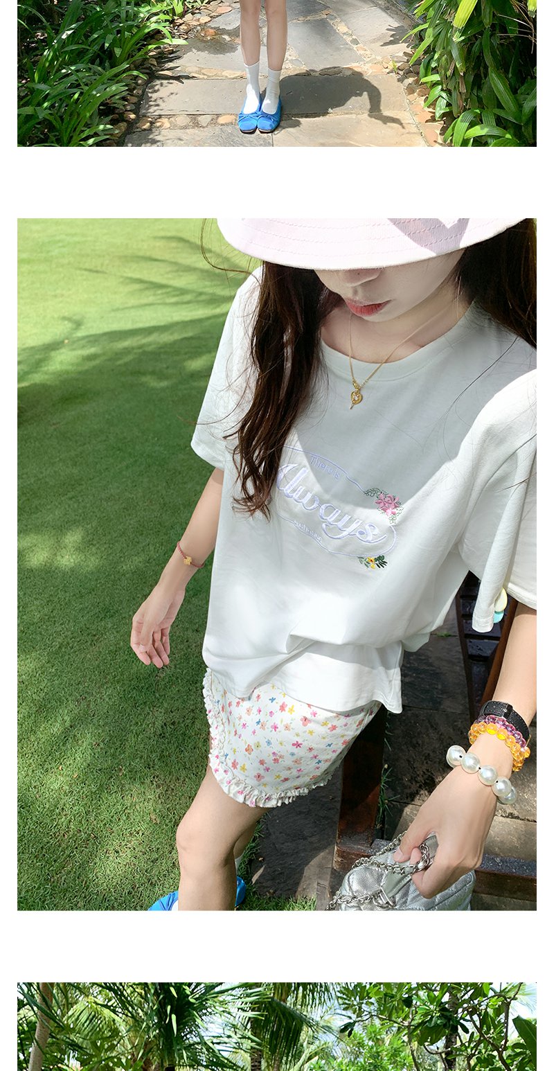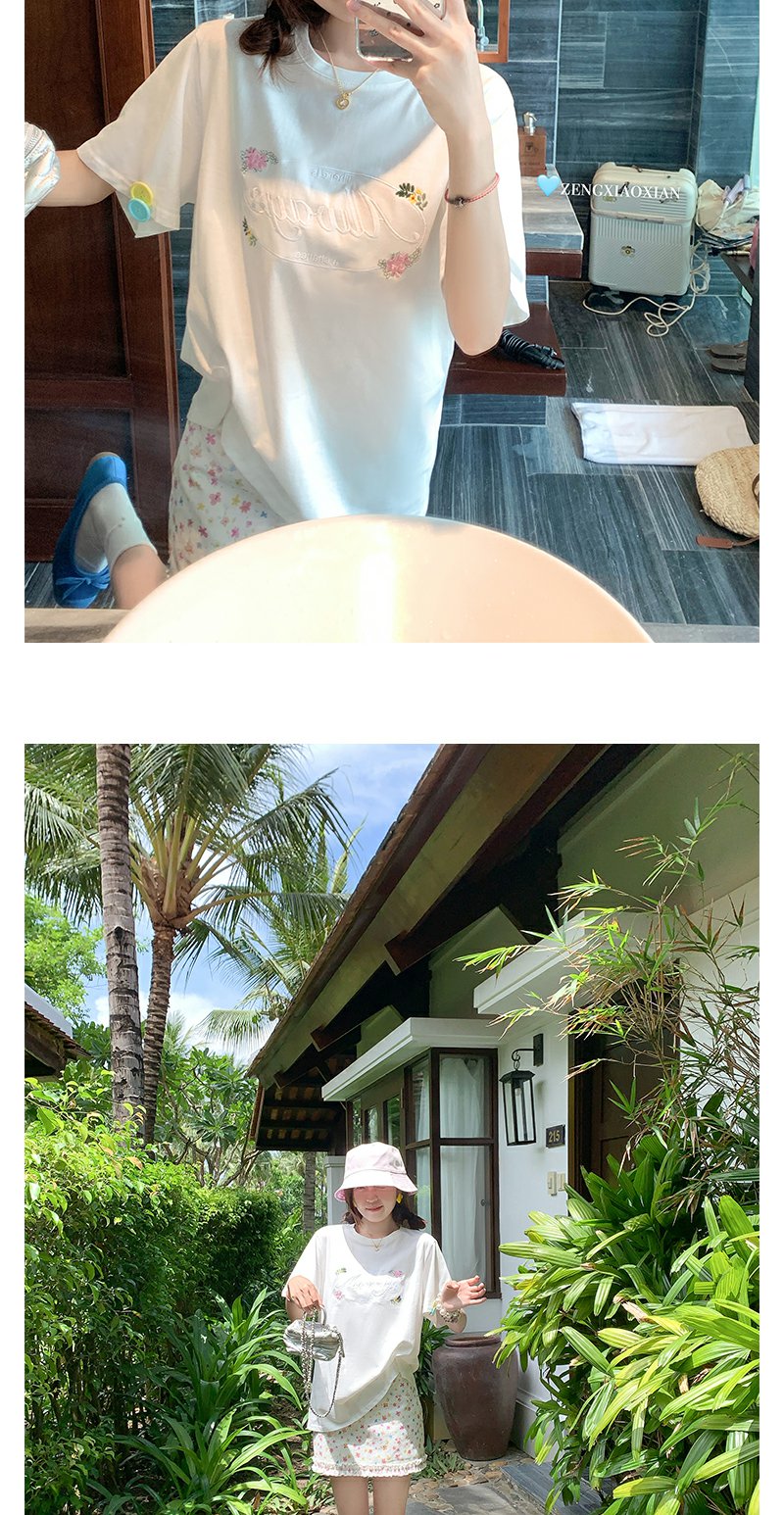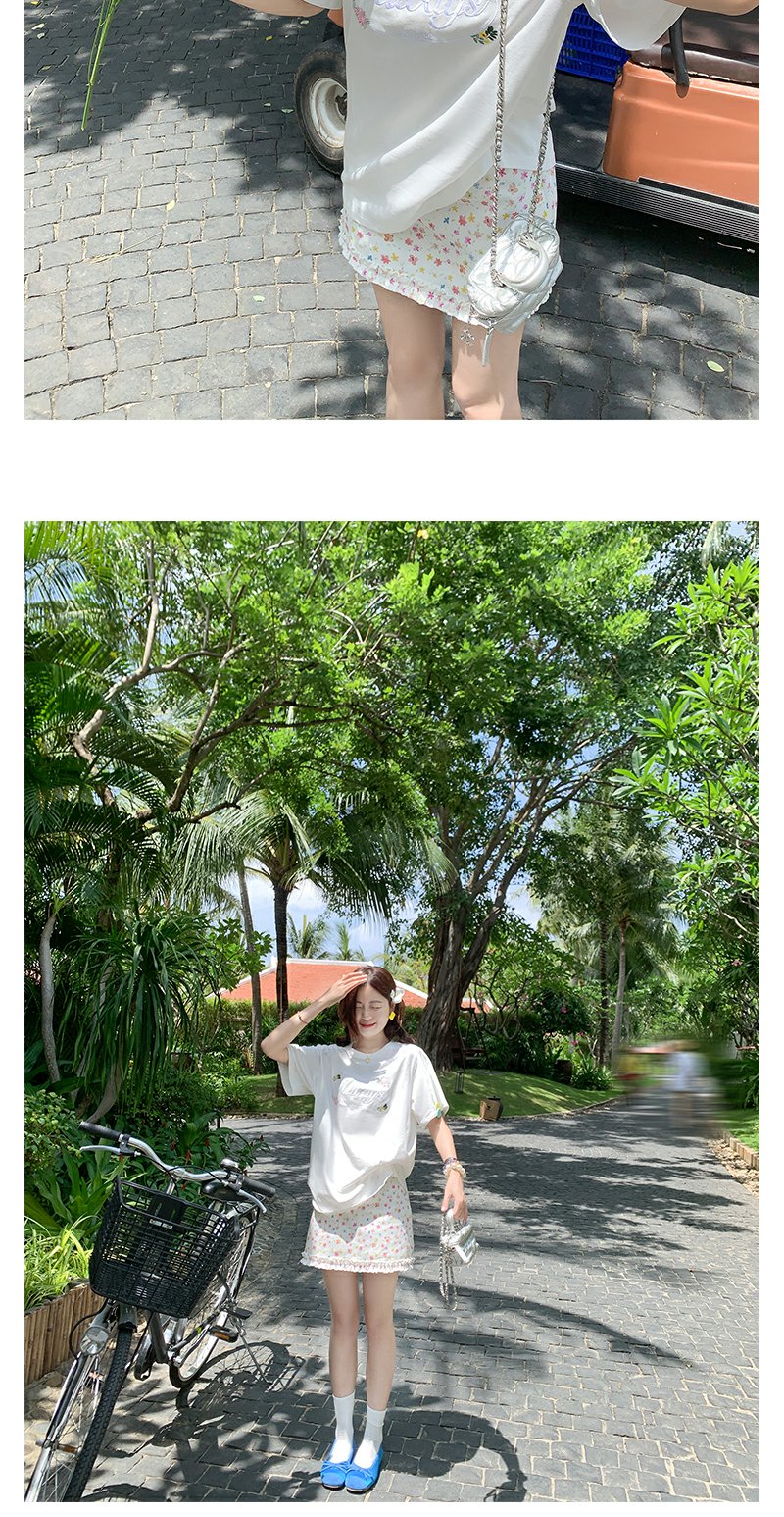 <曾小咸推荐>字母花朵刺绣短袖T恤碎花短裙