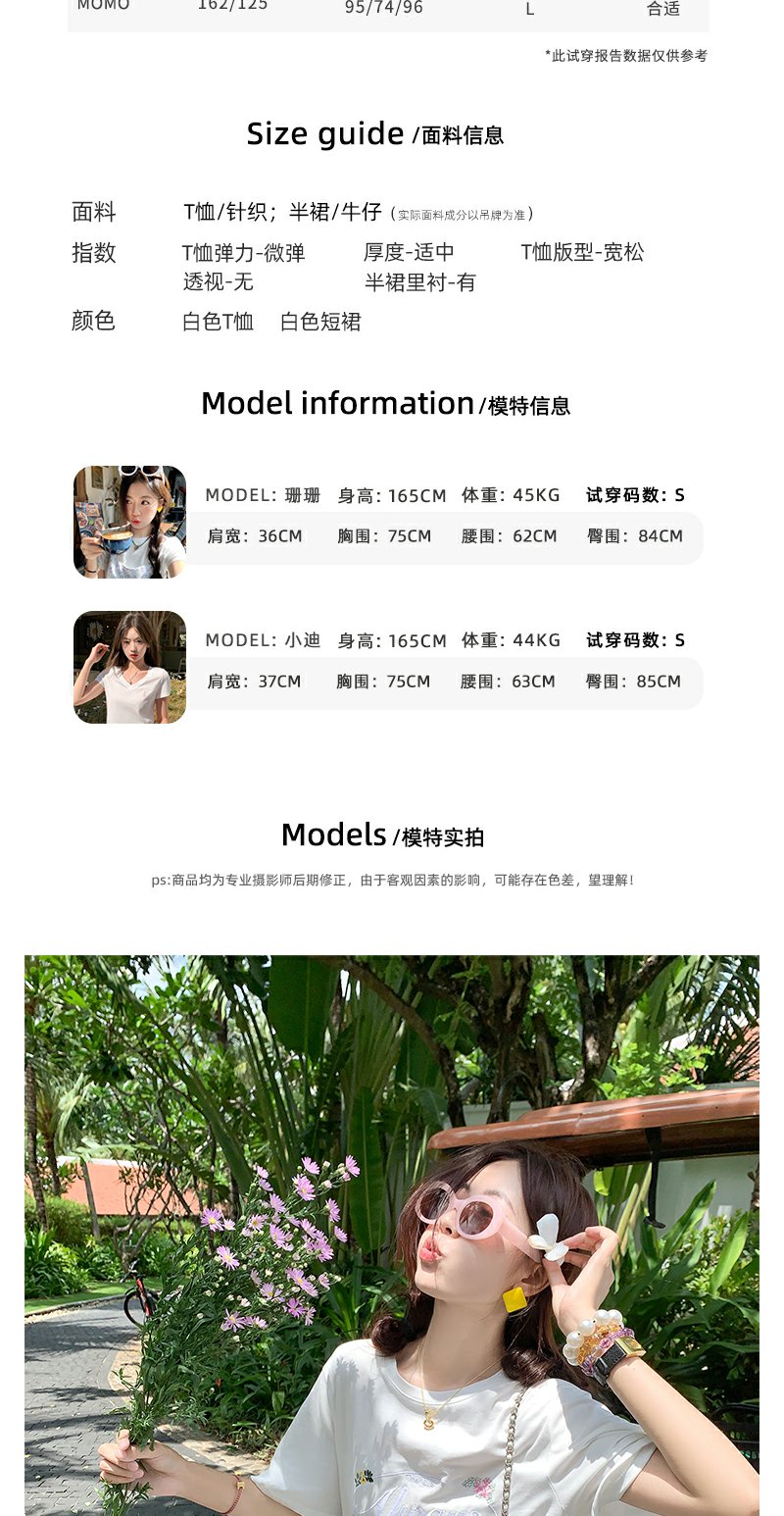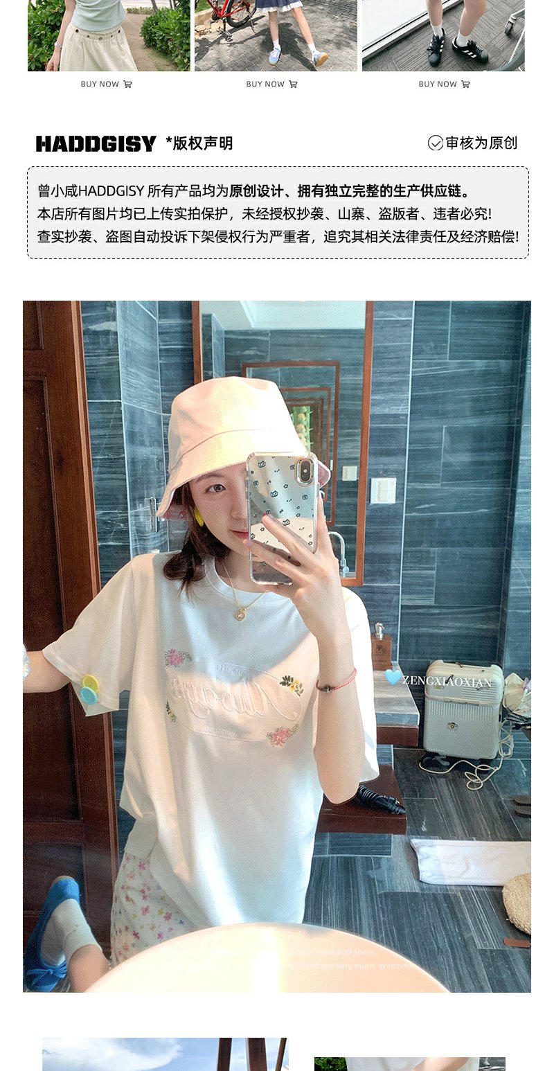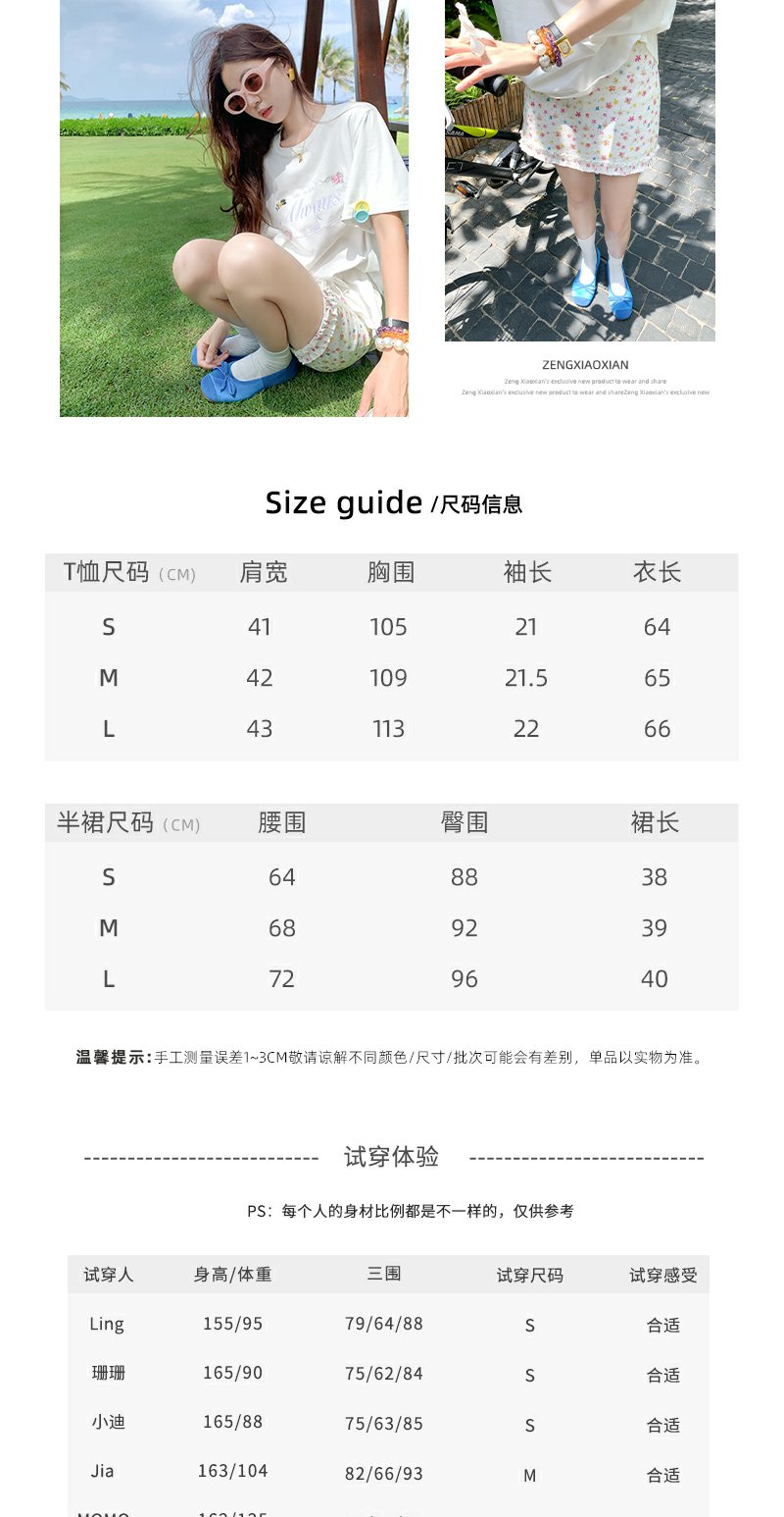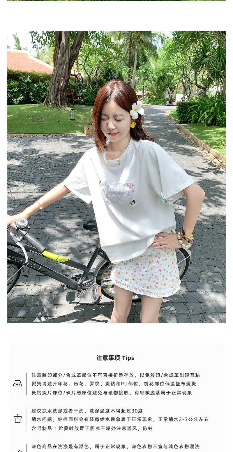 <曾小咸推荐>字母花朵刺绣短袖T恤碎花短裙