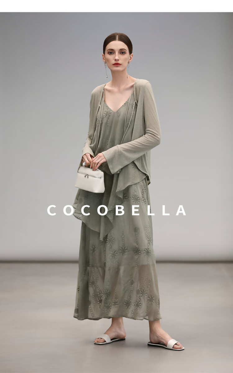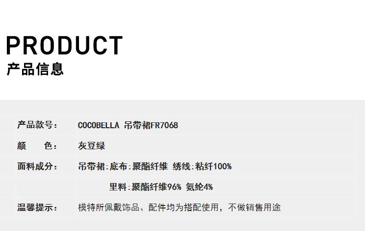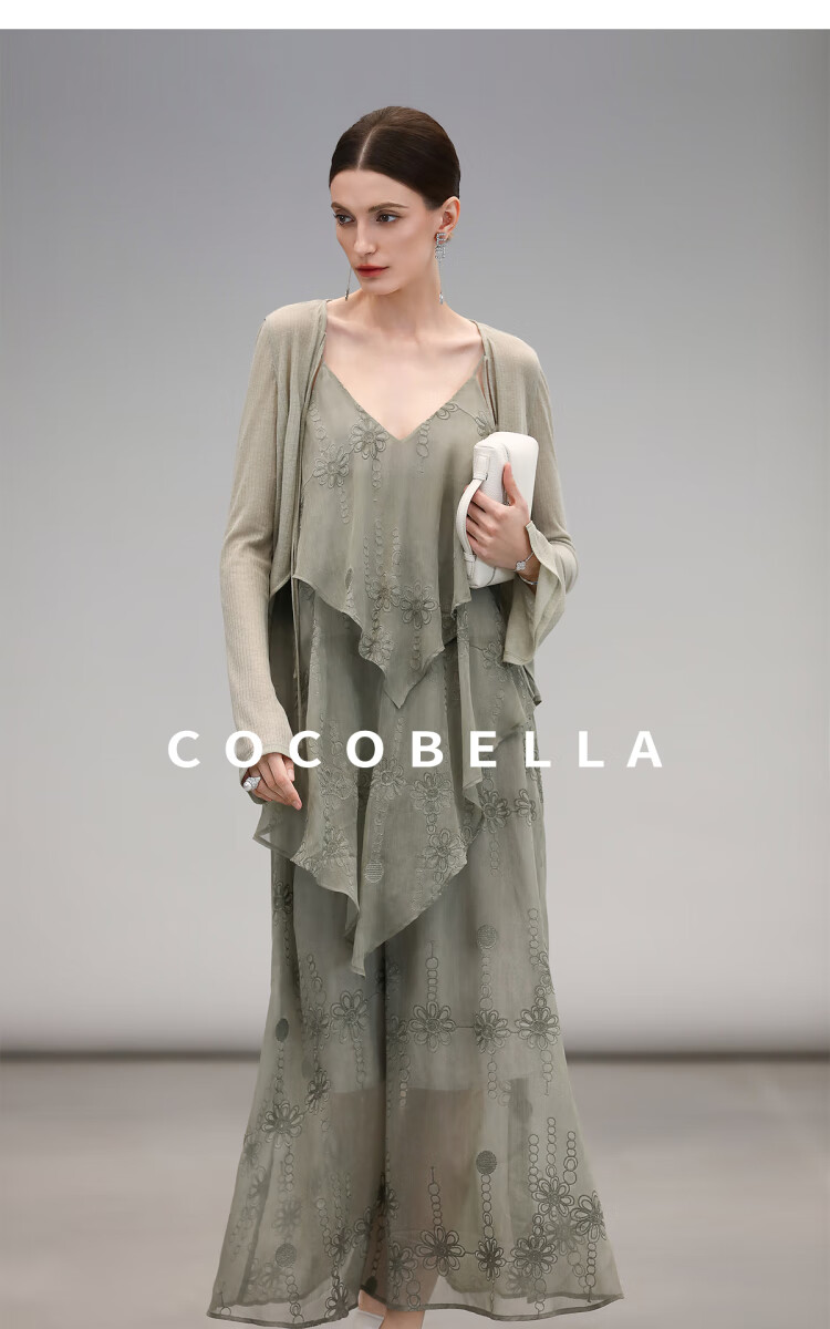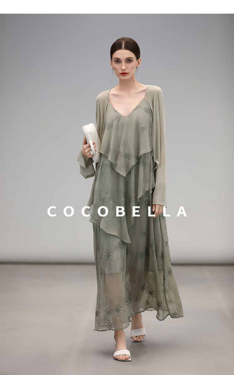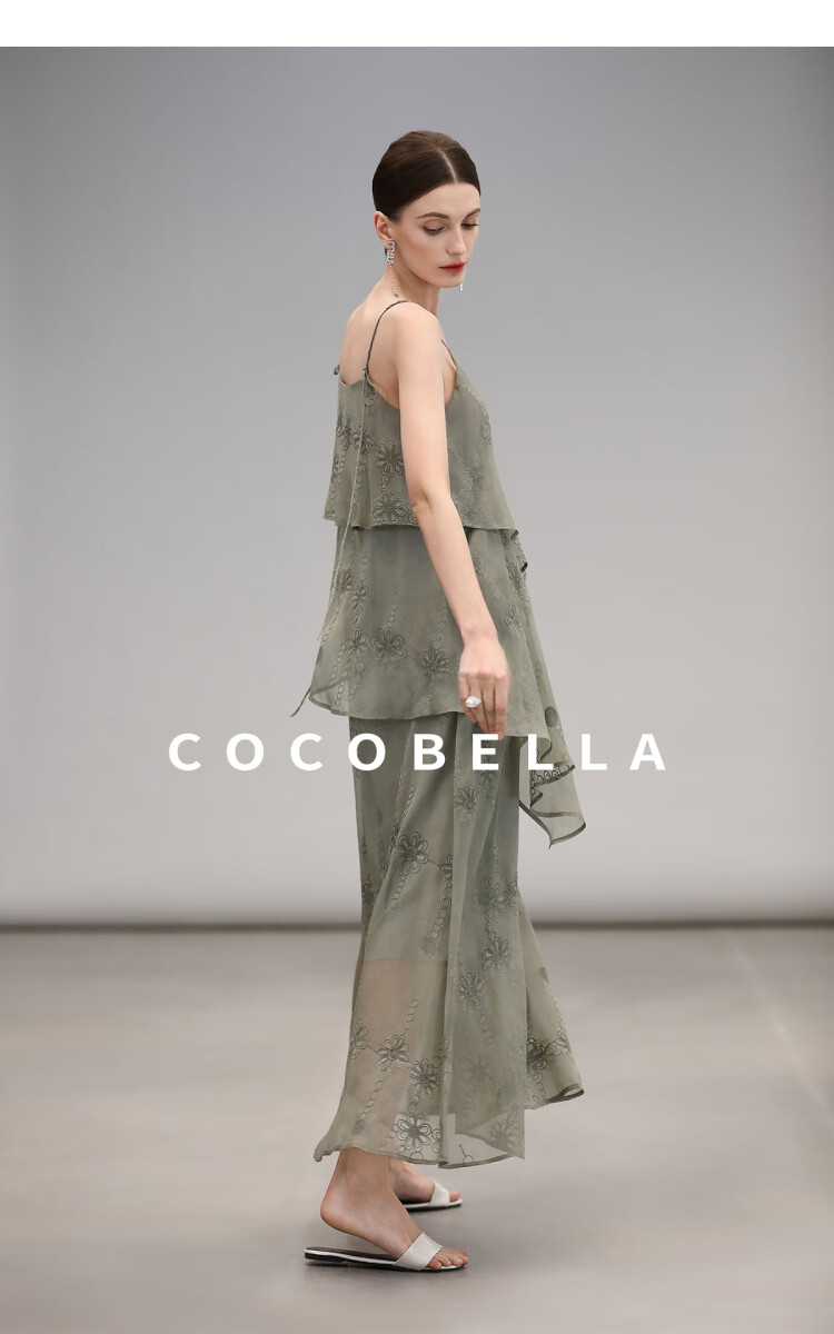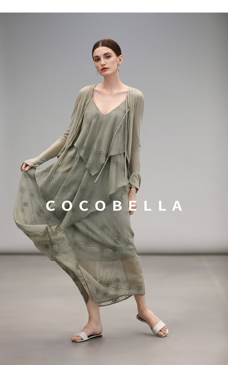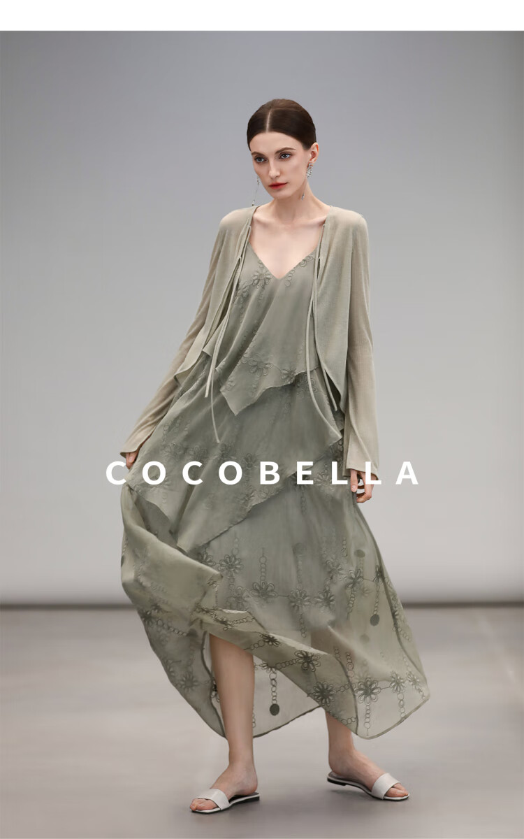 【限时秒杀】COCOBELLA万针刺绣炒色薄荷曼波吊带裙度假风飘逸大摆长裙FR7068