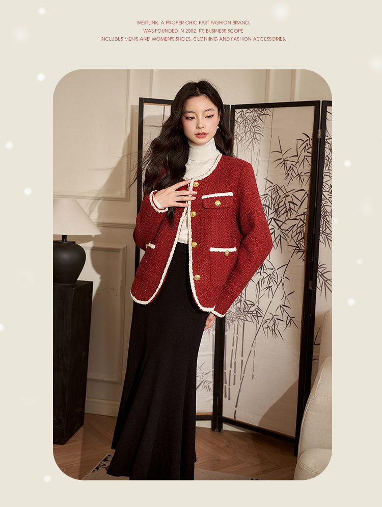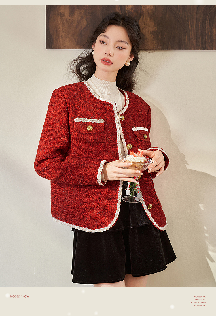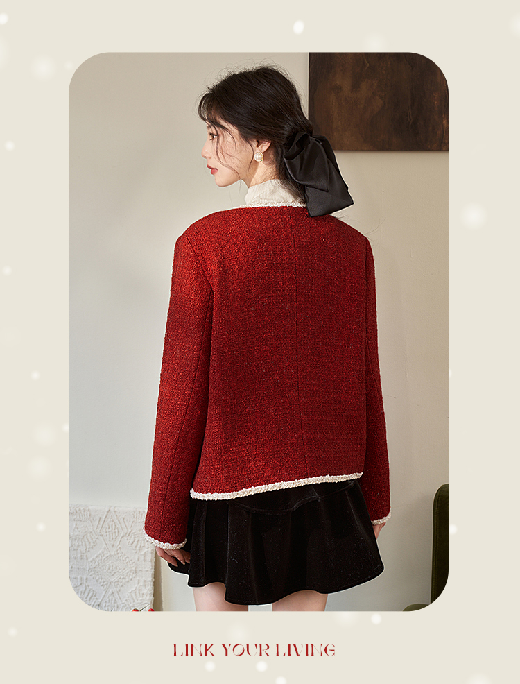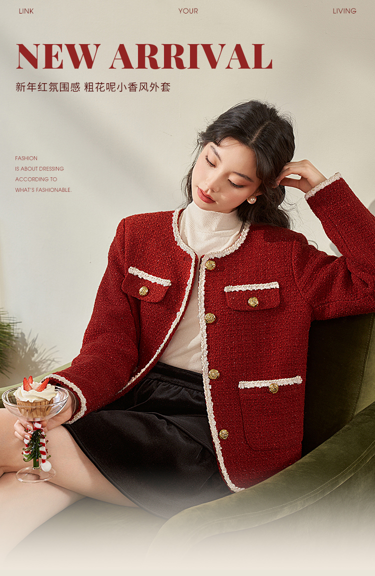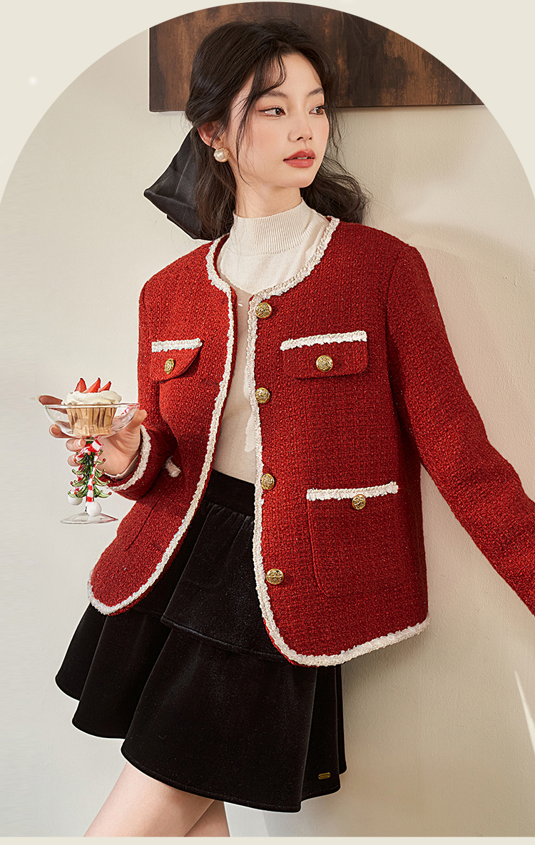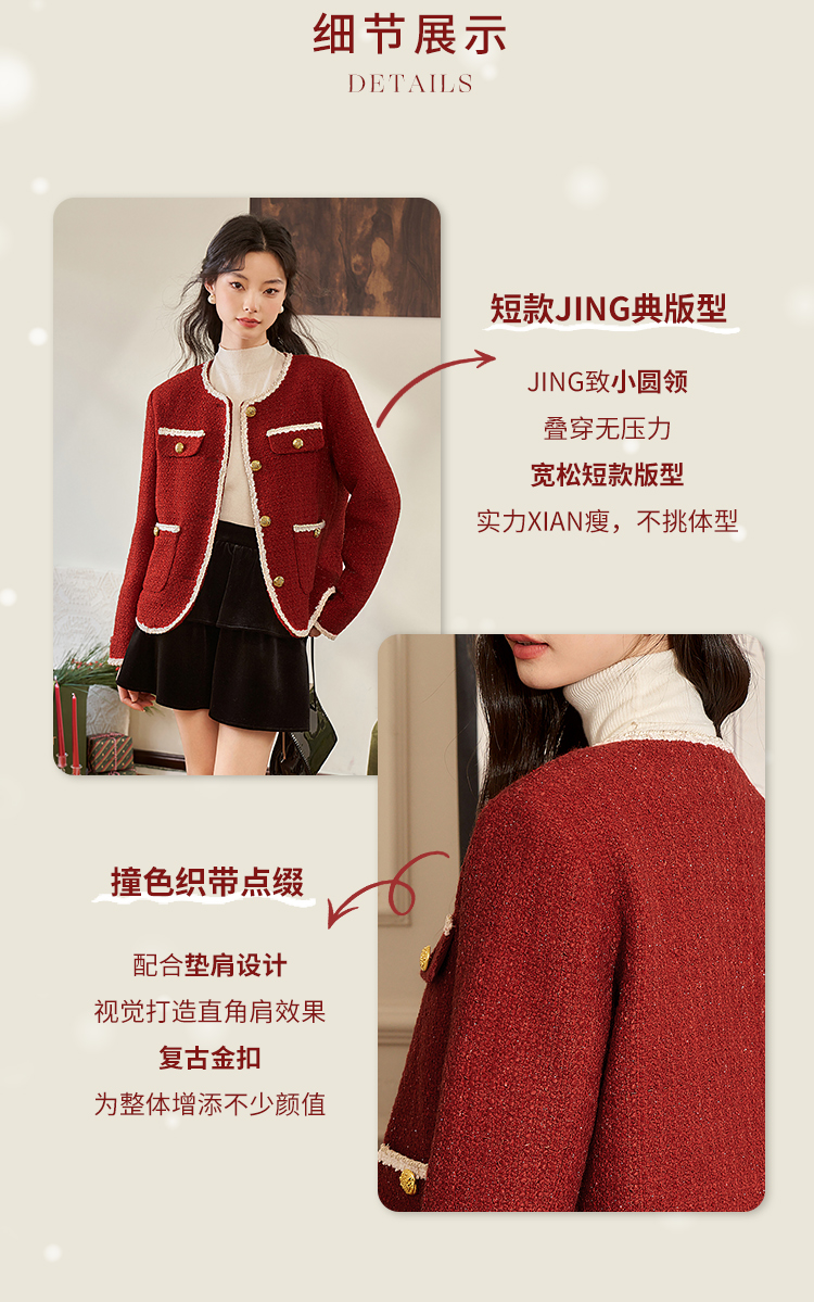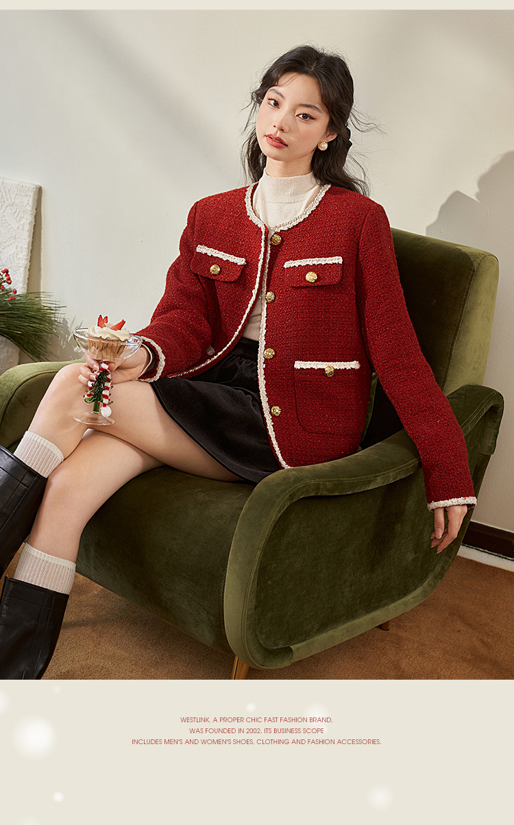 法式千金小香风外套女秋冬新款细闪亮丝粗花呢高级感外套V2332579